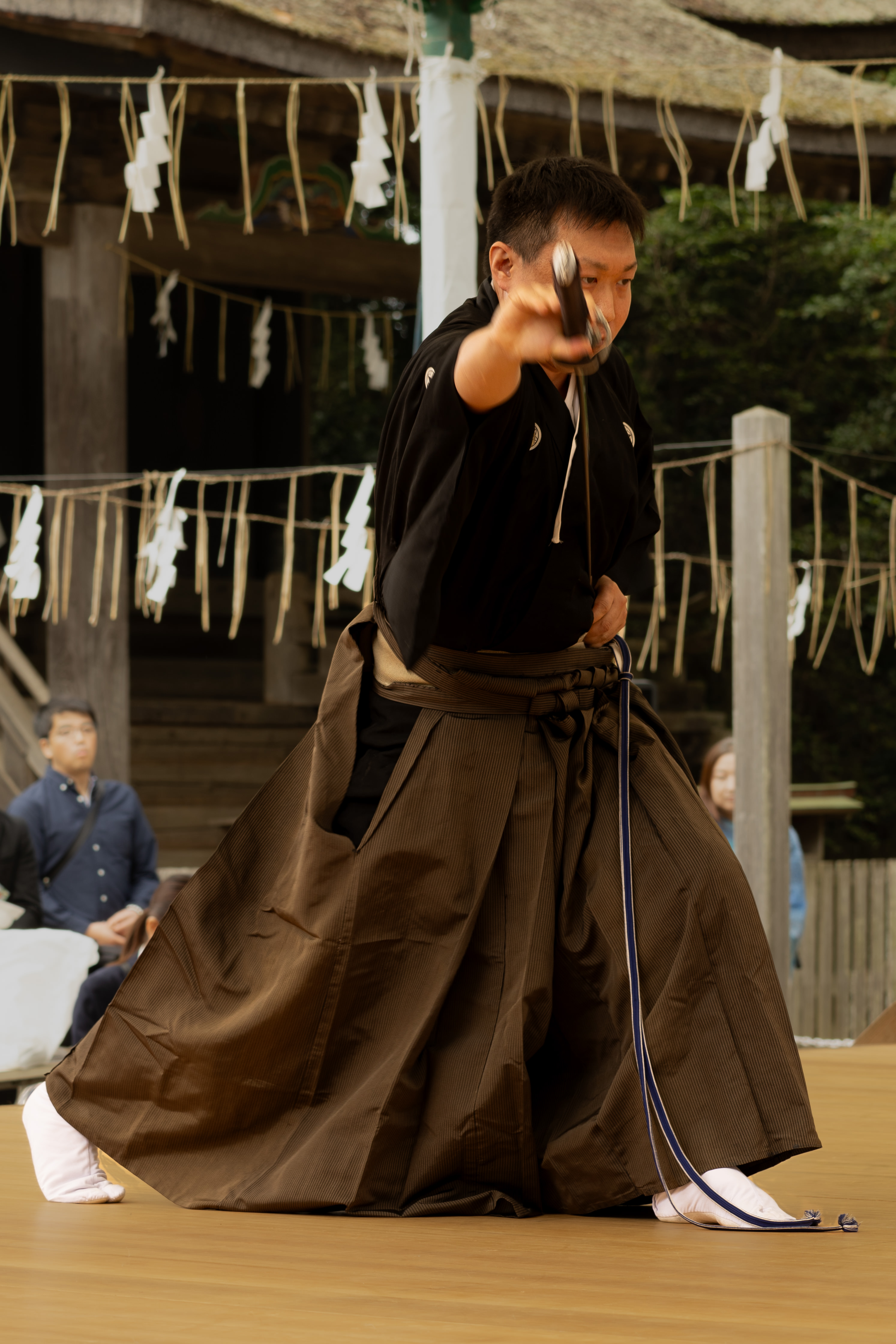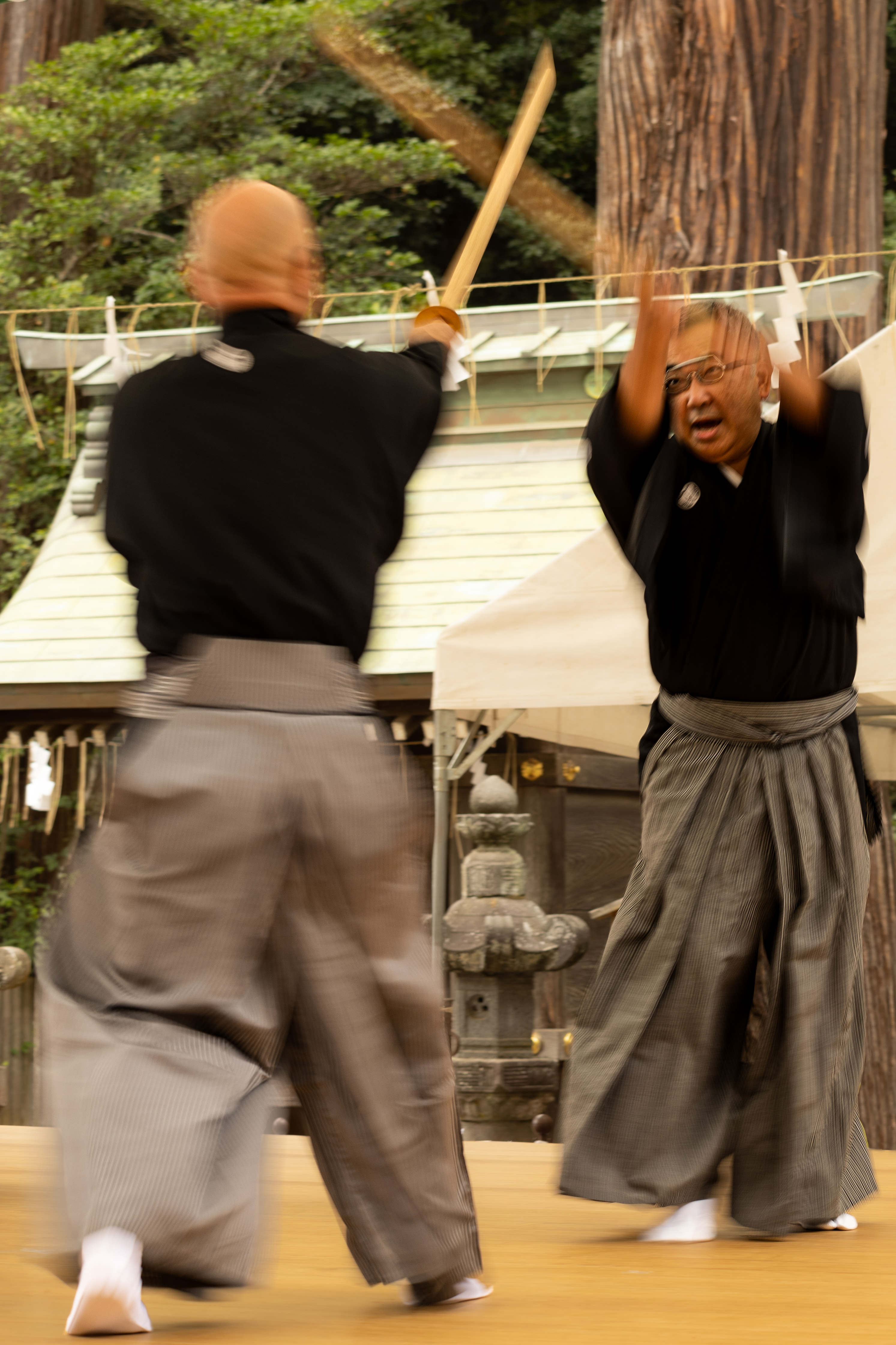 大会は古武道の振興や各流派の交流促進を図るとともに、継承してきた技を武道の神として知られる同神宮の祭神「たけみかづちのおおかみ」に奉納するため、日本武道館と日本古武道協会が主催しています。