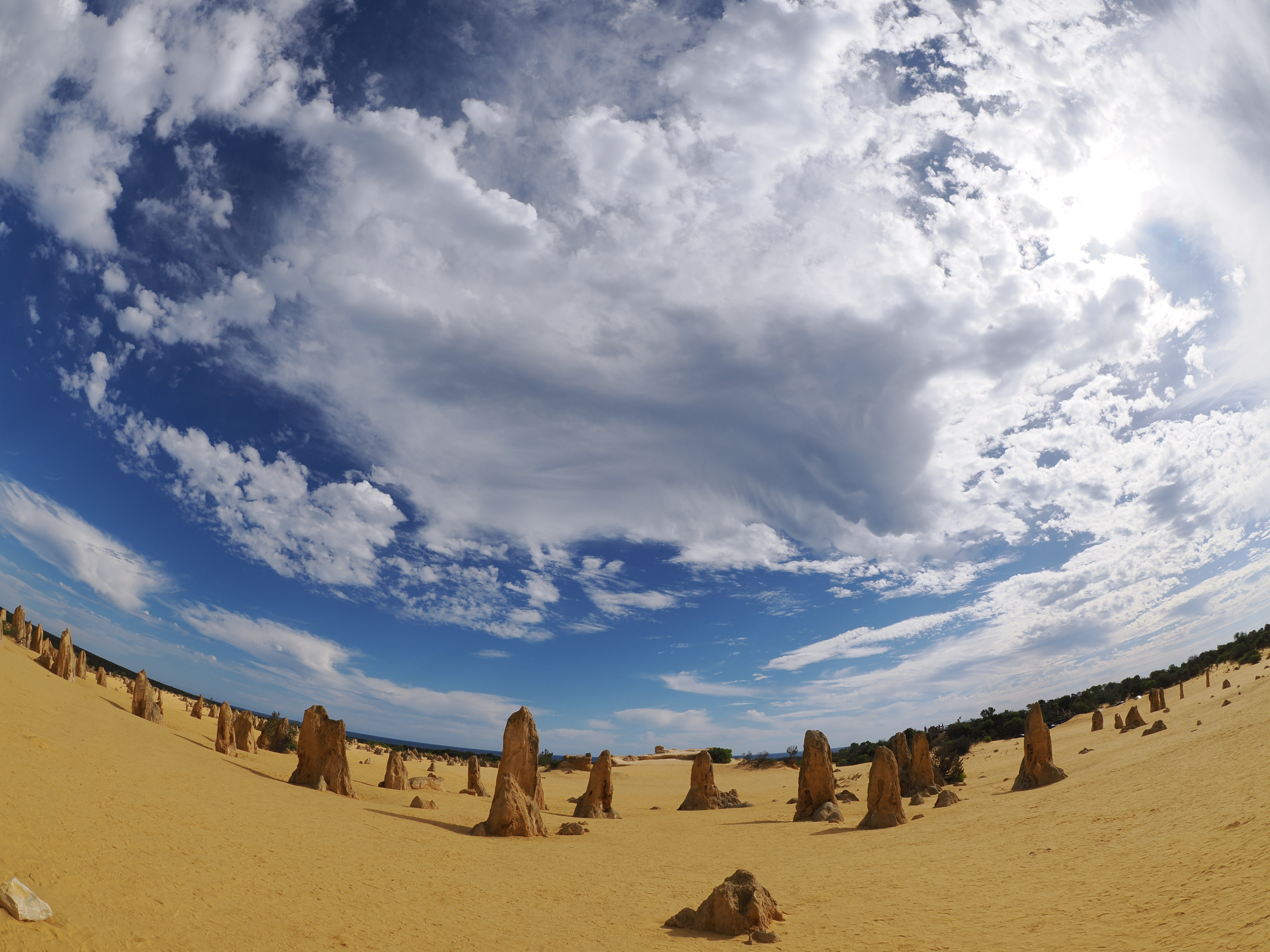 無数の石灰岩の柱が立ち並ぶ美しい砂漠地帯