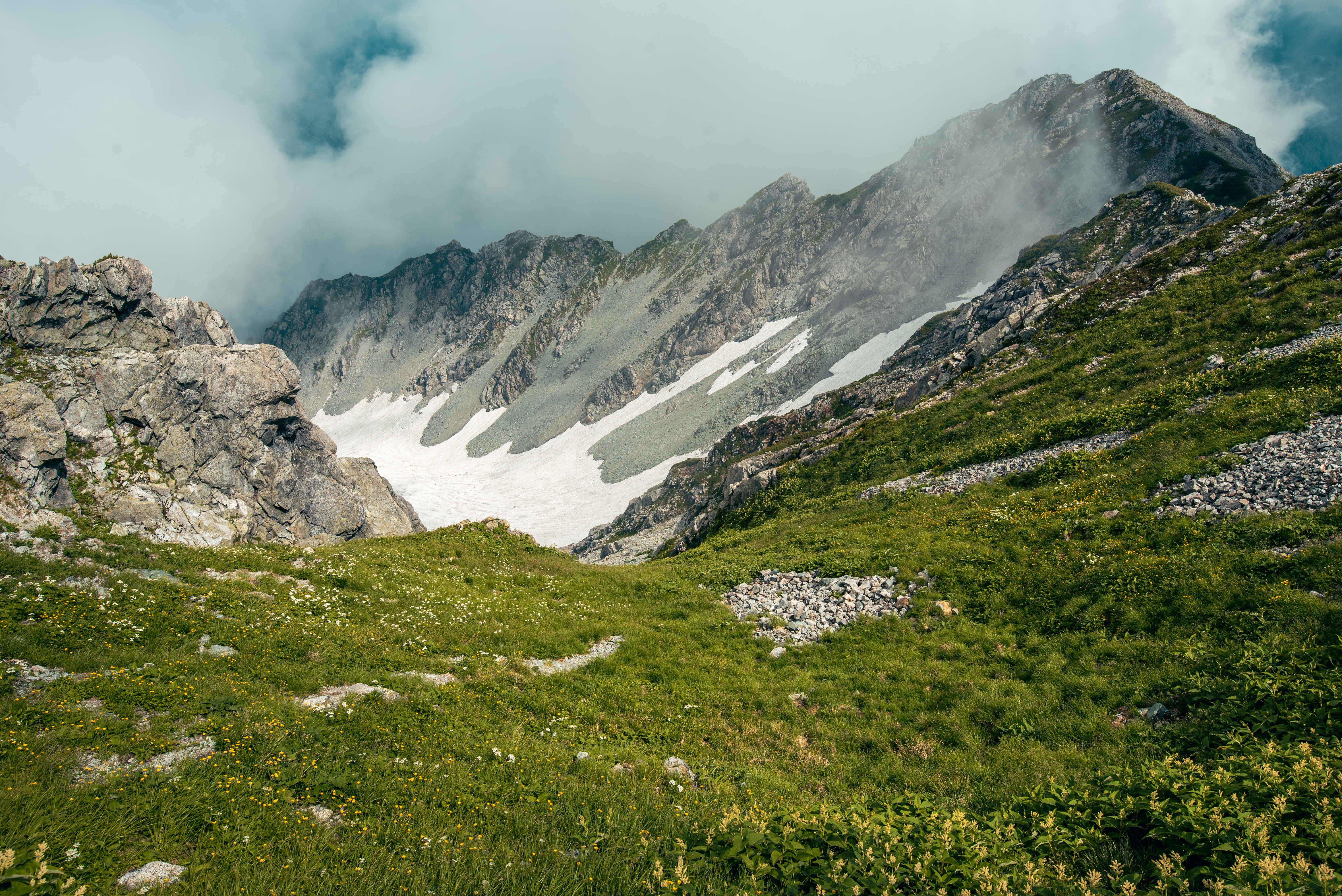 山のなかには雪原が広がっており、自然の壮大さを感じました。