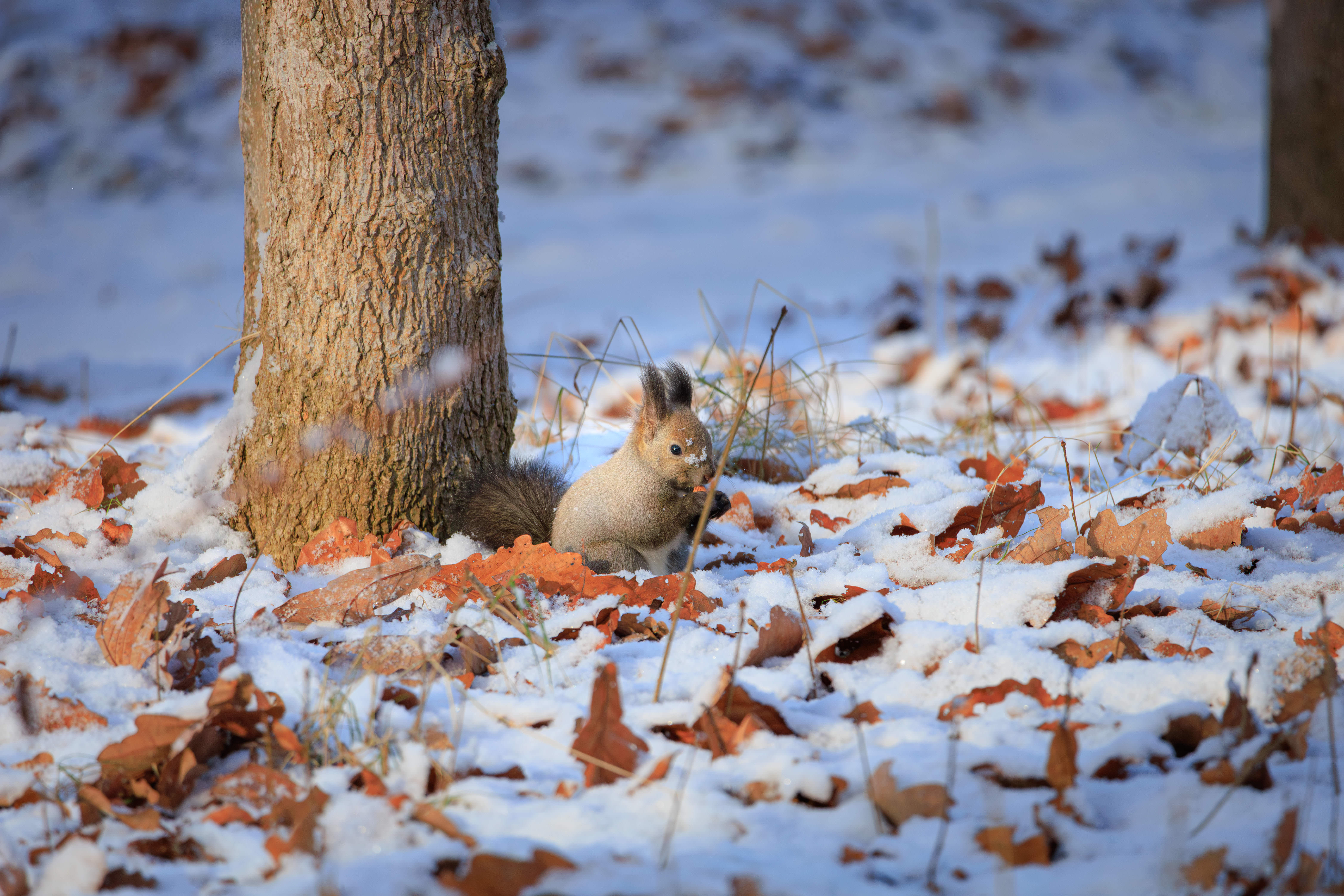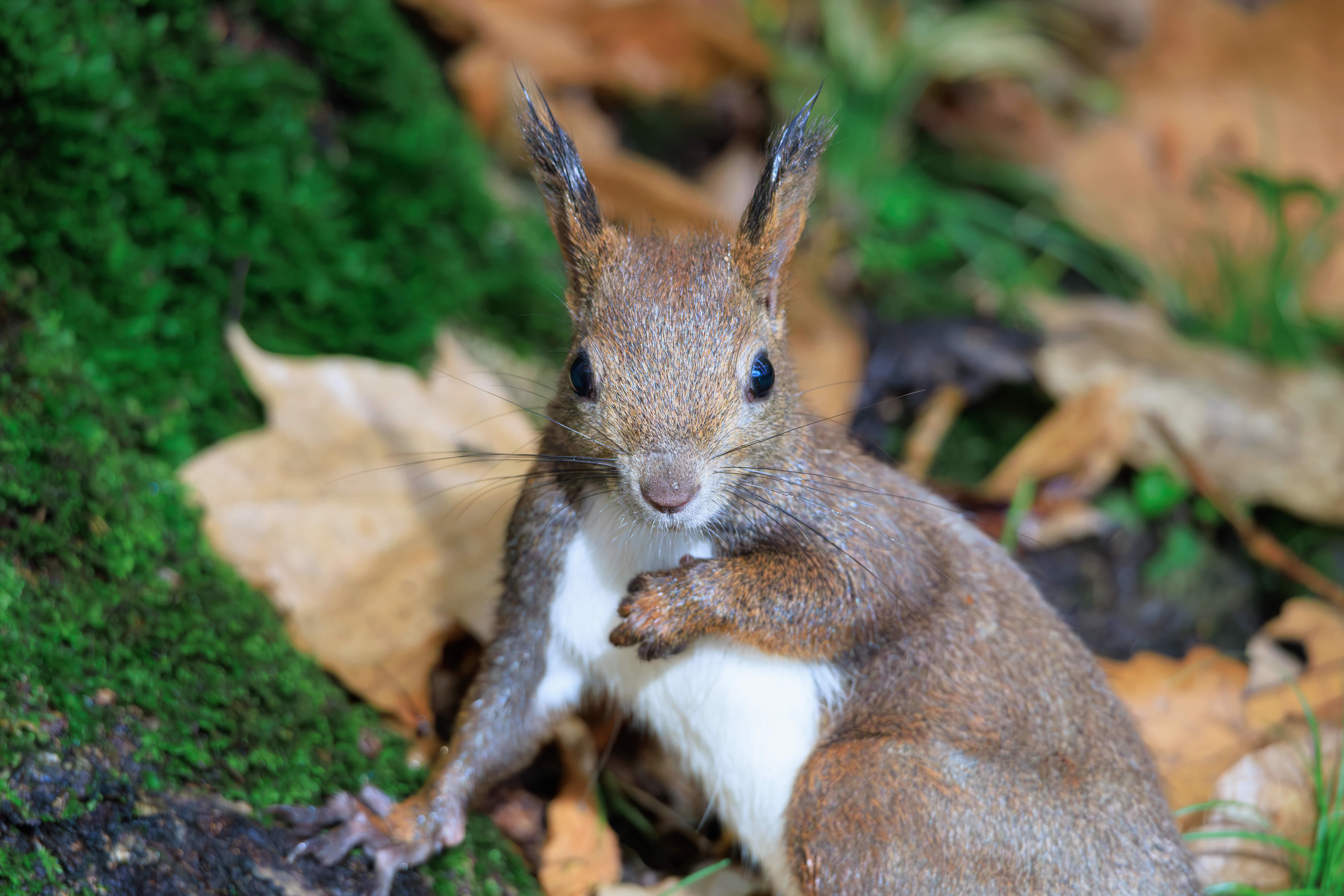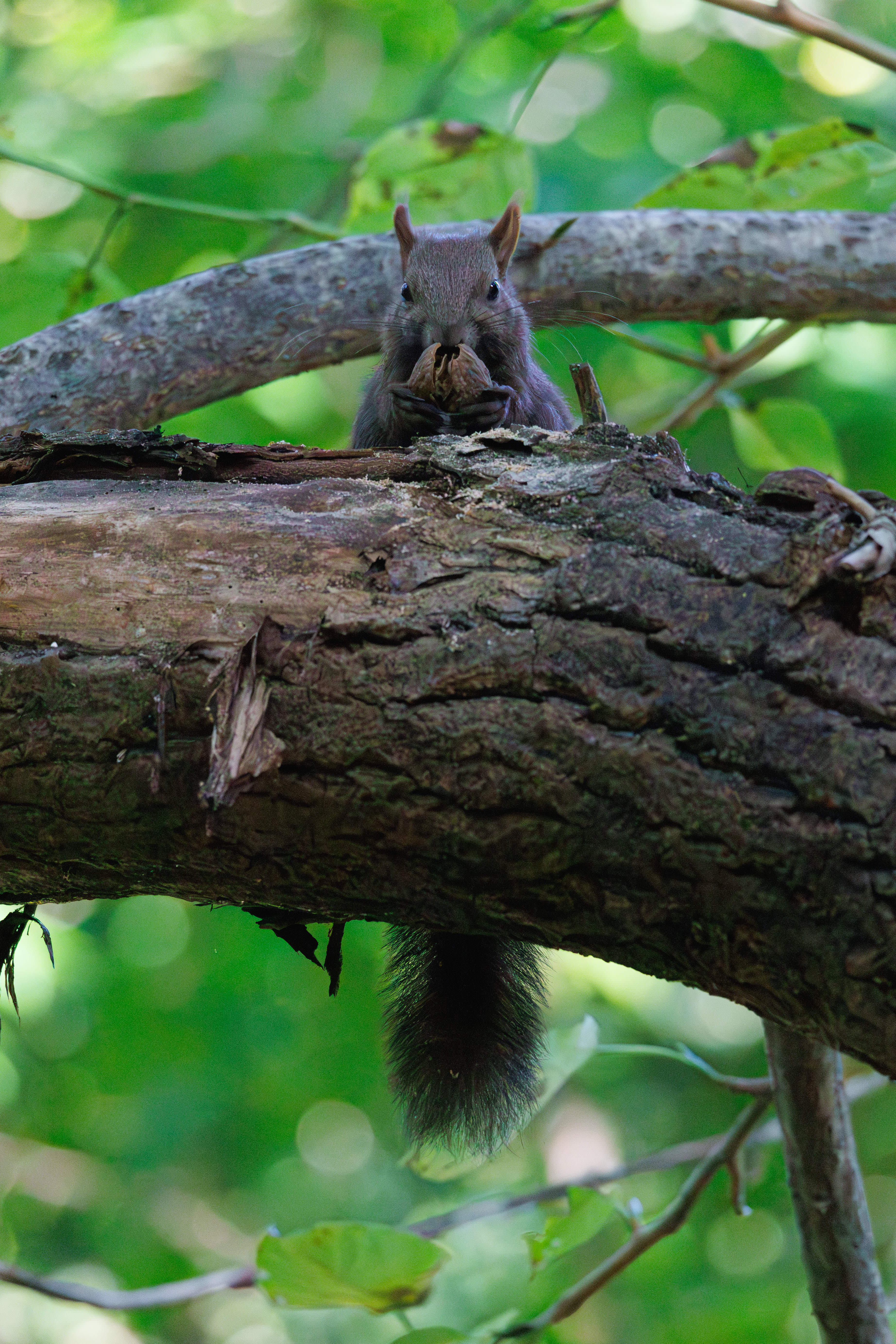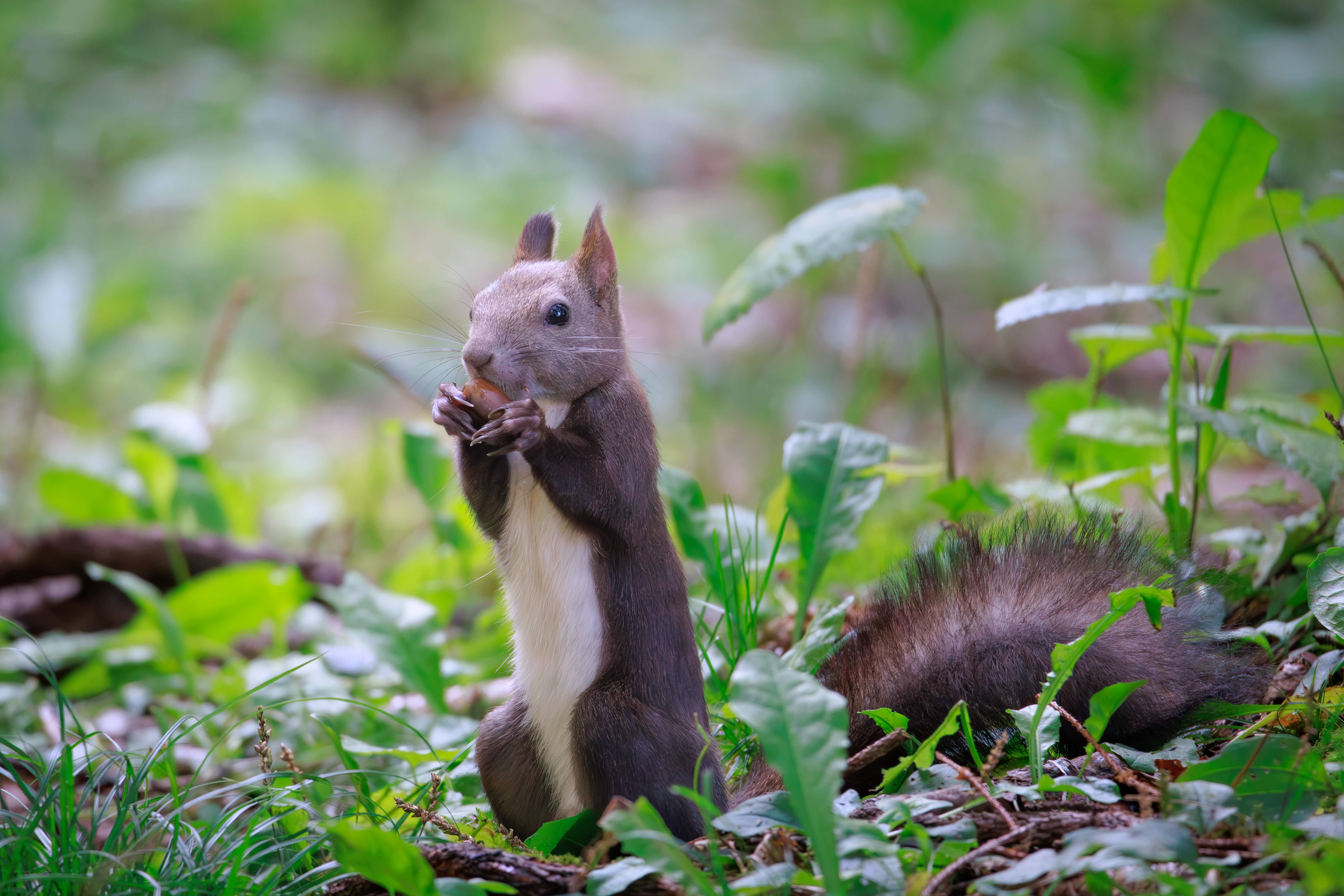 早朝の公園にいたエゾリス