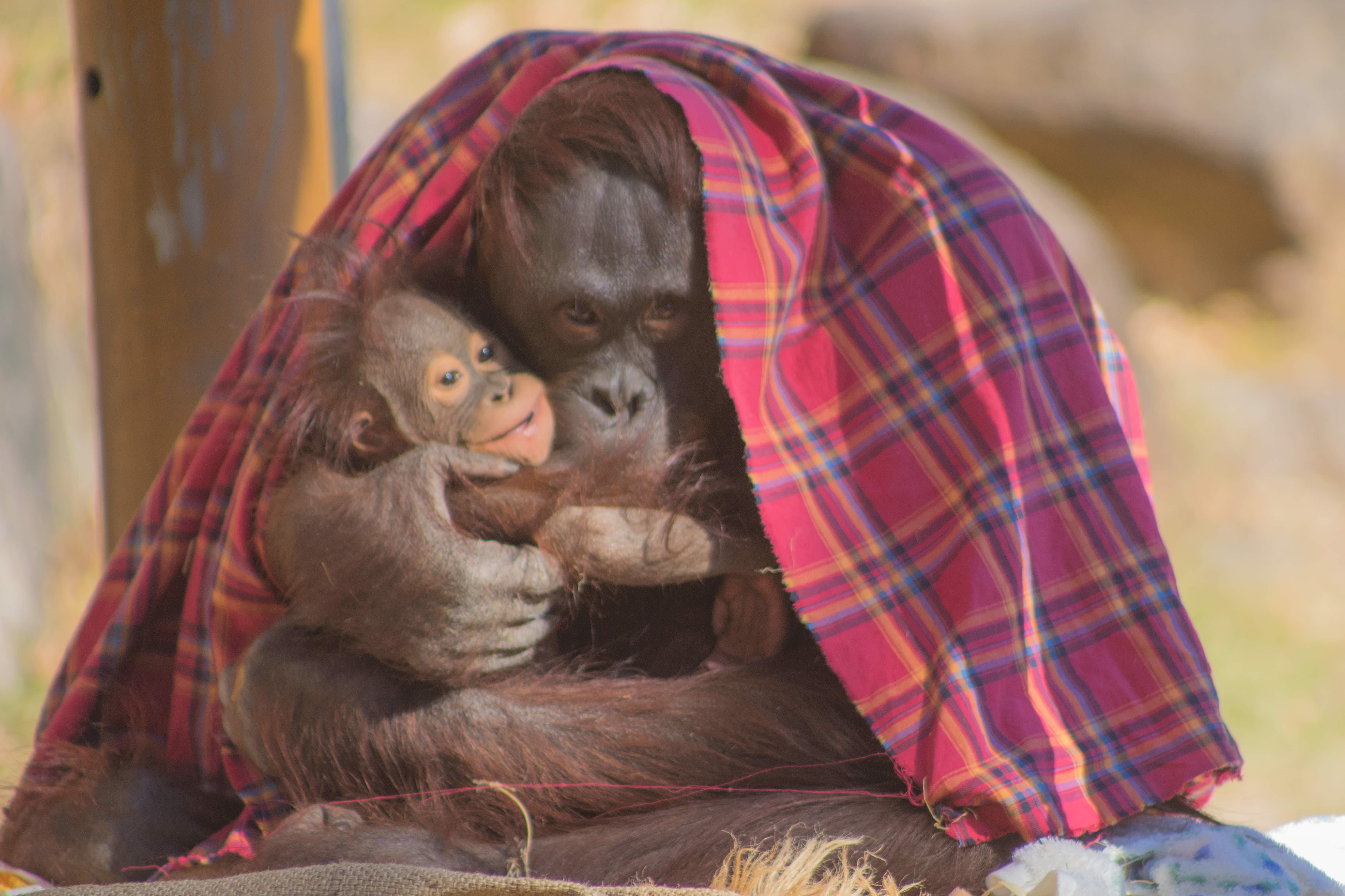 オランウータンが子供を大切に抱いていました。
