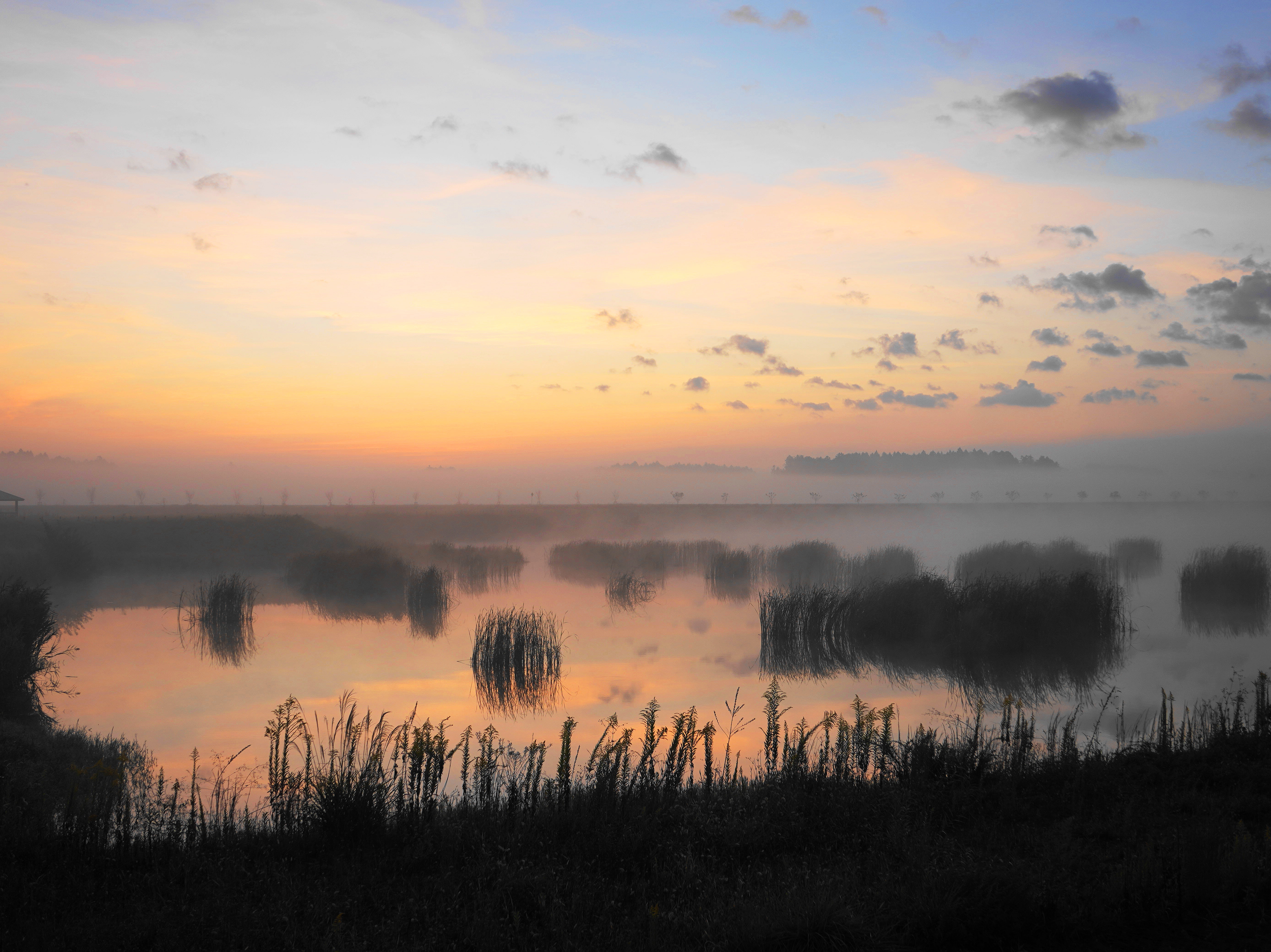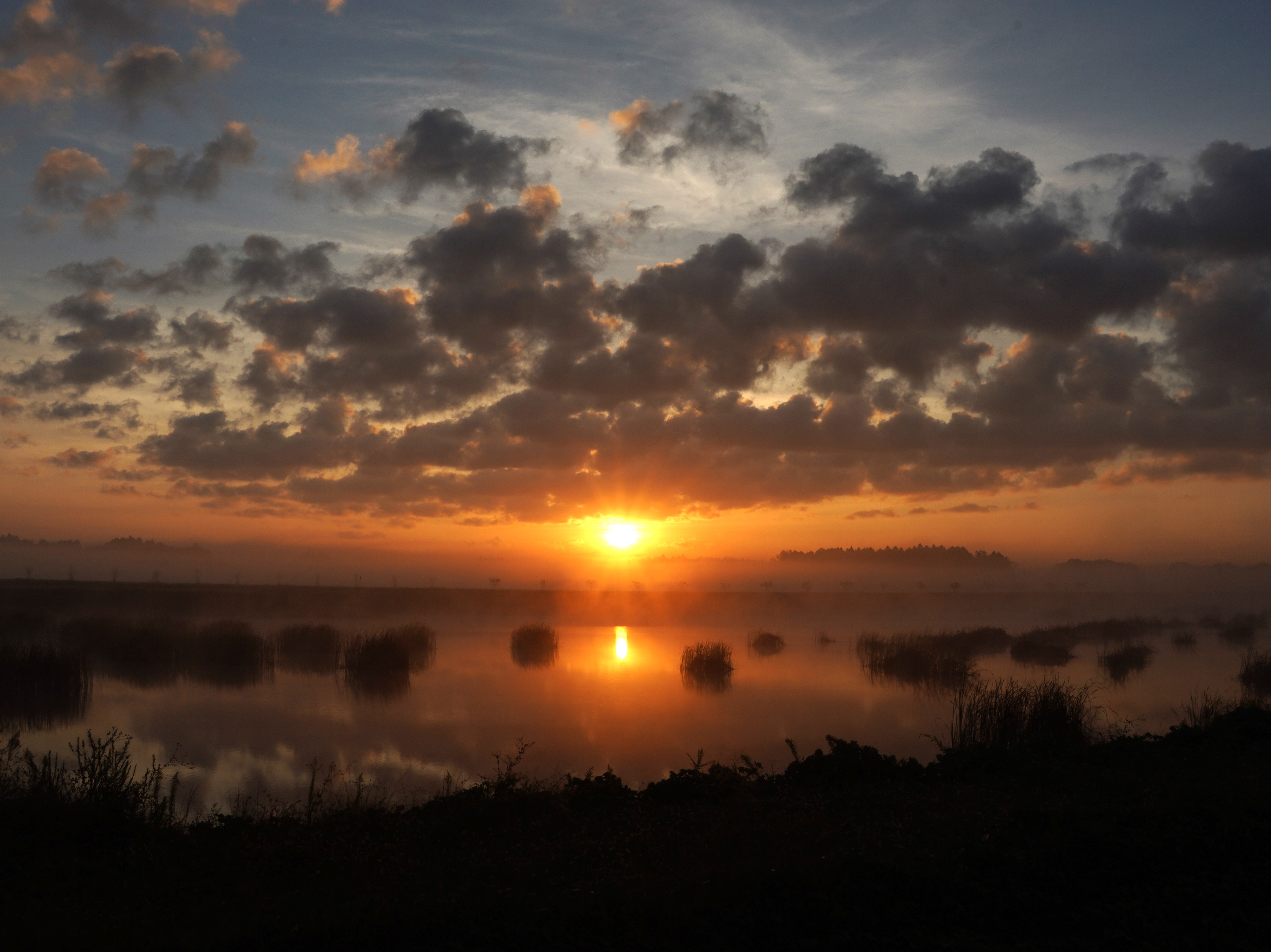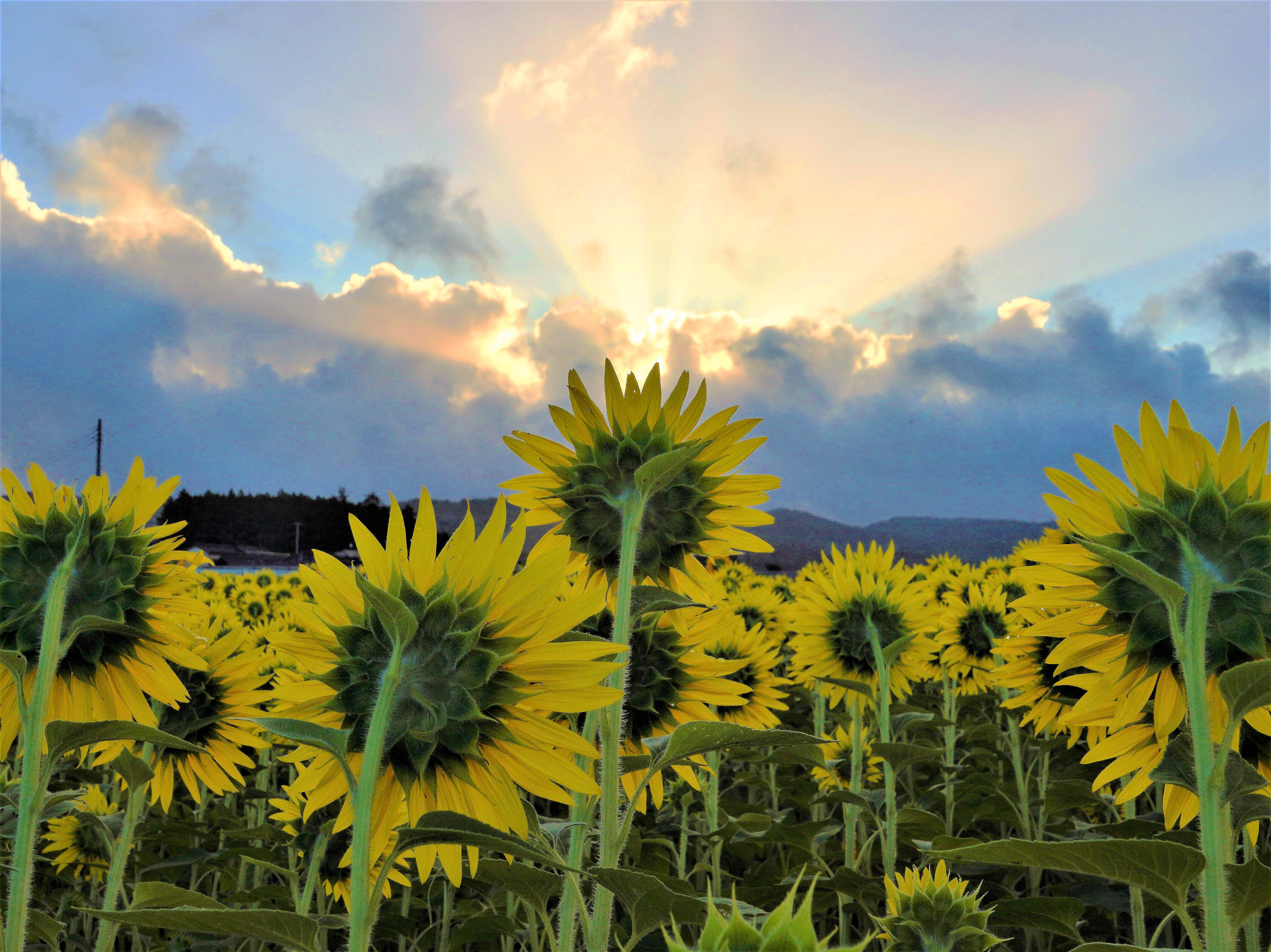 雲の間から、朝日がのぞいています。