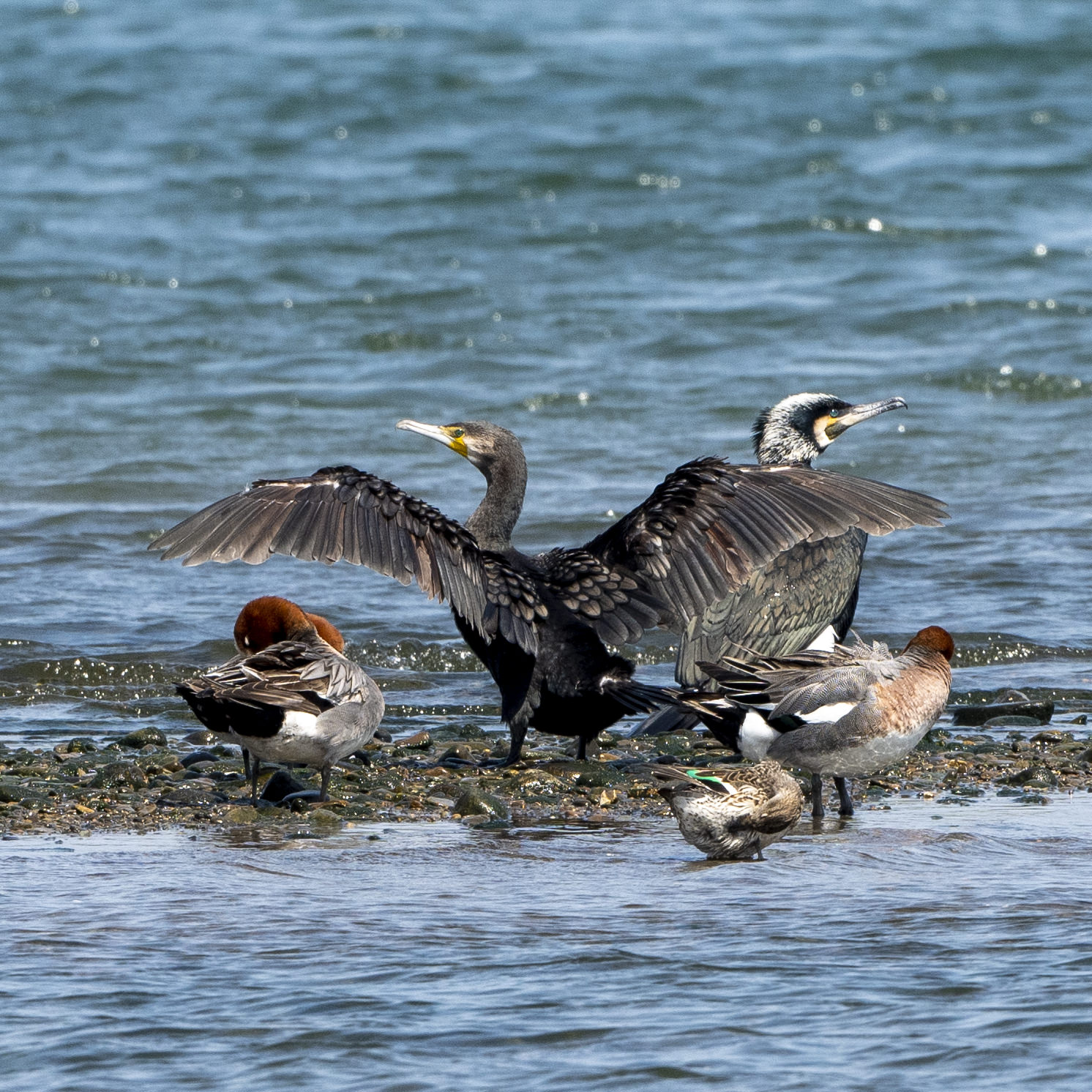 羽を広げて、気持ちよい水上歩行?