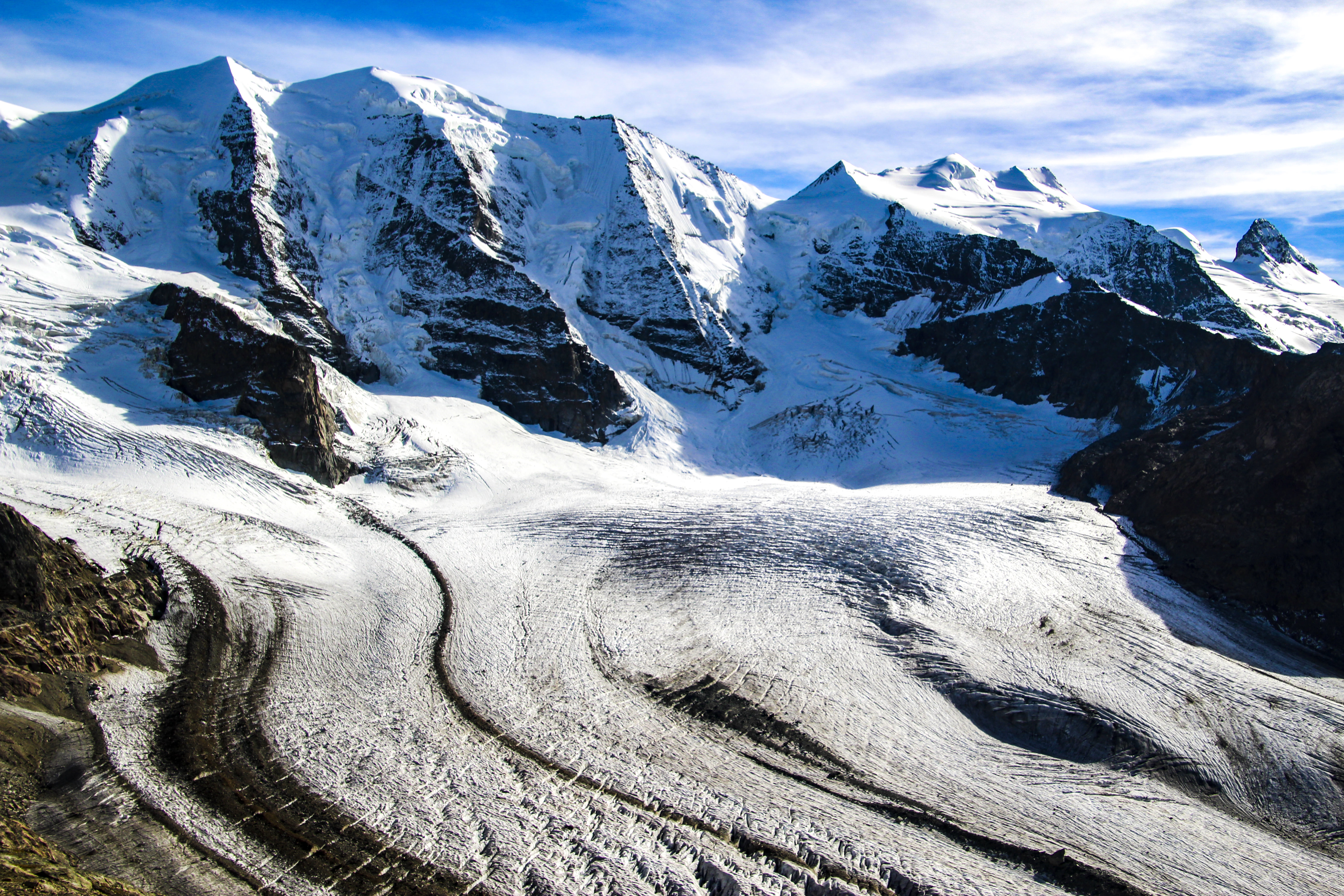 スイス ディアボレッツァ展望台から望むペルス氷河とピッツ・ベルニナ(1)