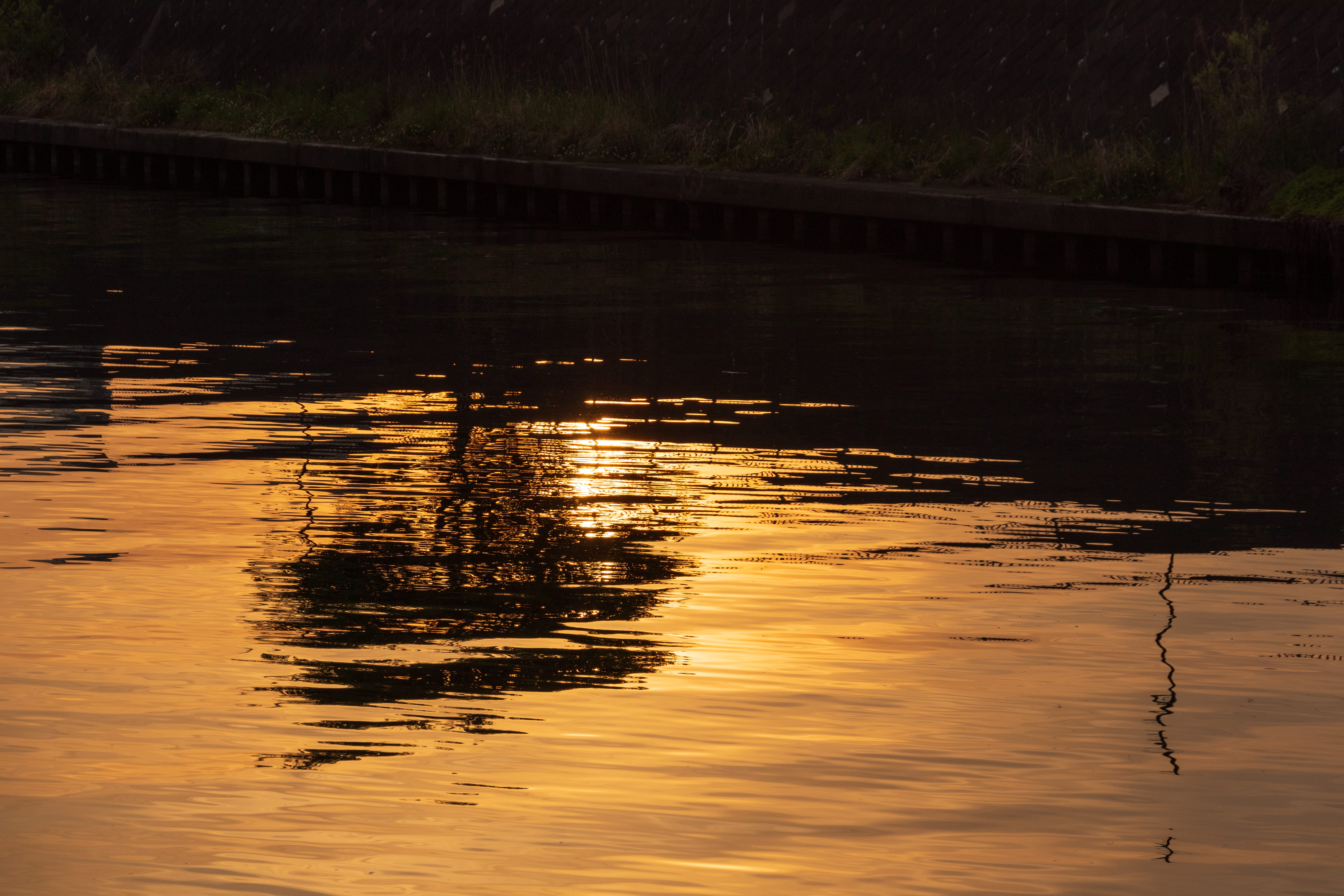 朝日の中、川にいるカワウの泳ぐ波紋が美しかったので、撮影しました。