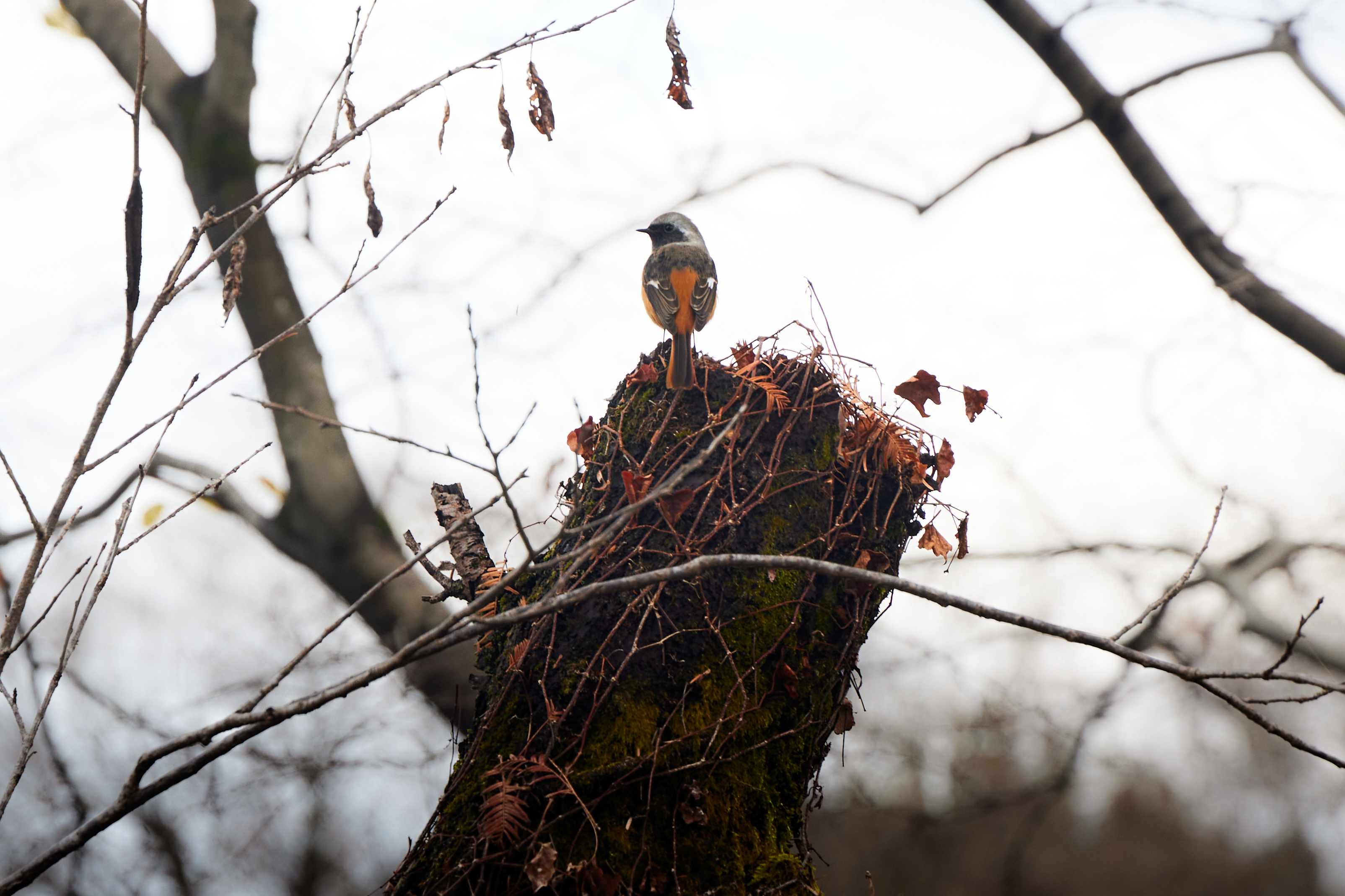 駐車場の脇にある木の上に立ってました。