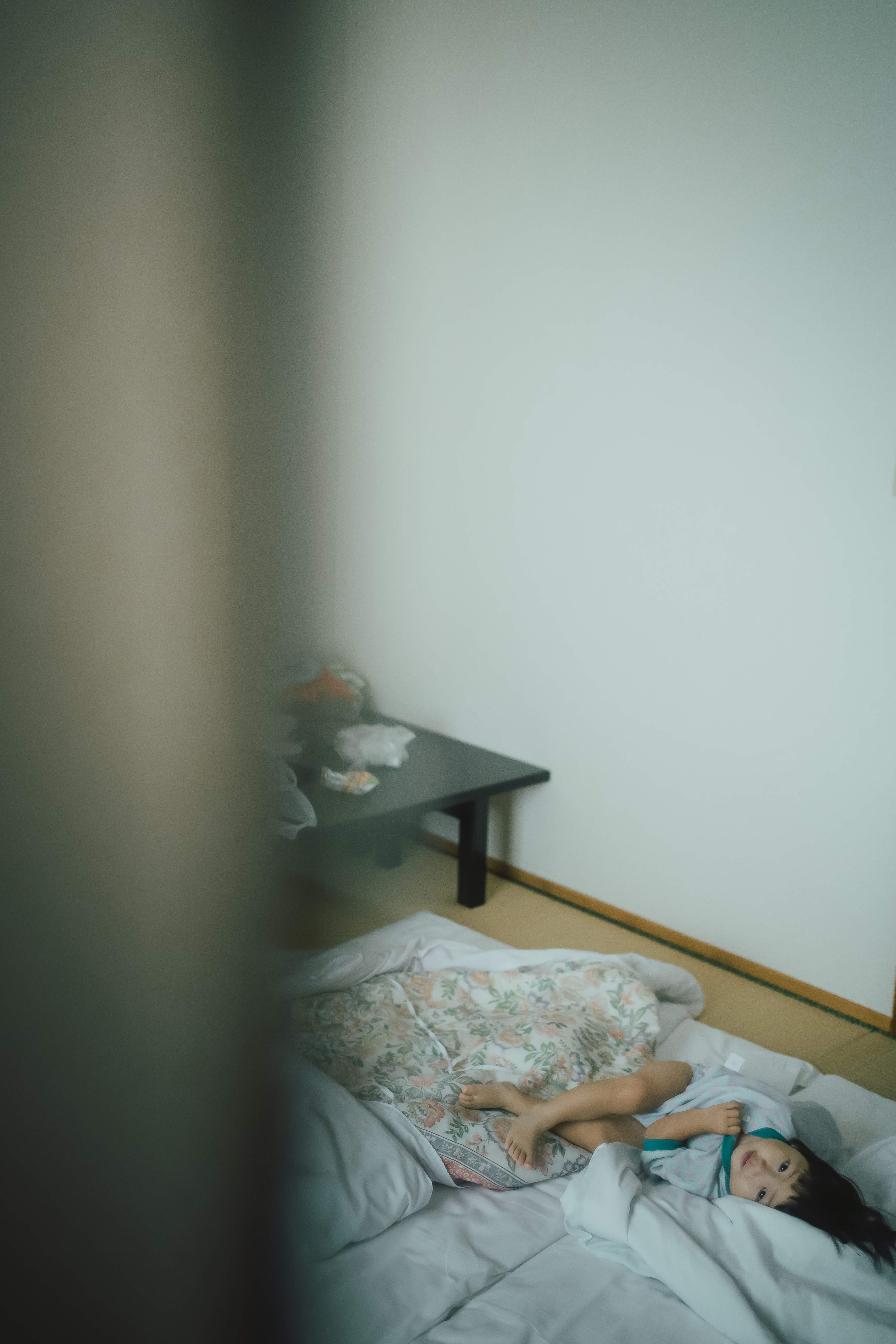 娘は布団に対して直角に寝ていました。