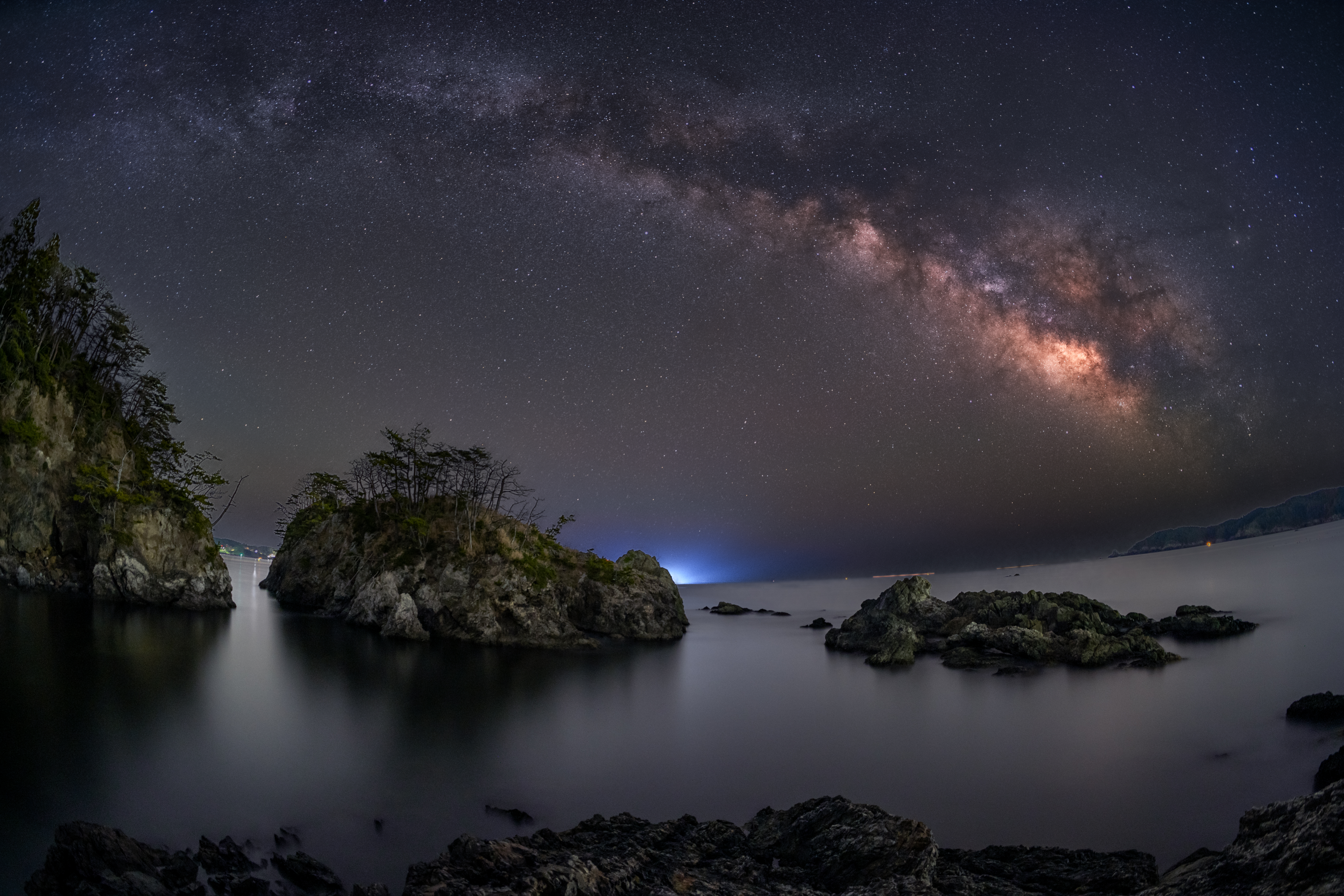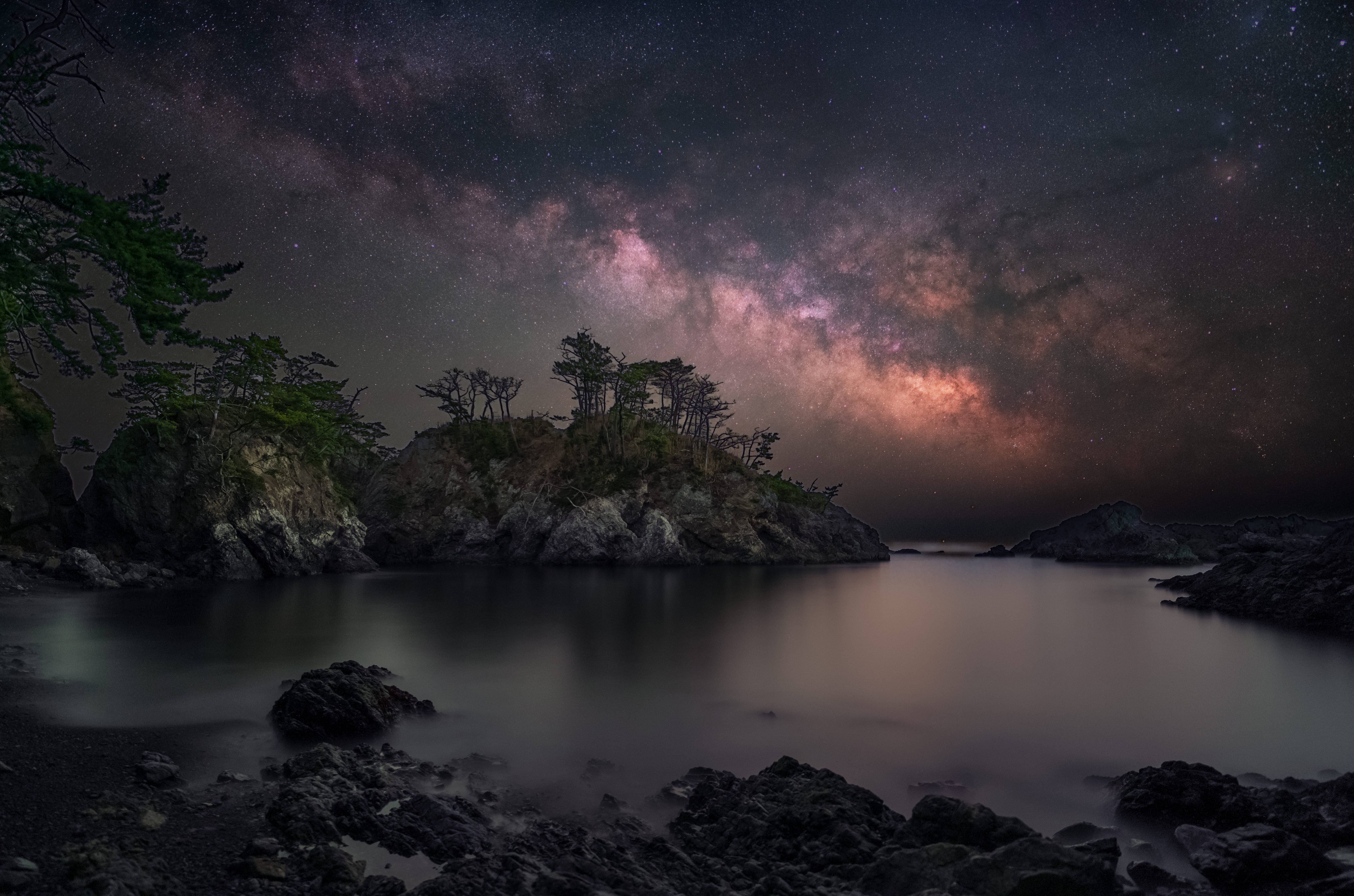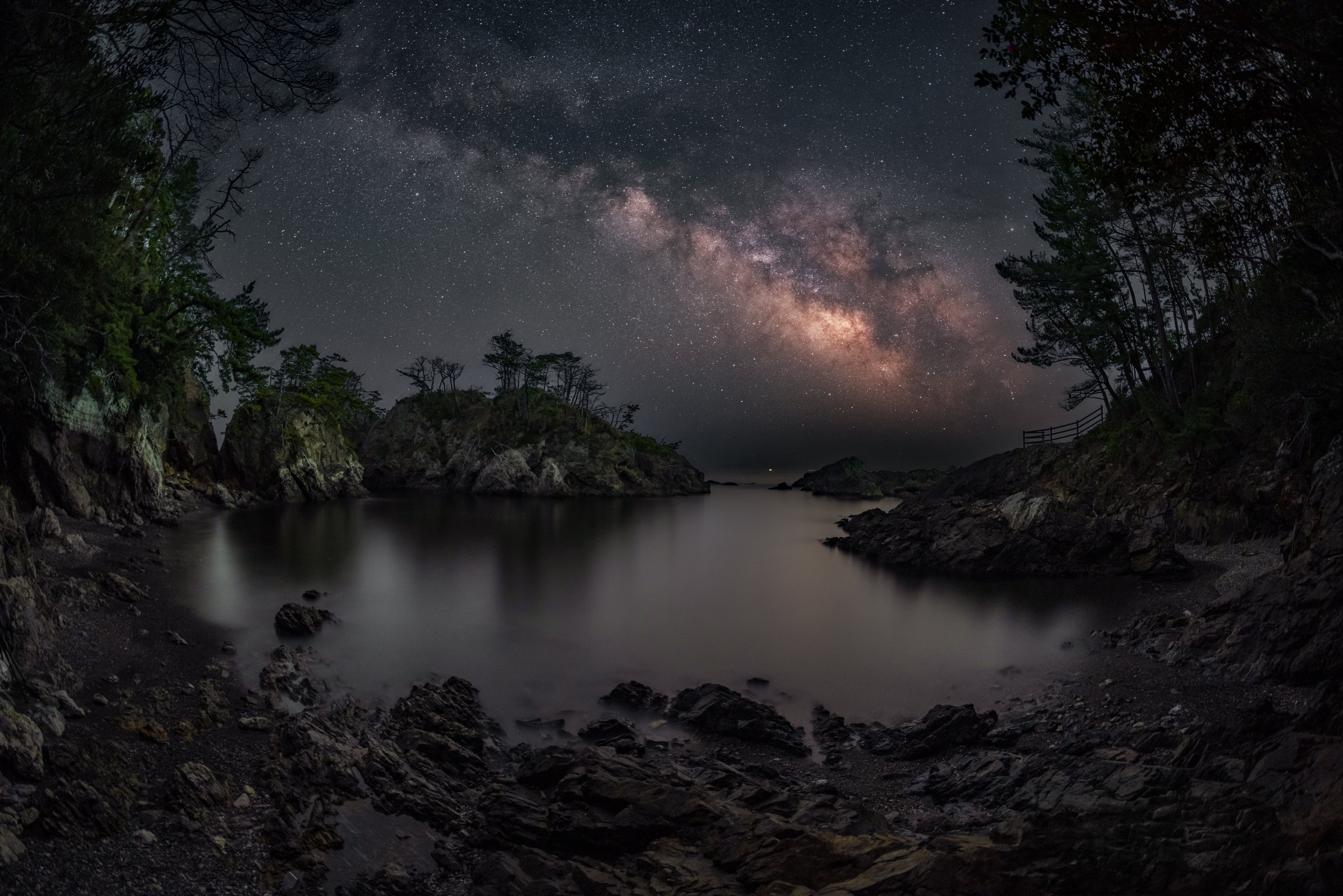 この場所は風が当たらない場所だったので、穏やかな海面に星空がリフレクションしていました。
