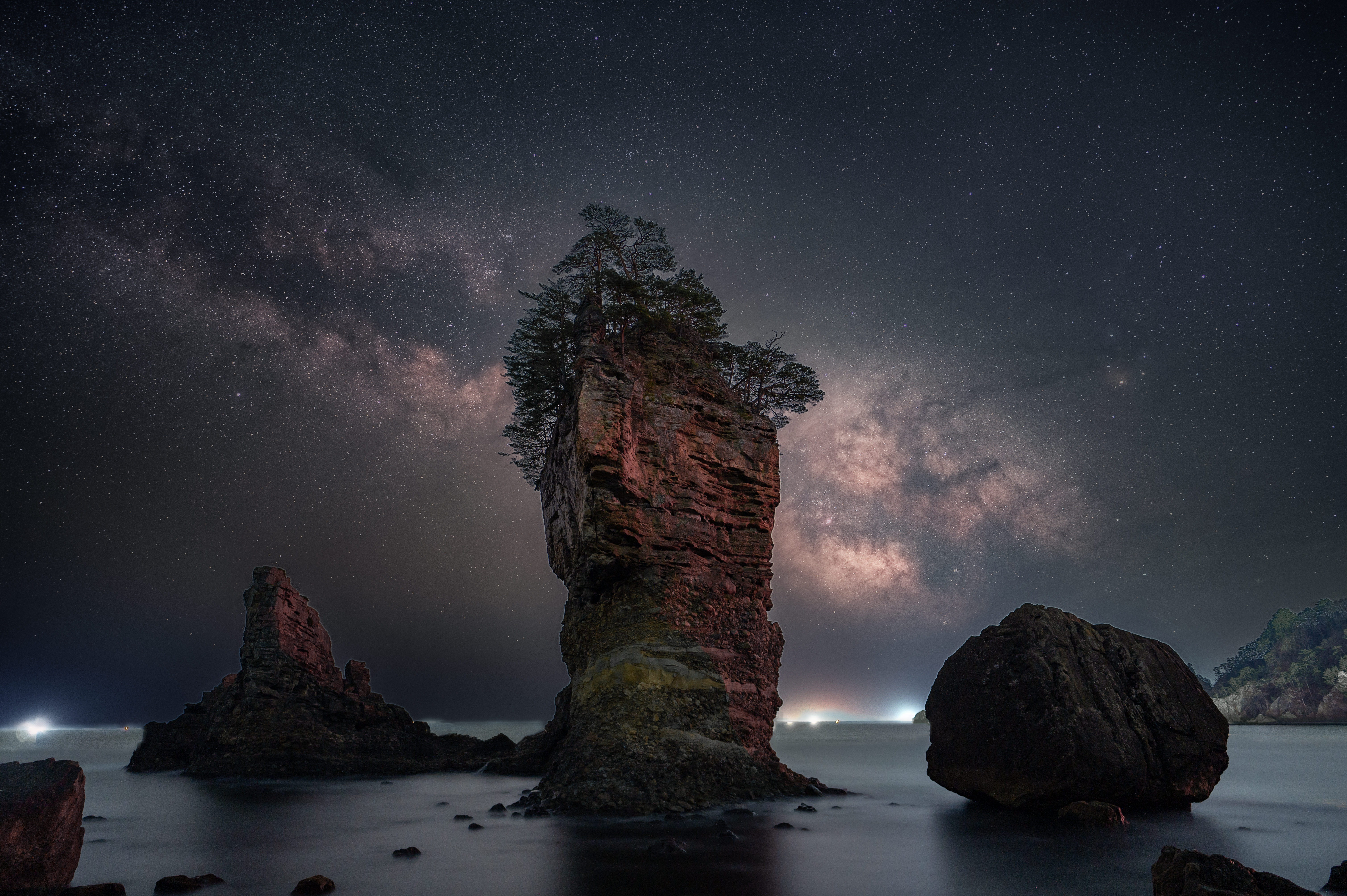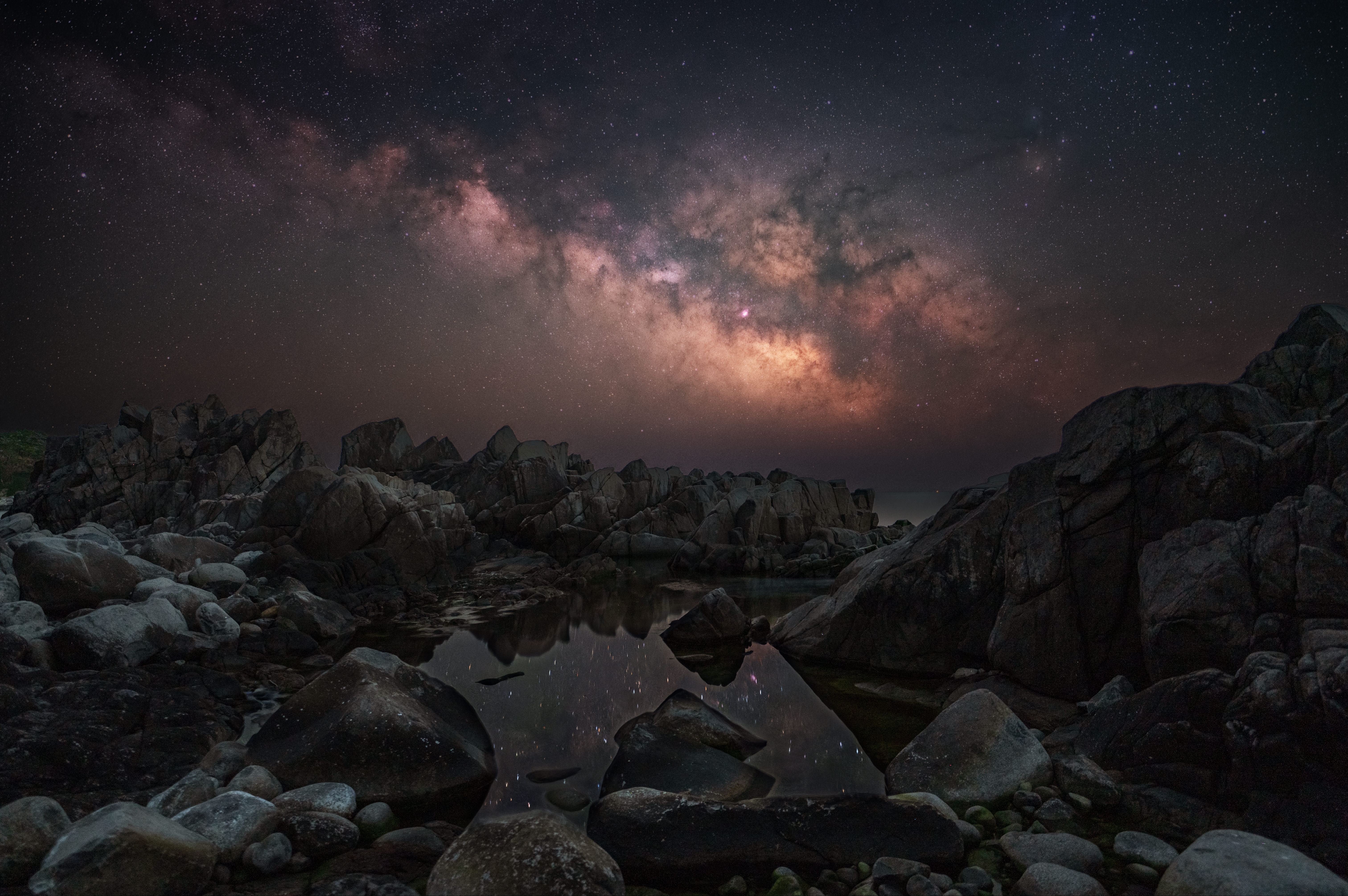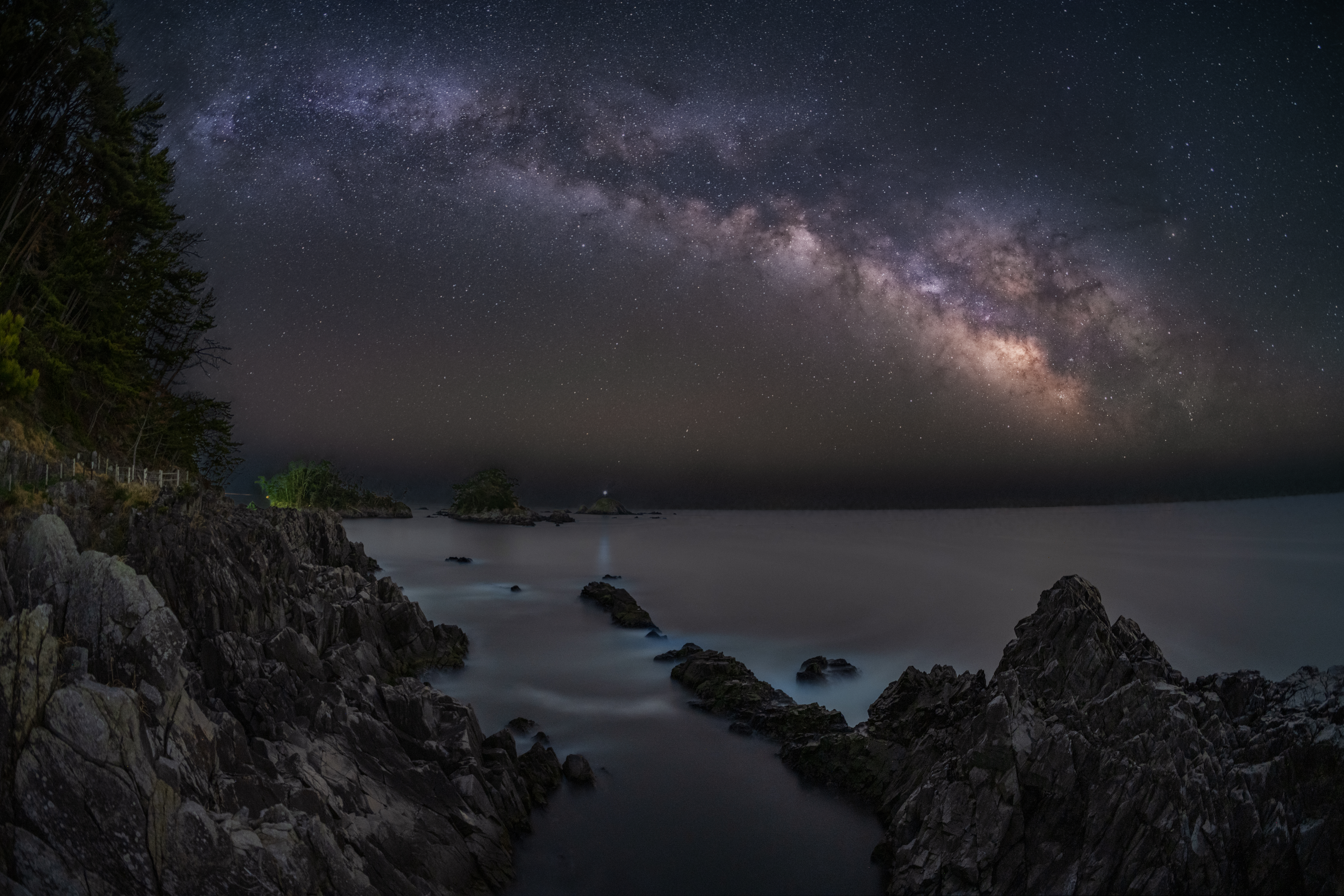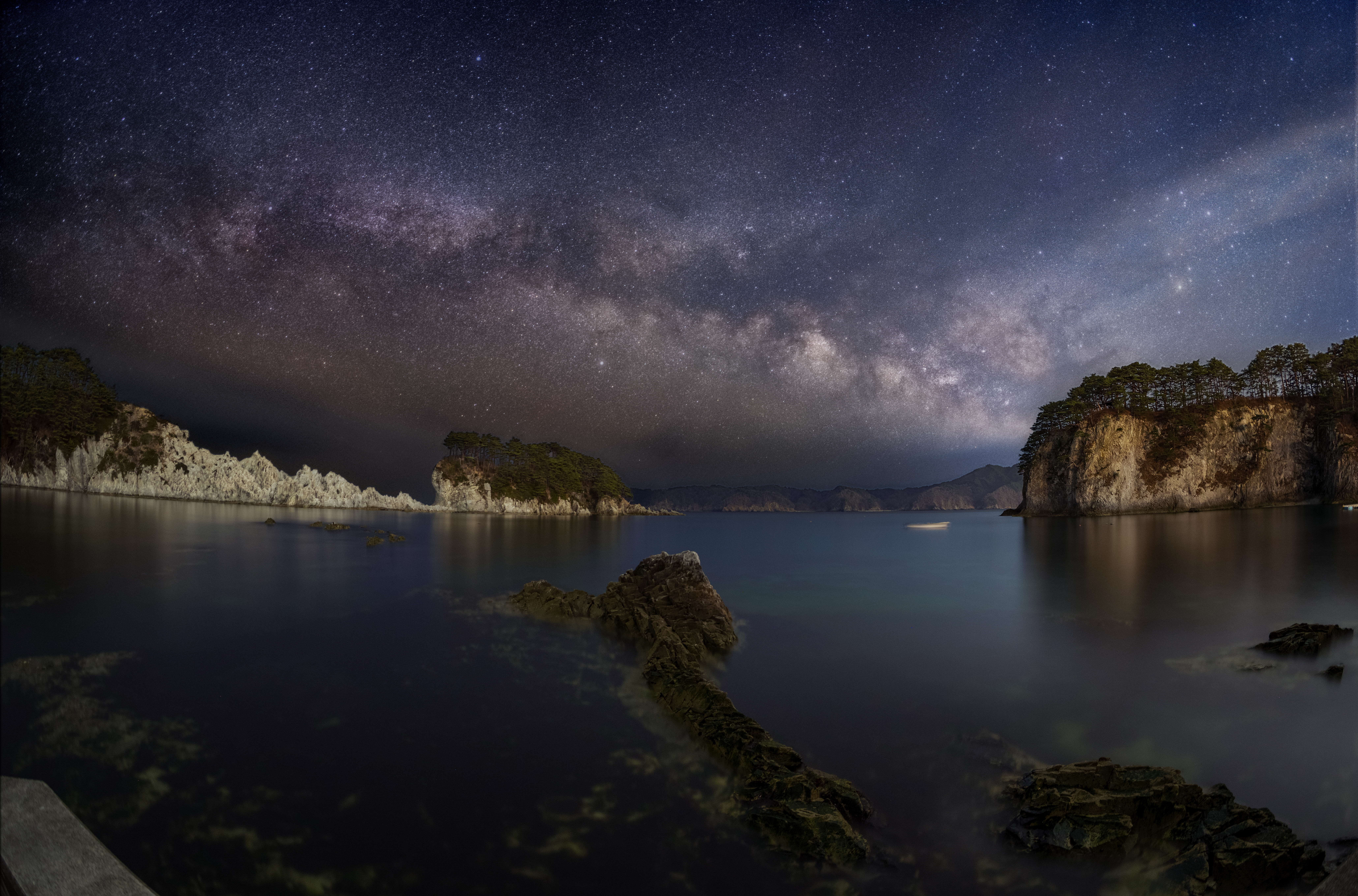 この場所は風が当たらない場所だったので、穏やかな海面に星空がリフレクションしていました。