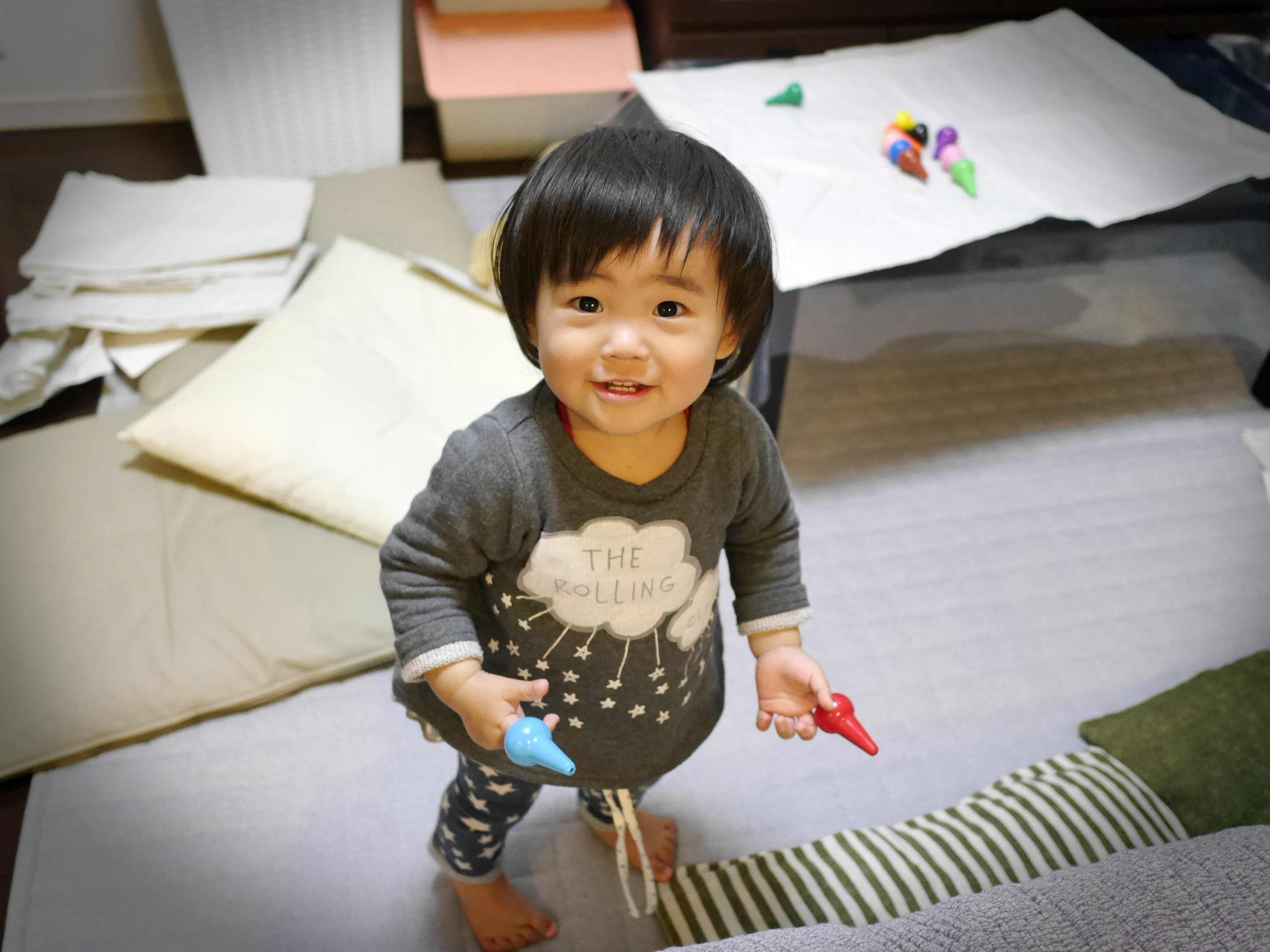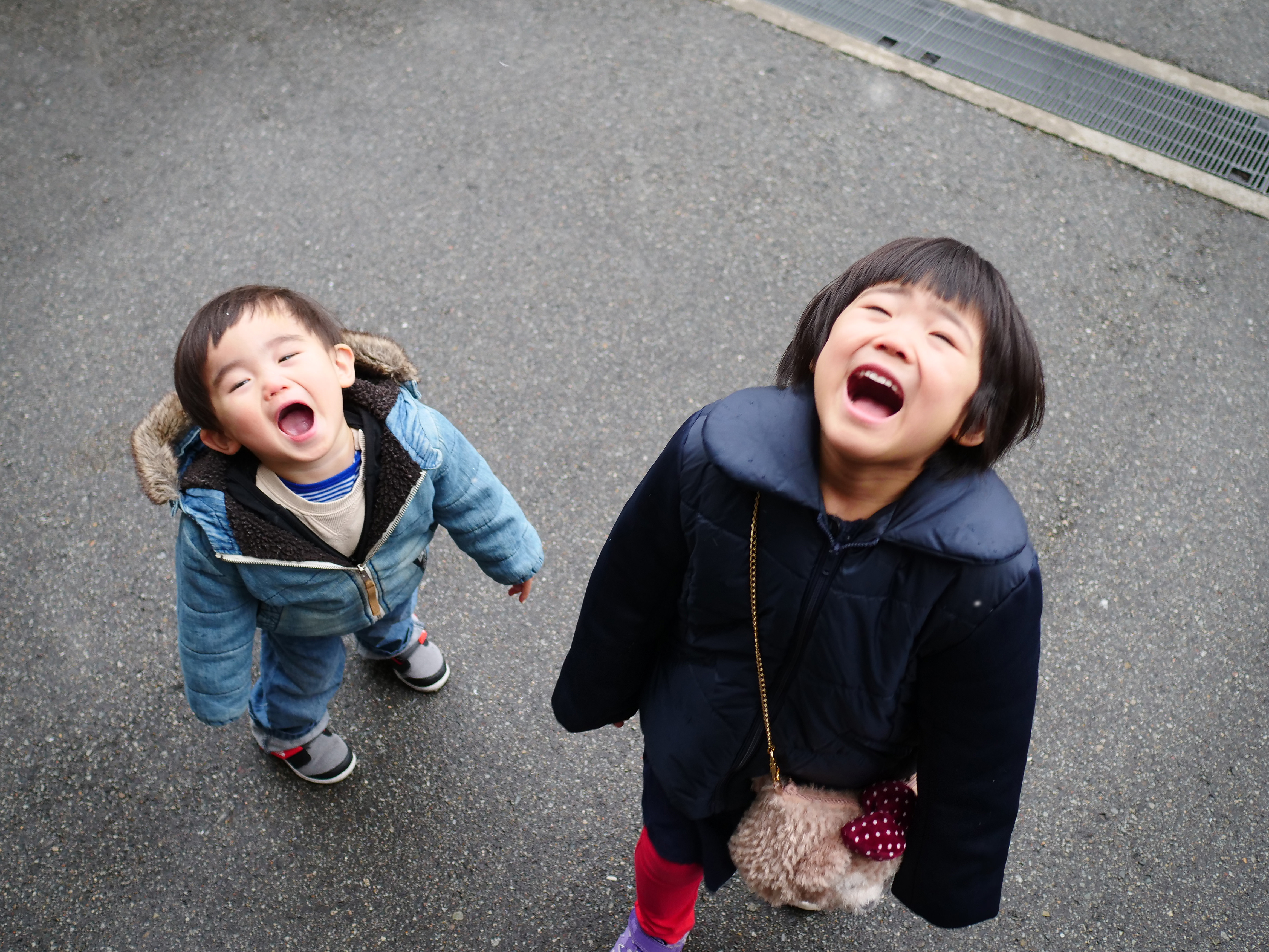 私の住む地域では雪がめずらしく、子供たちは雪が降るとおおはしゃぎです。兄弟二人で雪を食べようと一生懸命でした。