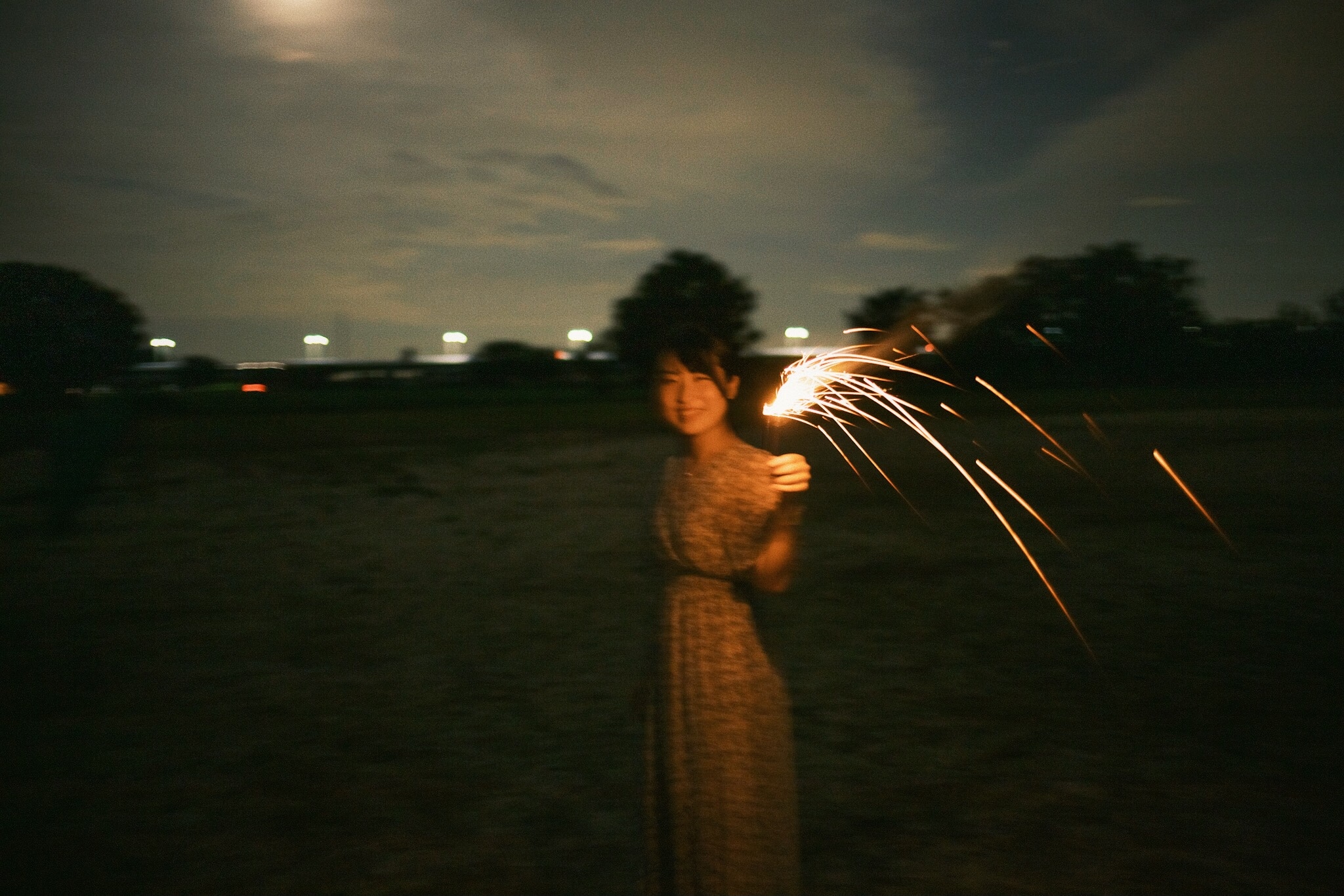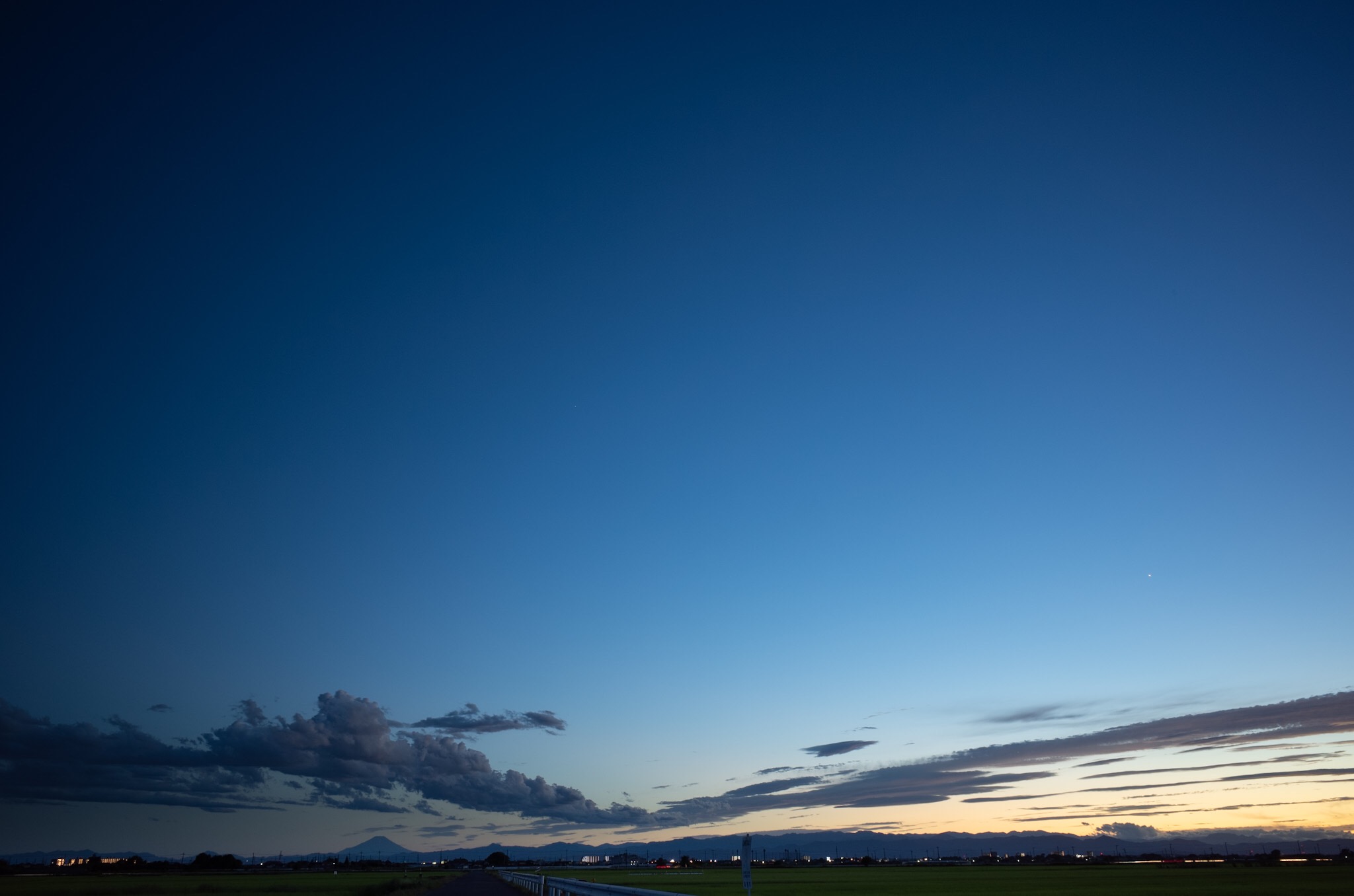 車での移動中、夕日の沈んだ空の青がとても綺麗だったので、車を停めて撮りました。