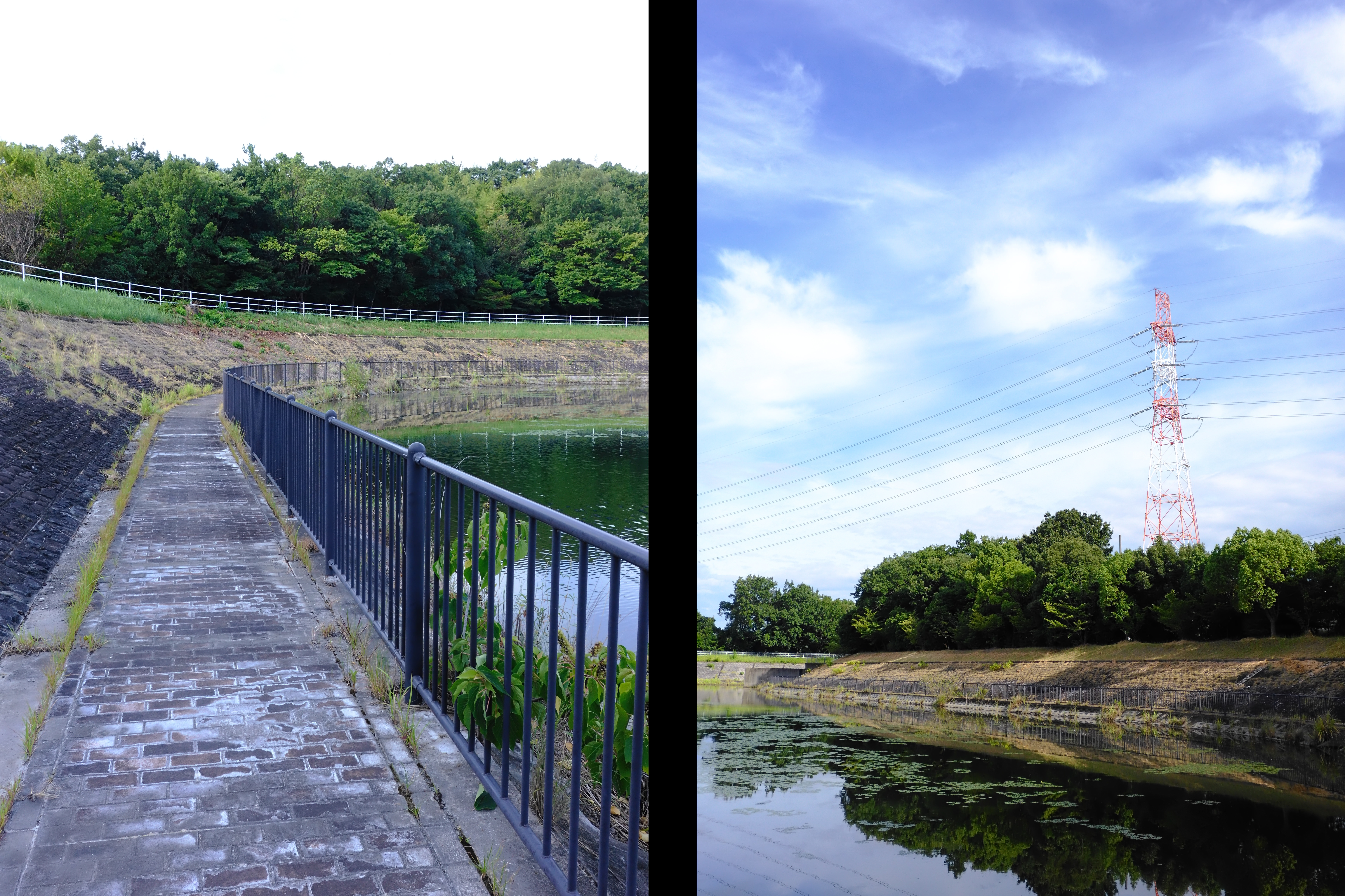 池と鉄塔をビビッドで撮影し2in1写真にしてみました。