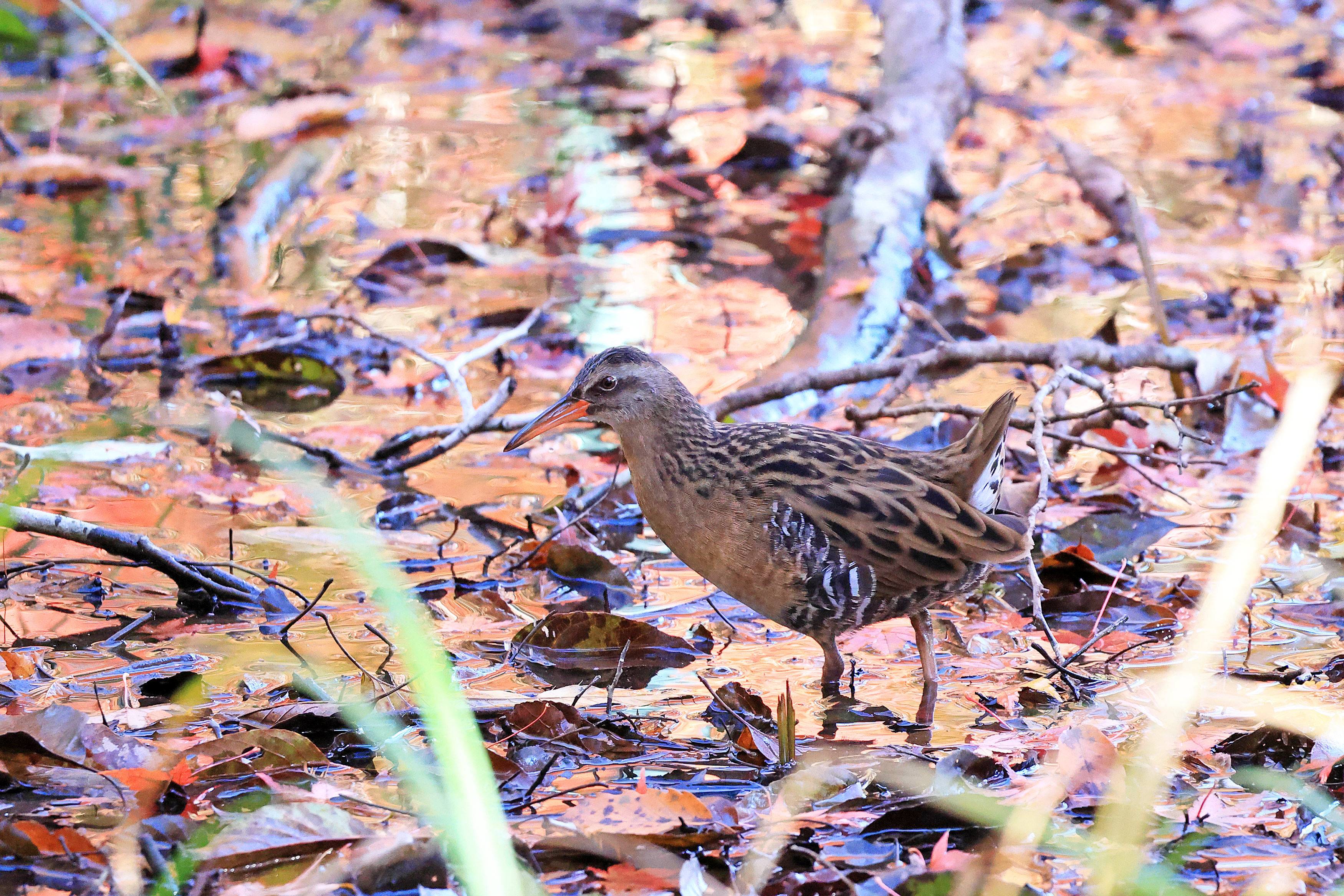 久々にカワセミがすぐ近く(6mくらい)まで来てくれたのですが、手前のモミジに隠れて全身を撮ることはかないませんでした。