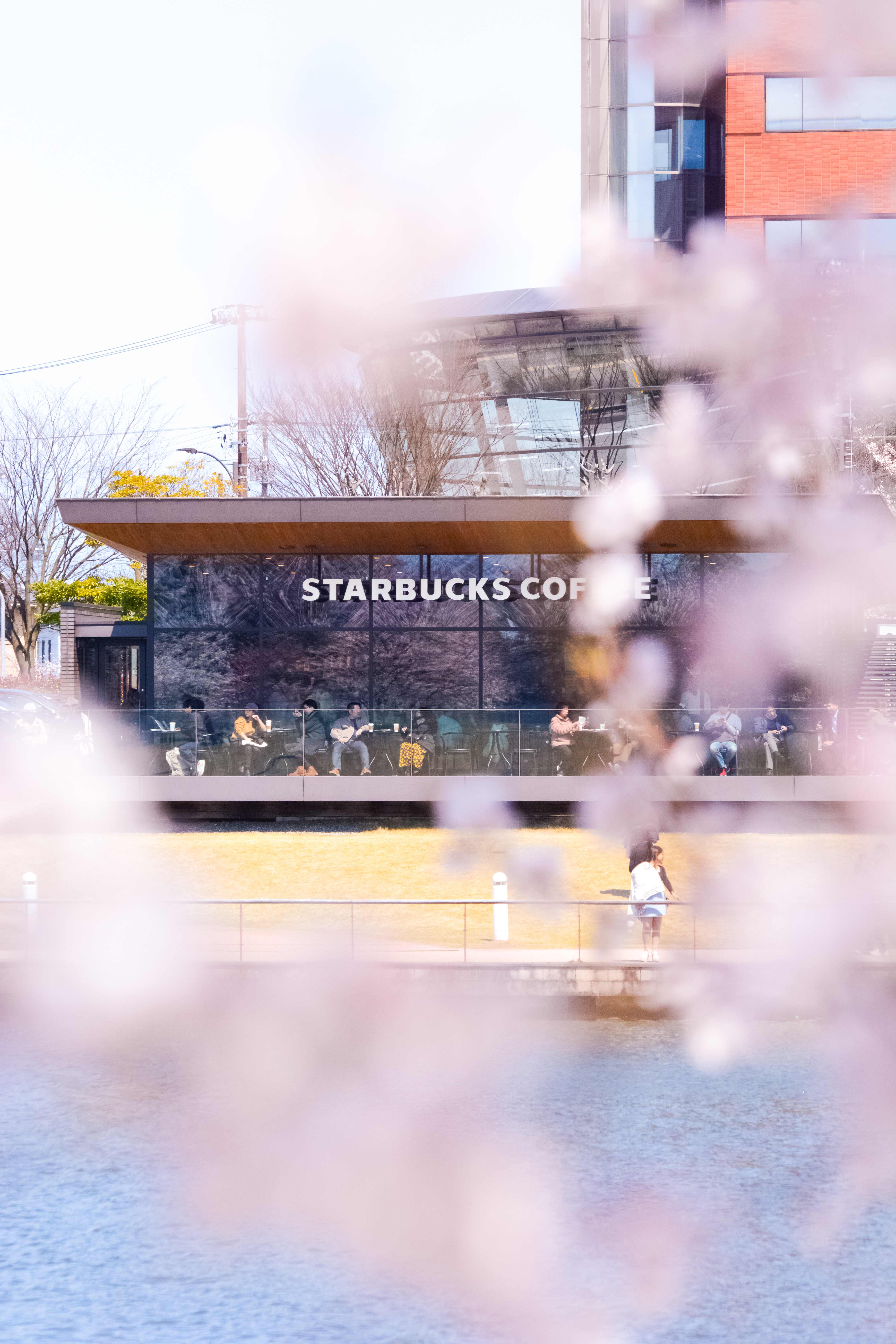 富山市の環水公園内にあるスターバックスを桜の合間から撮ったものです。