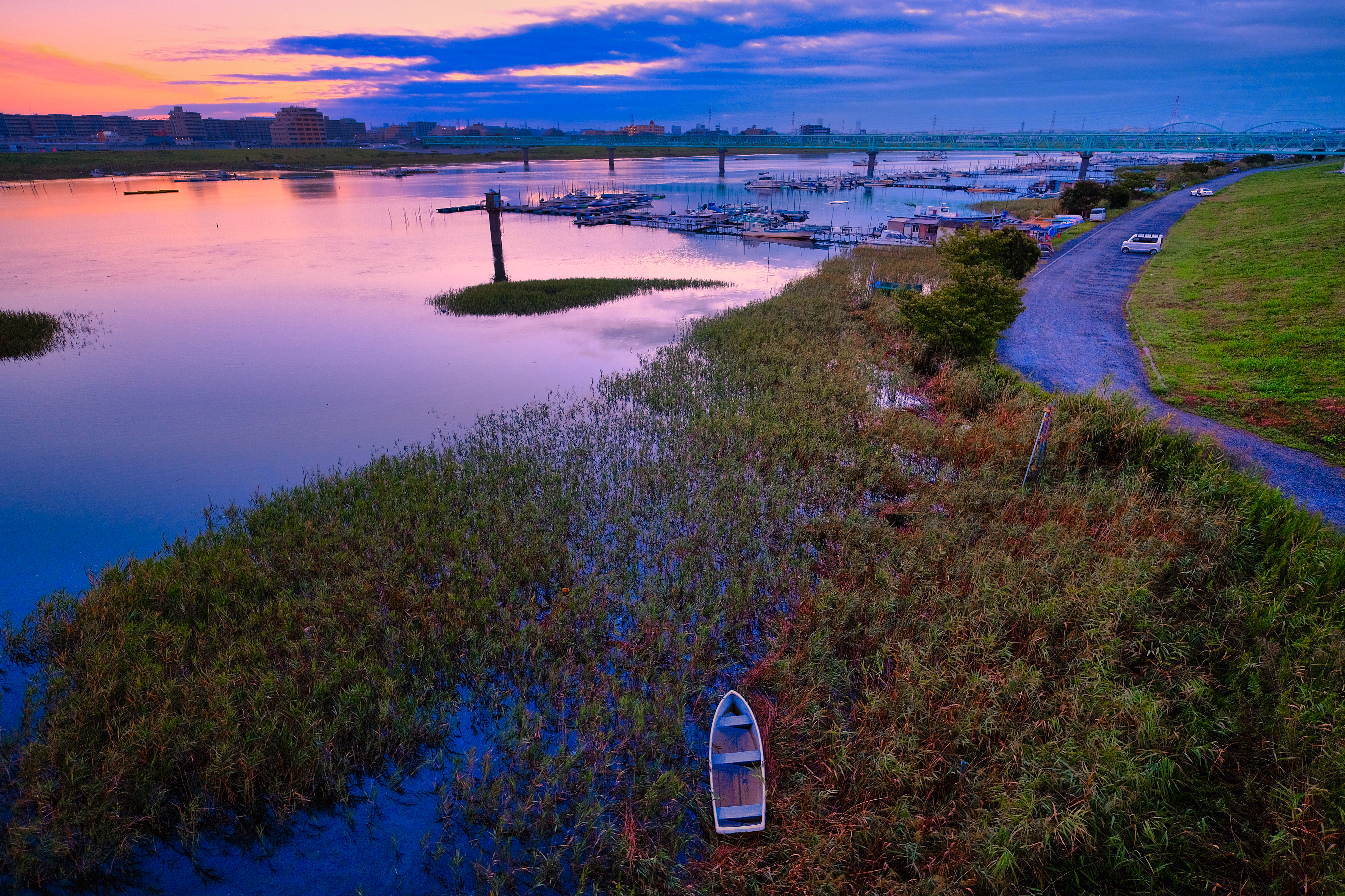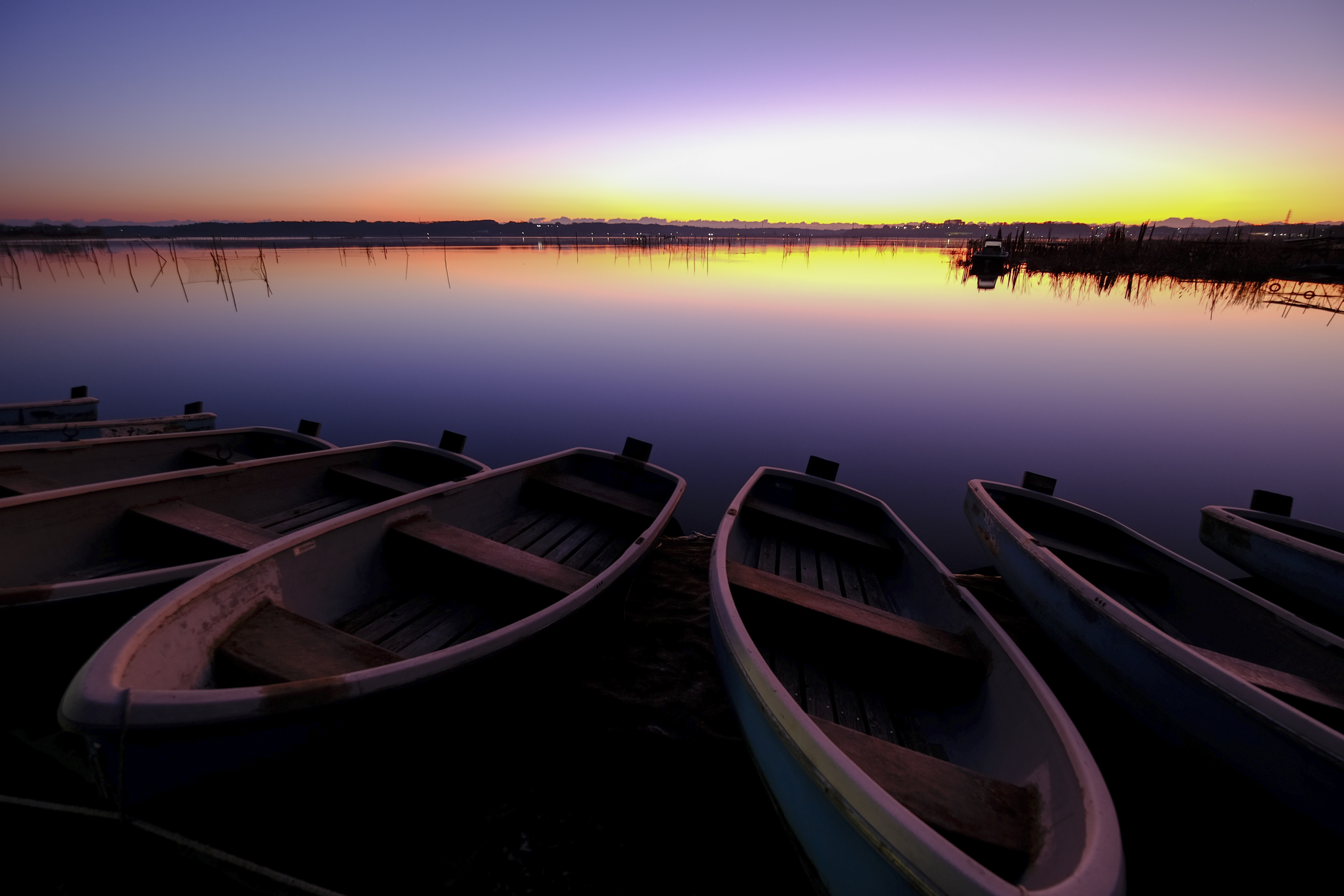 夜明けの1時間前からの空の色の移り変わりは一瞬たりとも同じ風景、同じ色合いにならない。