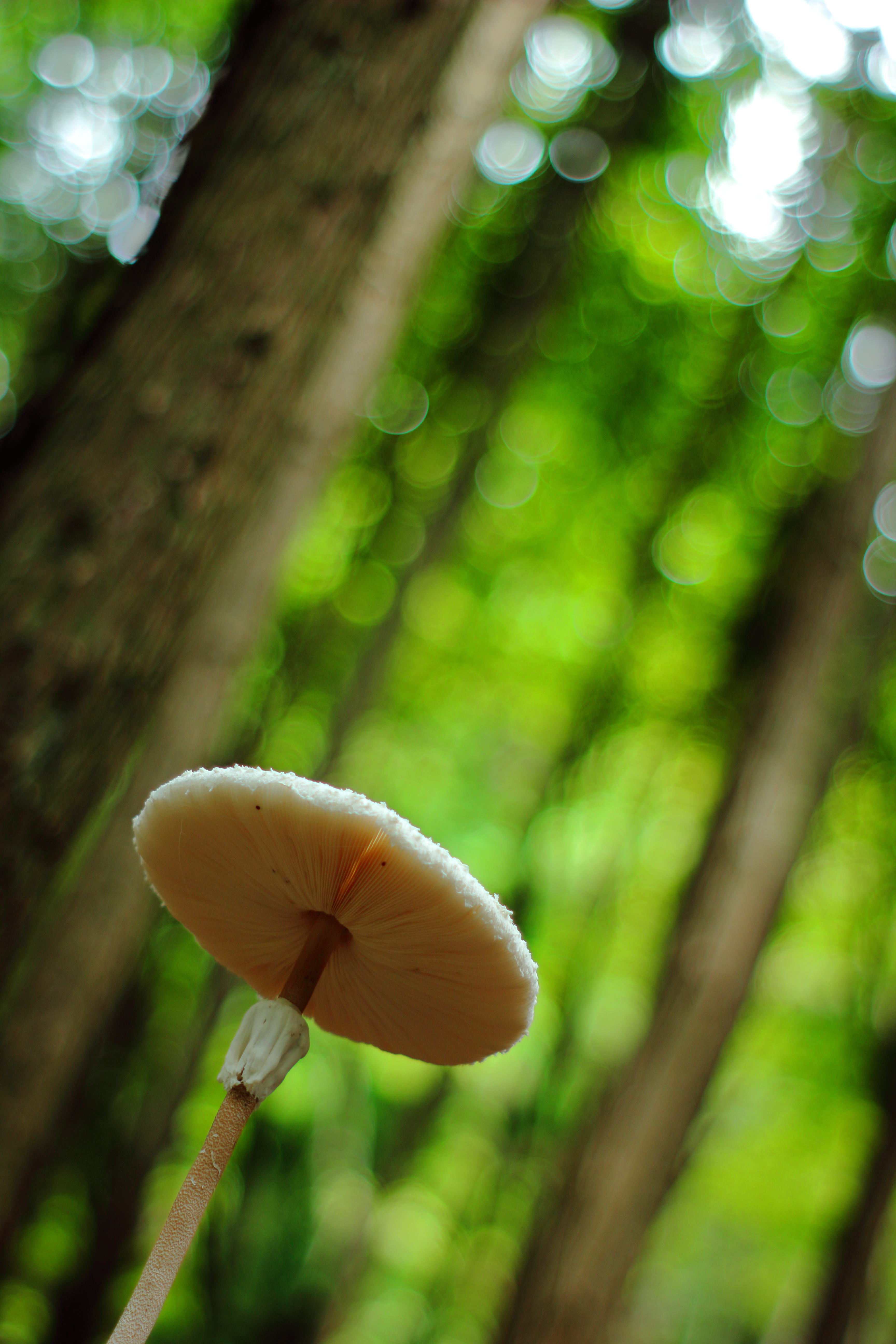 山の中で見つけた15cmくらいの傘を開いたキノコ。
