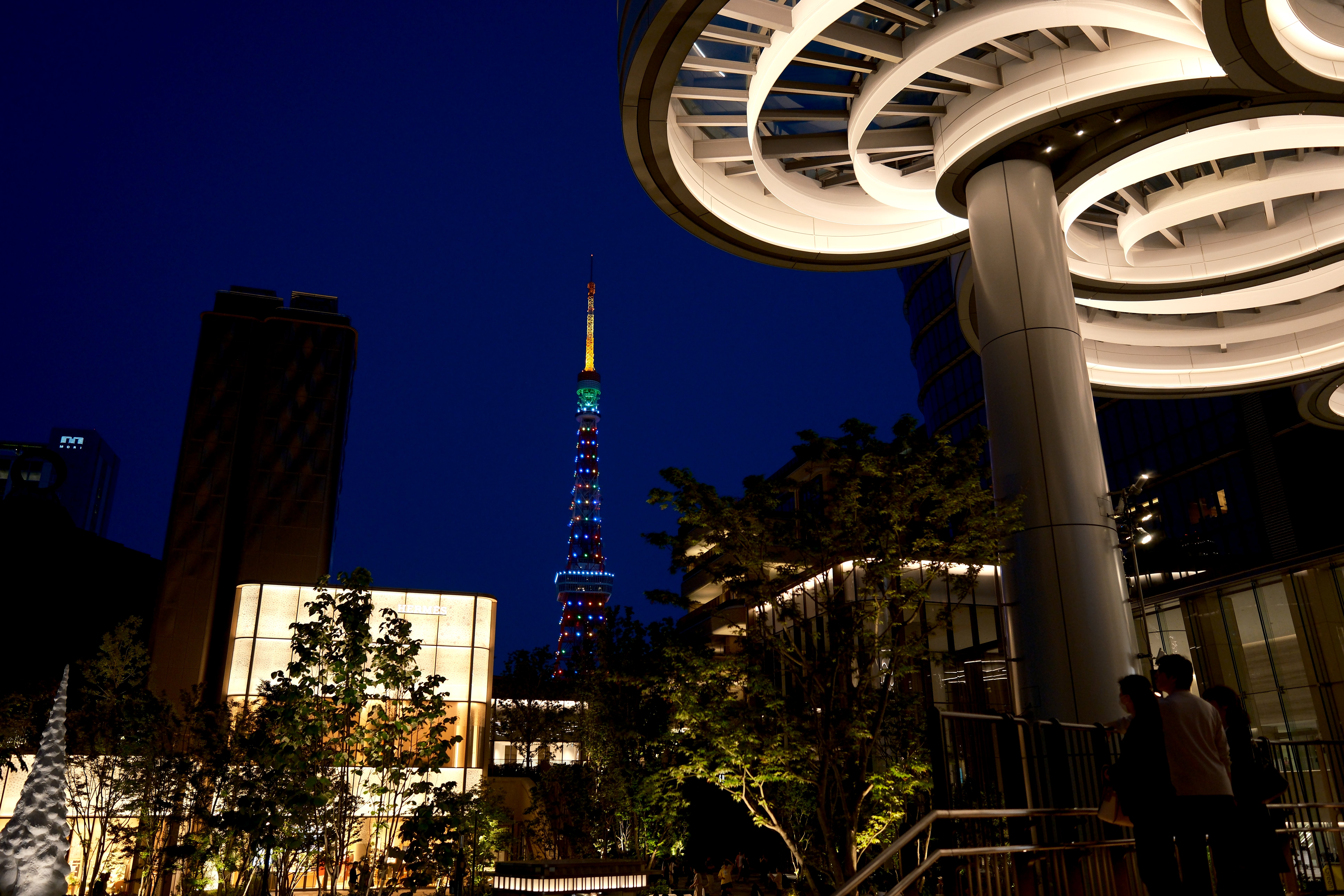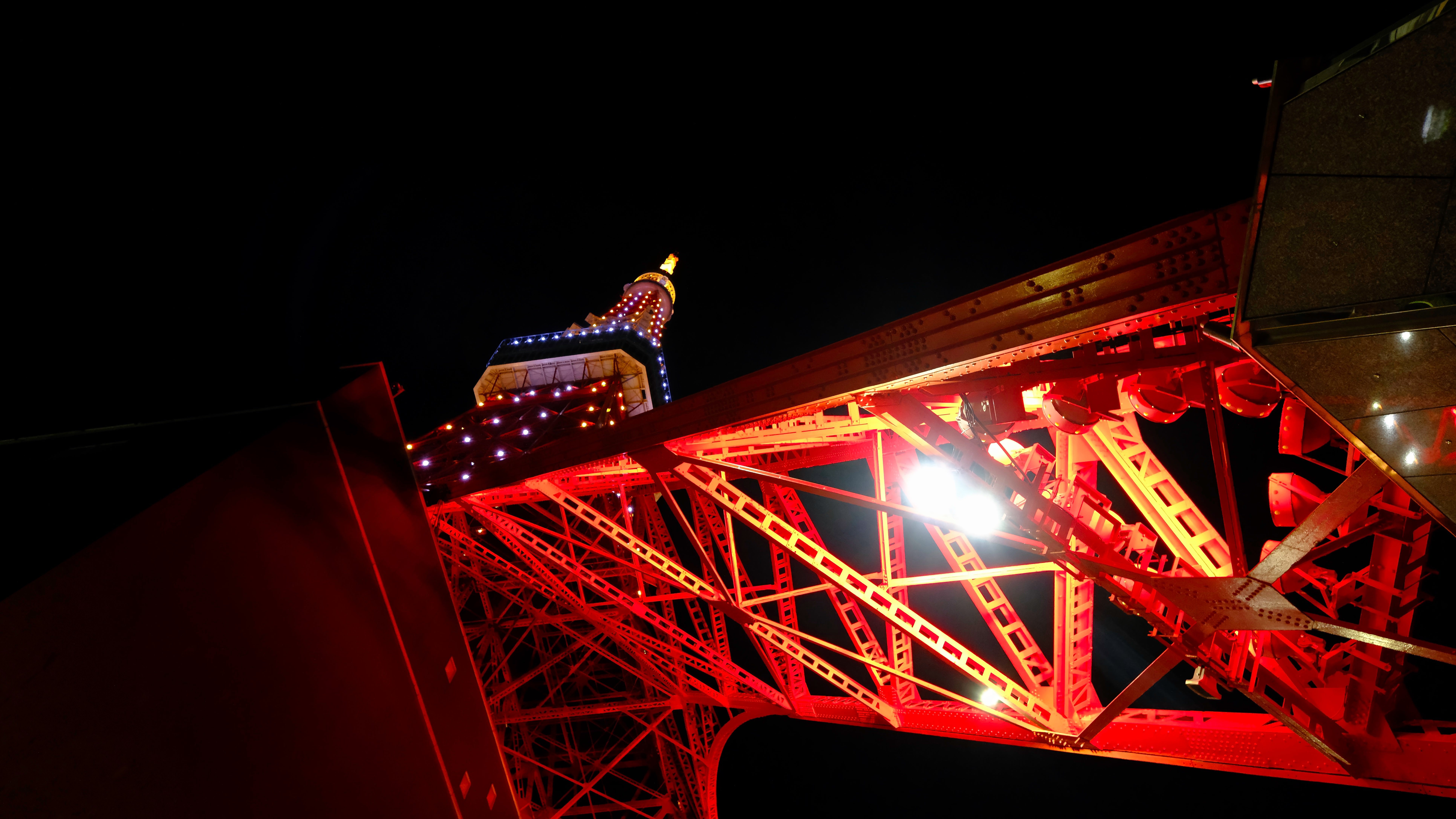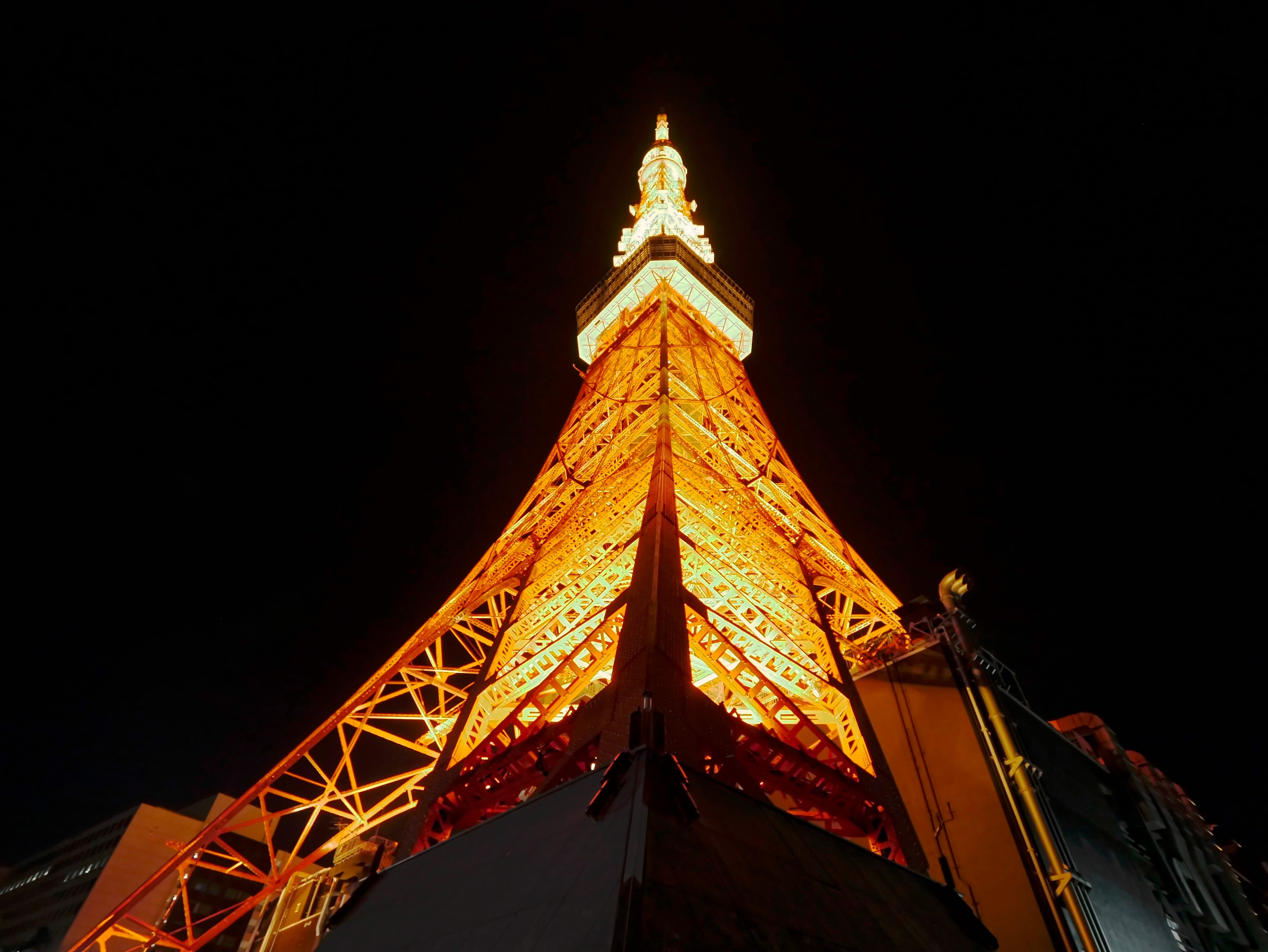 東京タワーを鉄骨土台の足元外側から見上げたもの