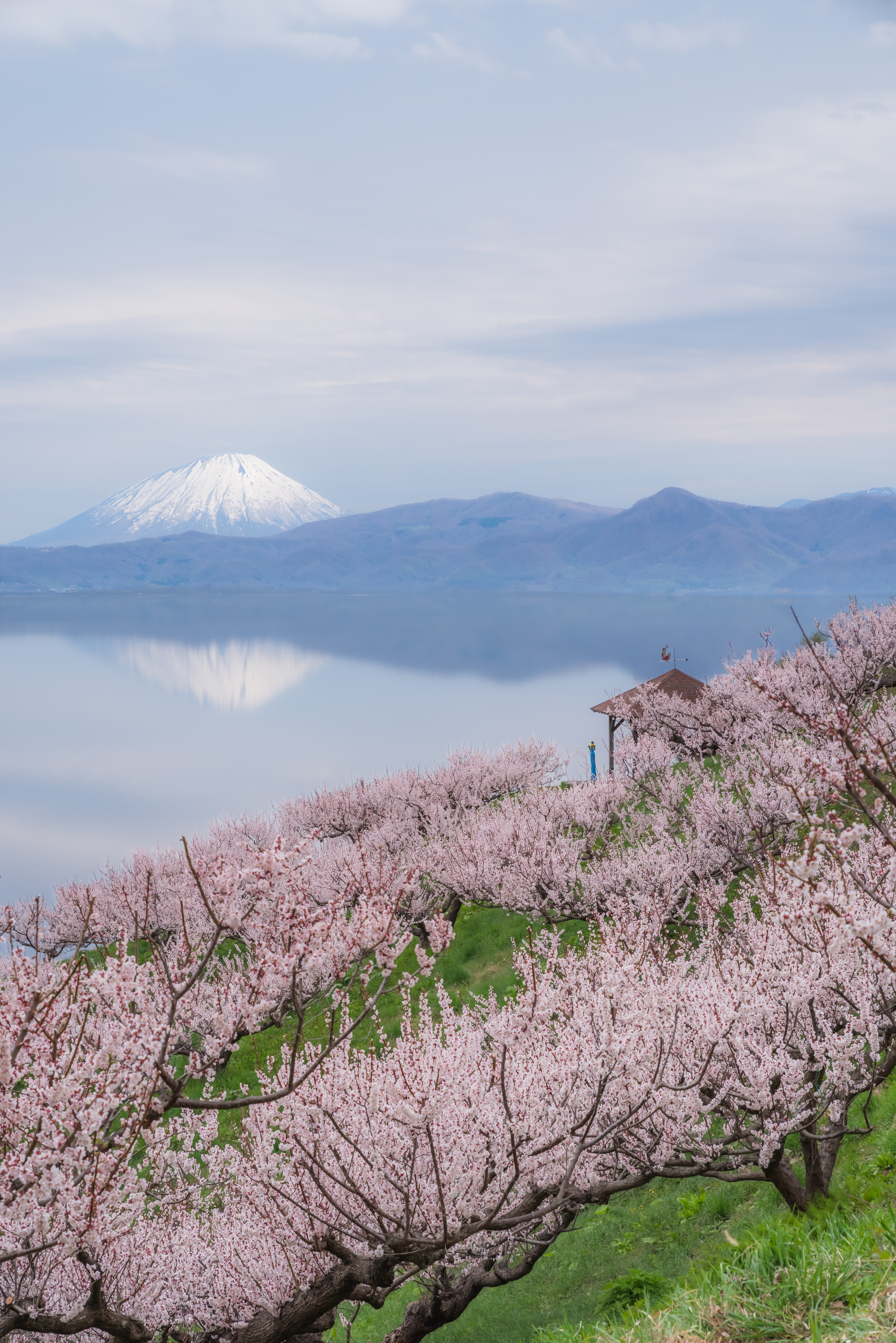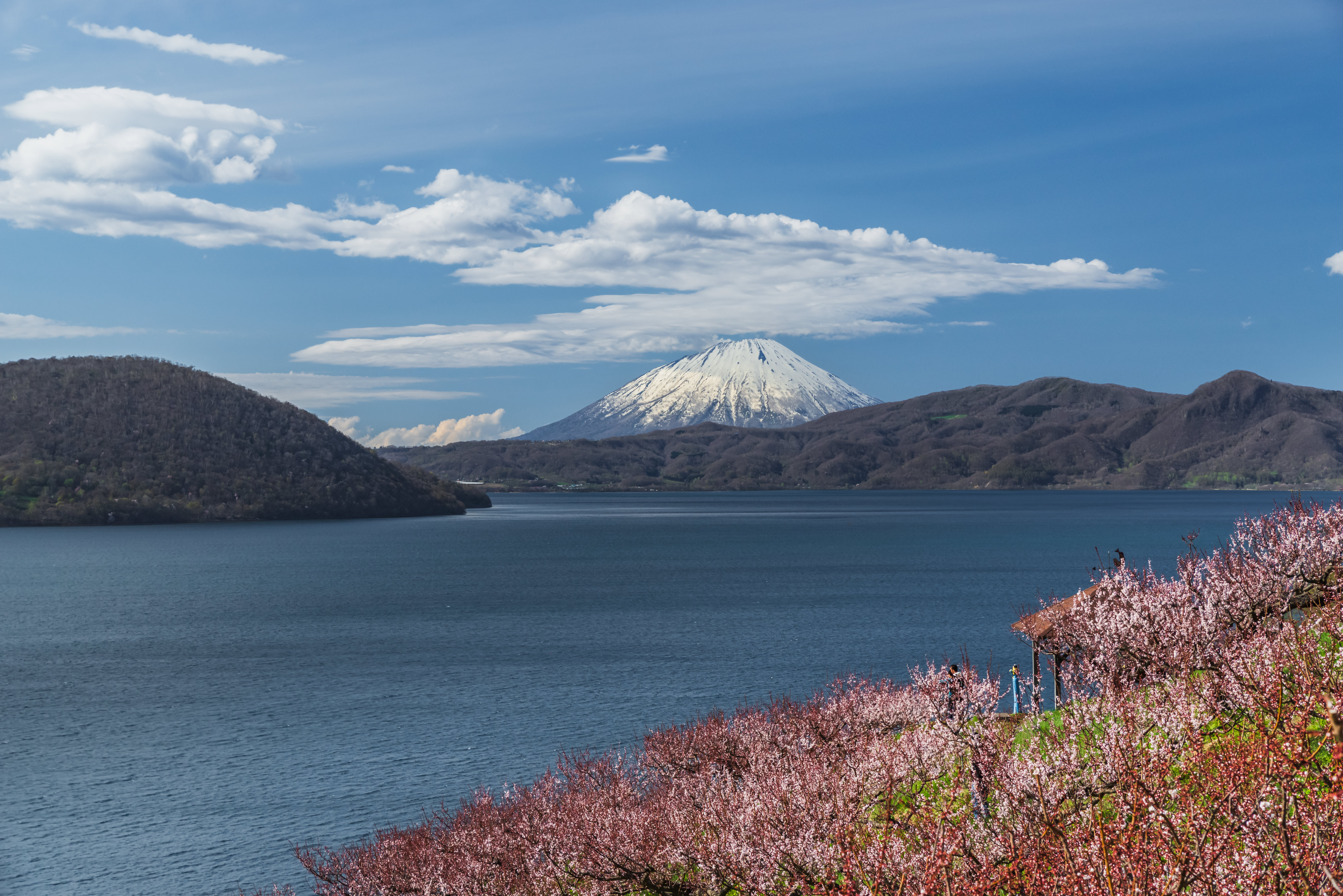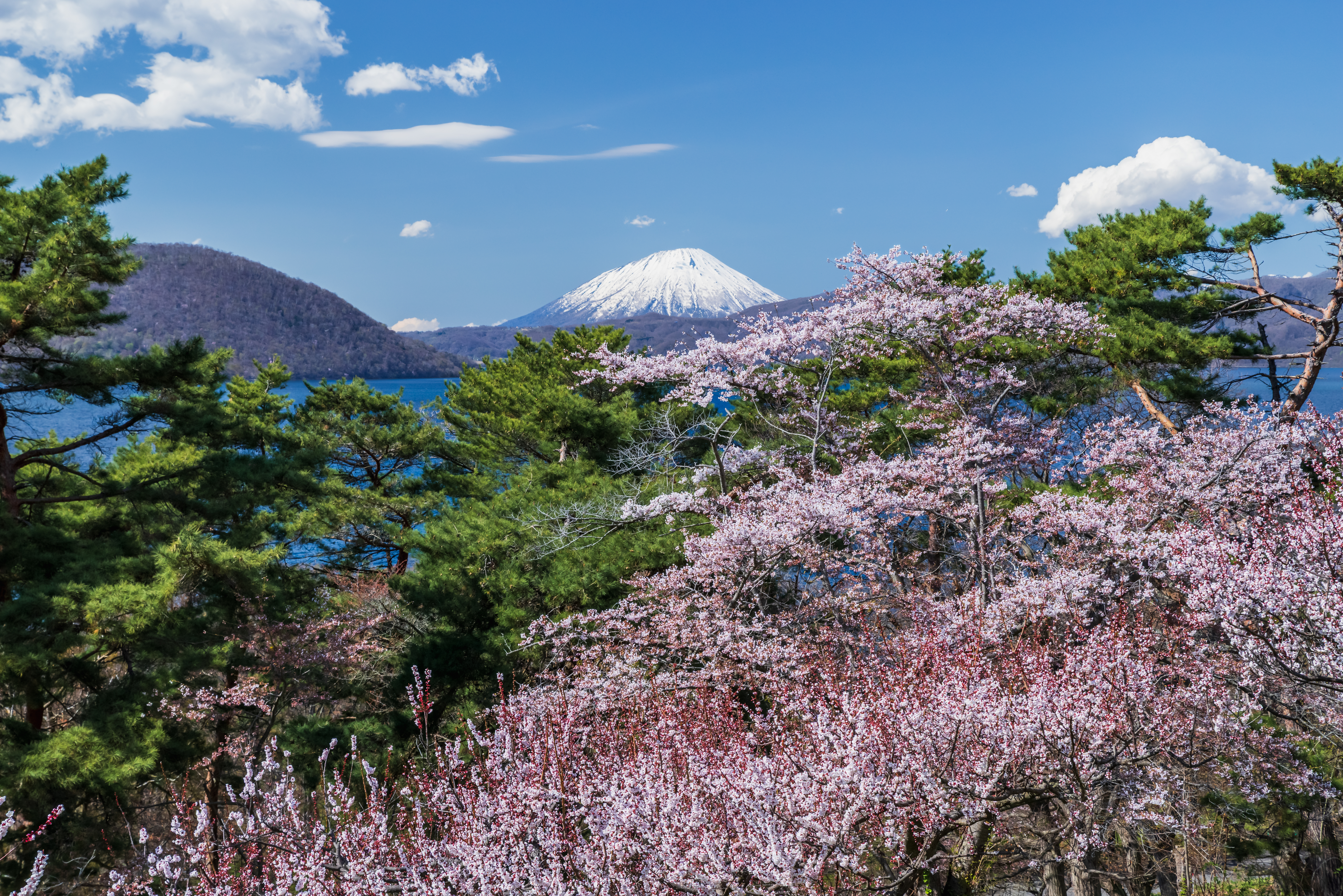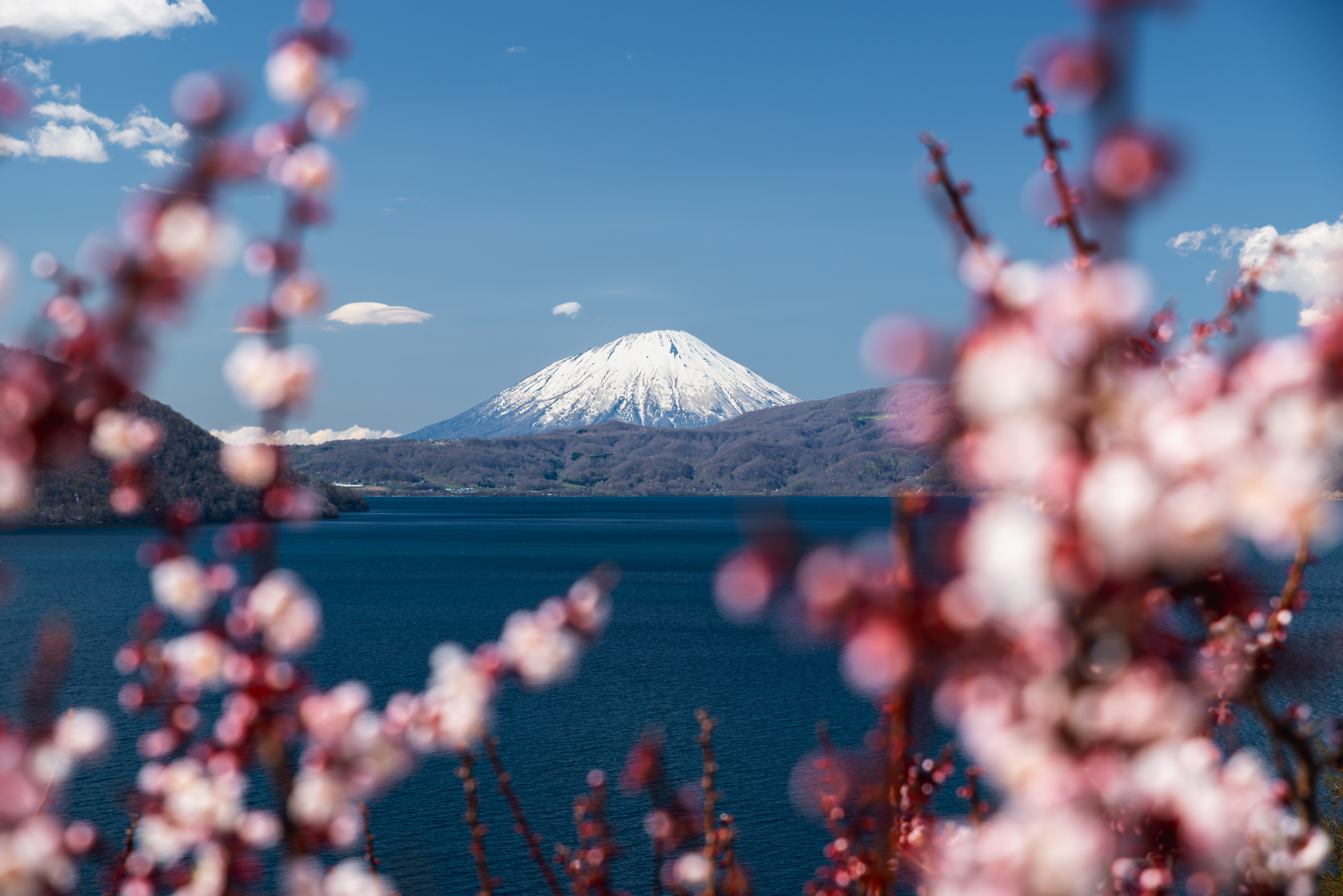 2025年の桜がようやく開花した洞爺湖畔です。