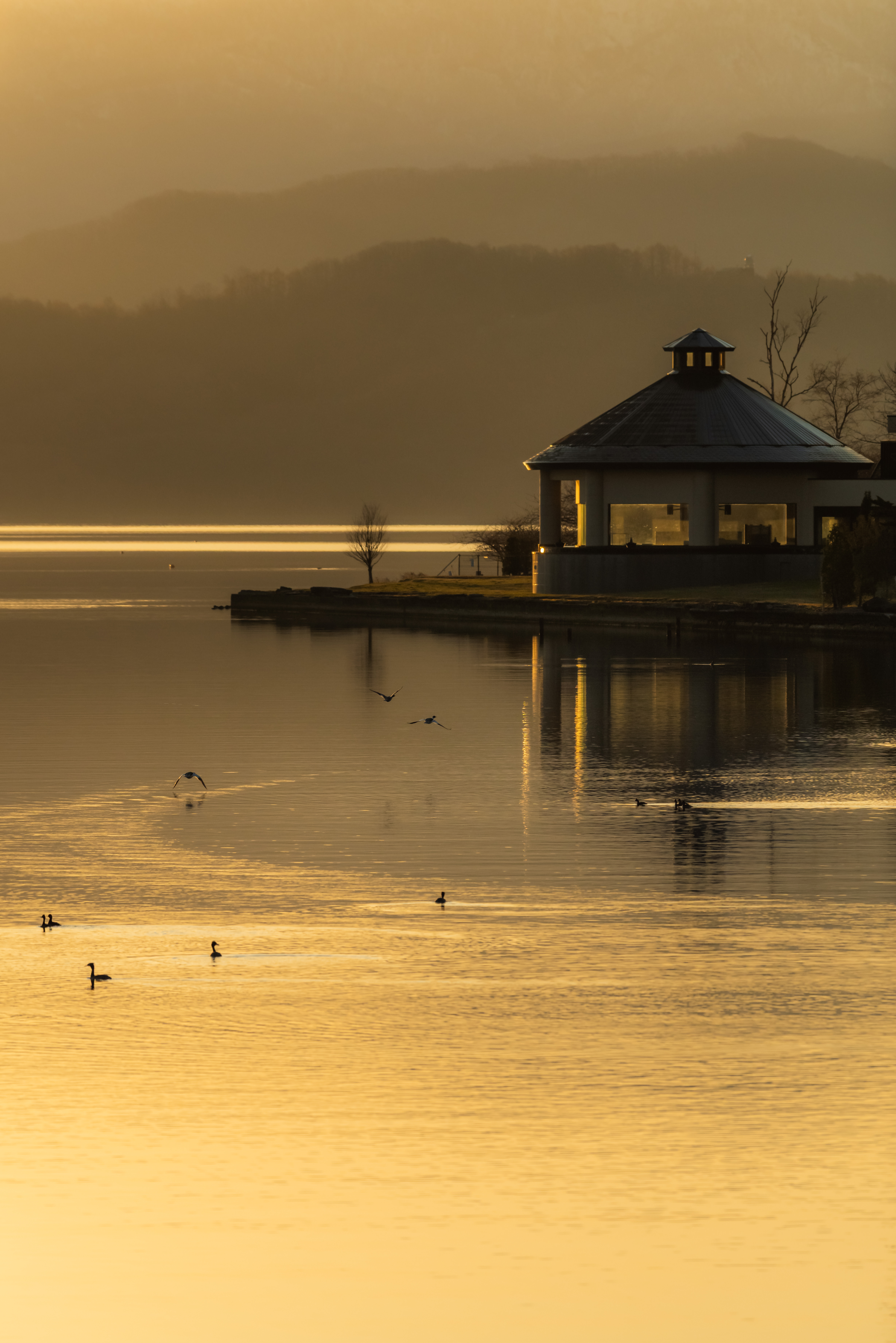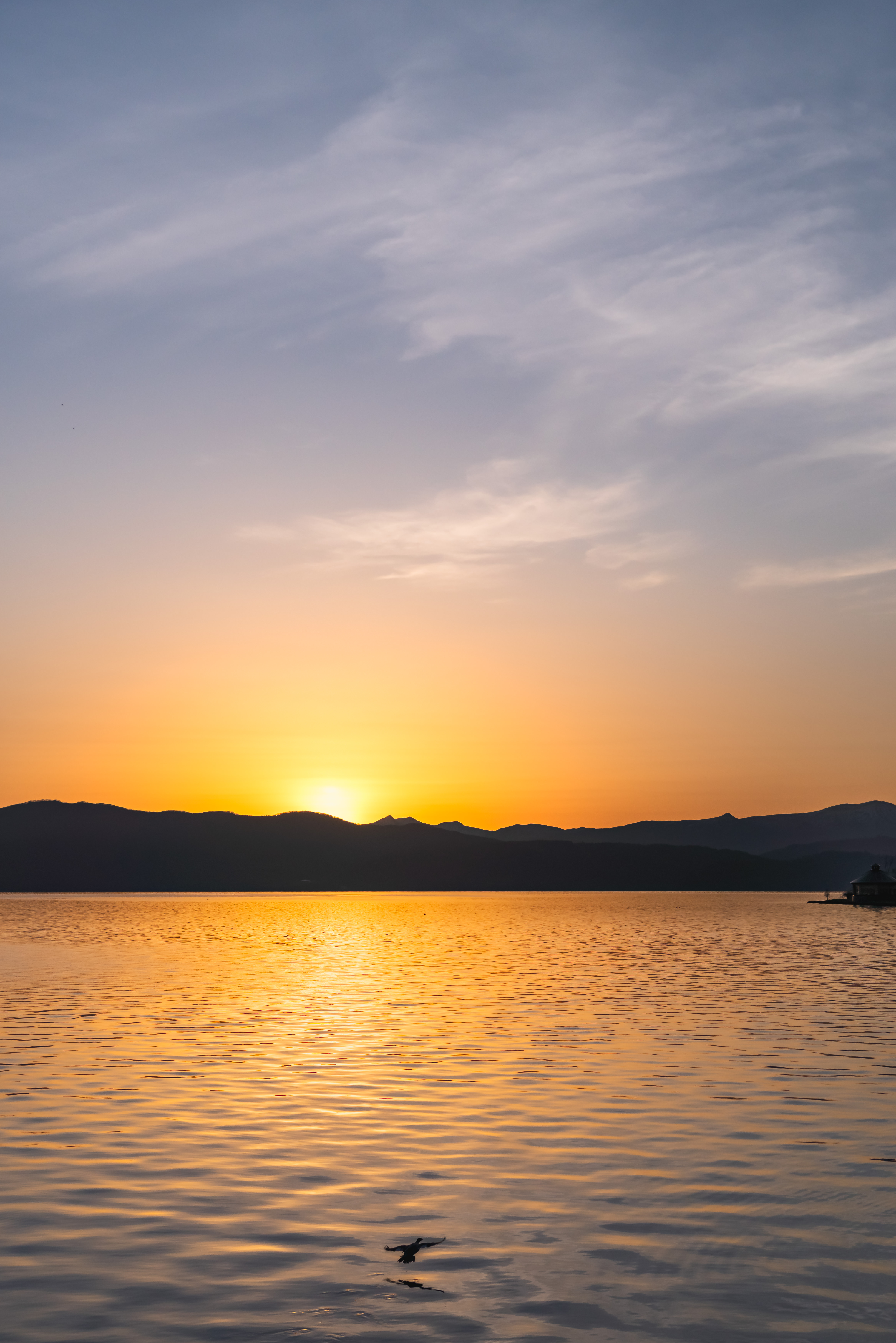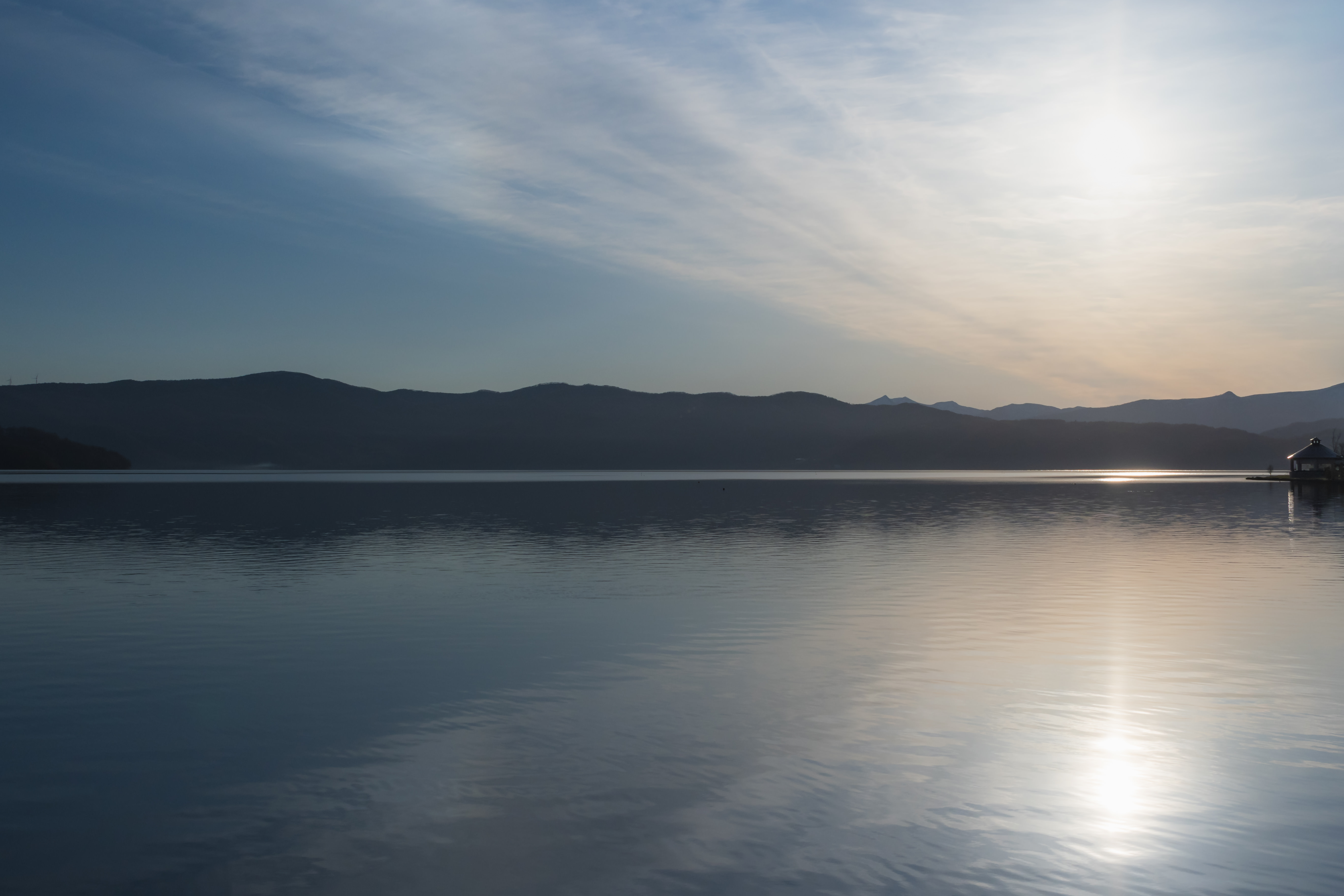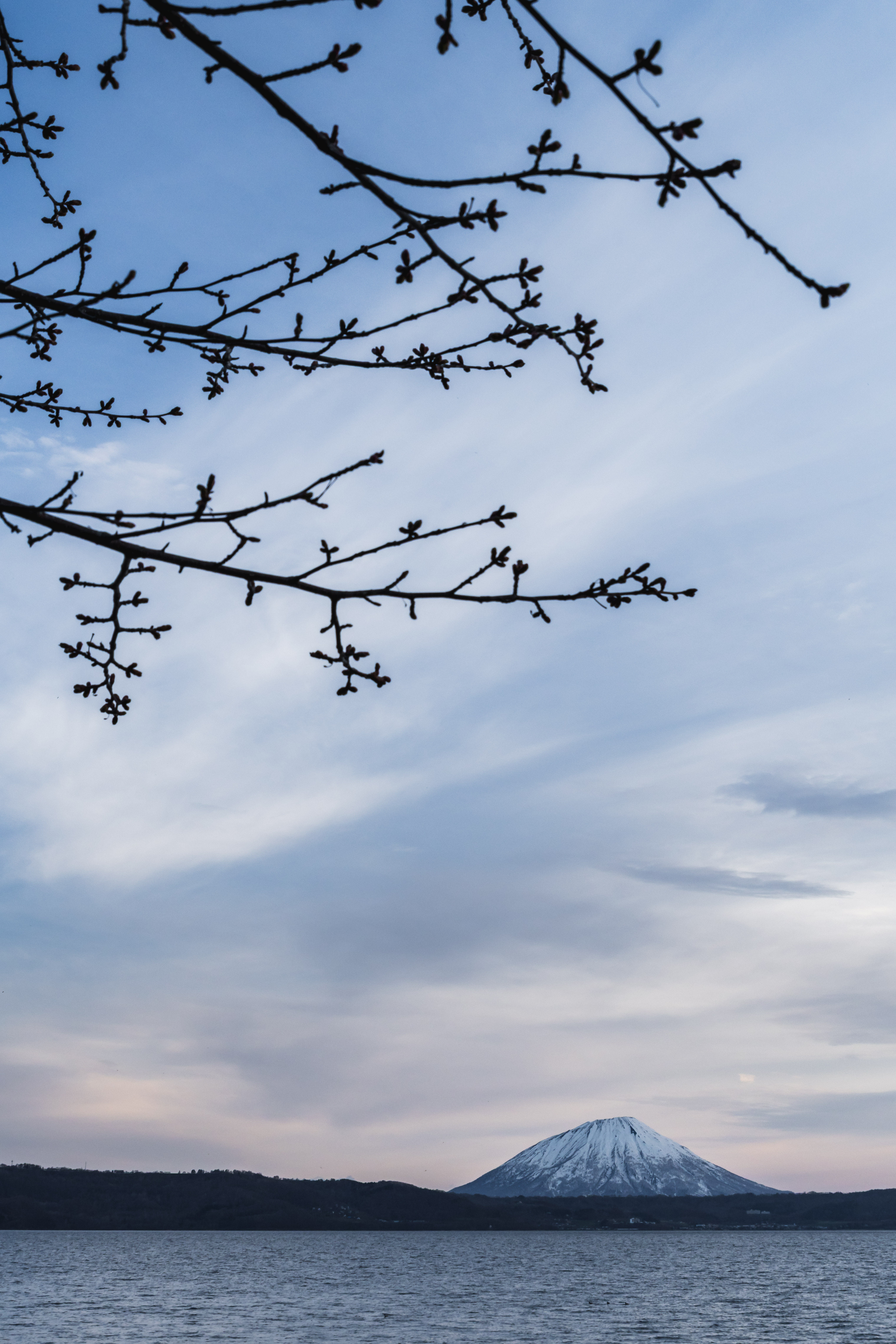 2025年の桜がようやく開花した洞爺湖畔です。