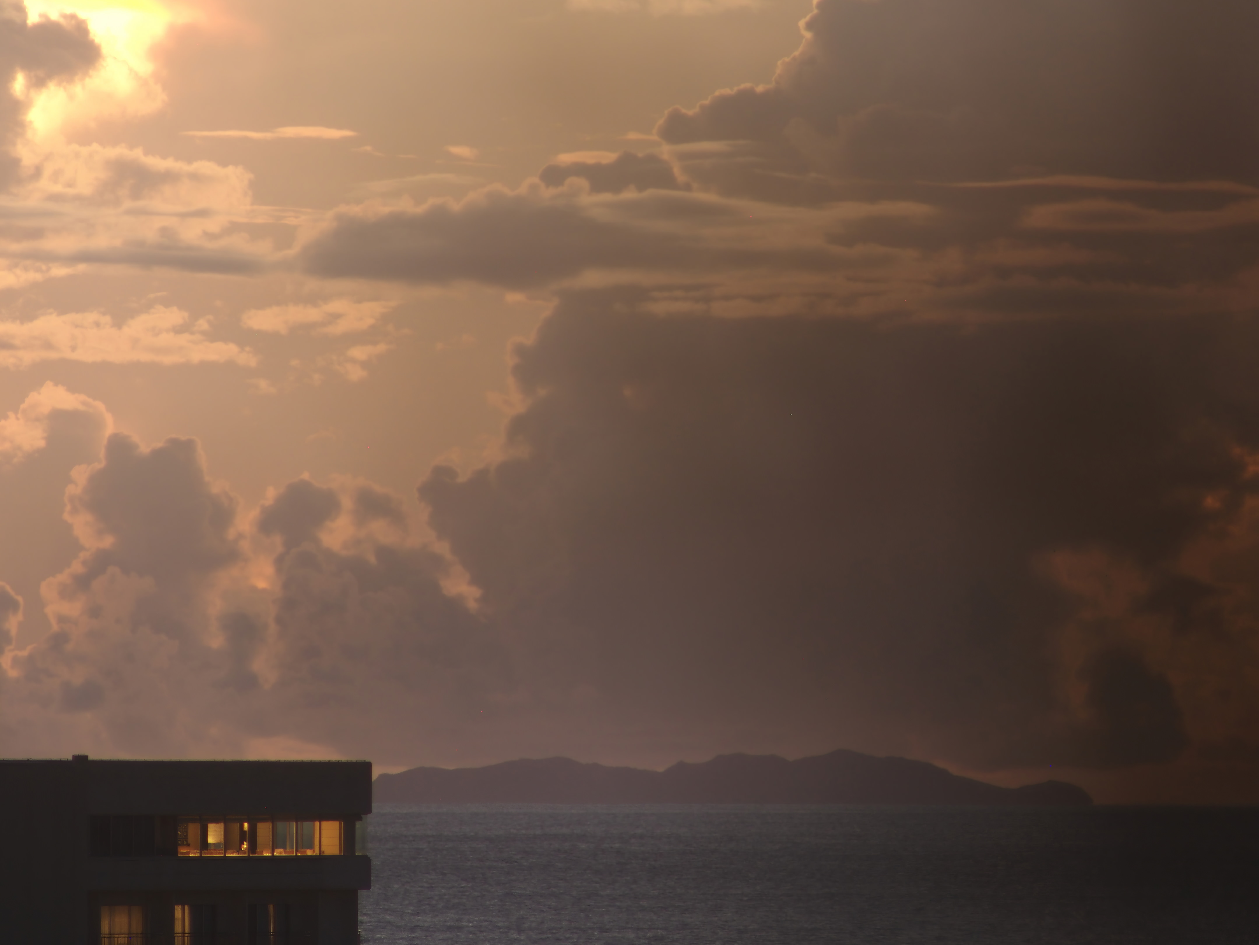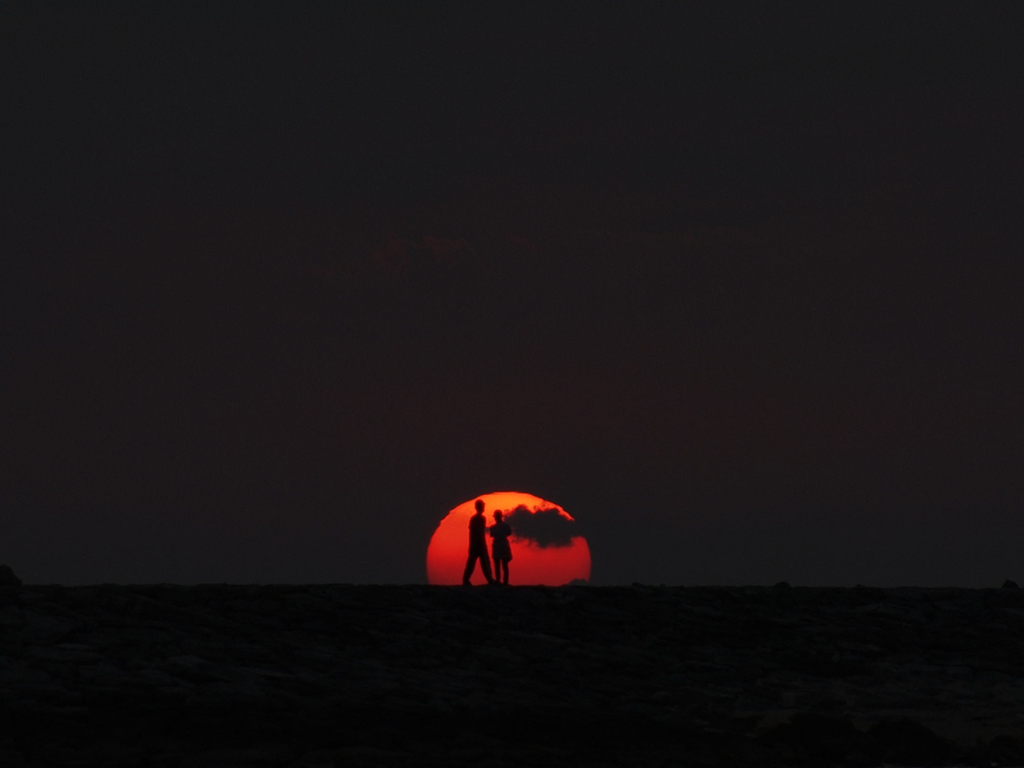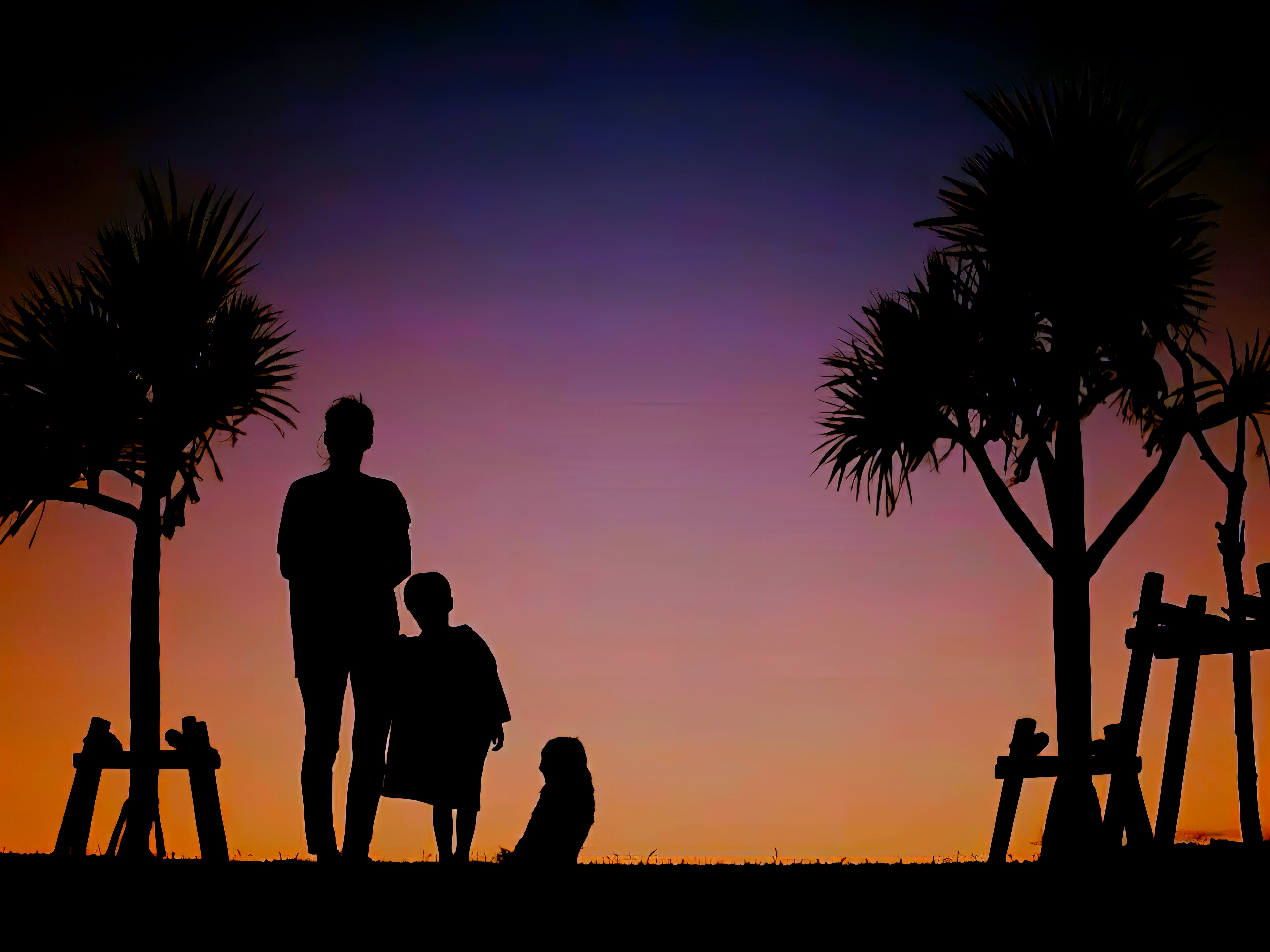 大勢の人が夕涼みに来ていましたが、南国らしいタコノキをアクセントにローアングルで他の人が映り込まない構図にしました。