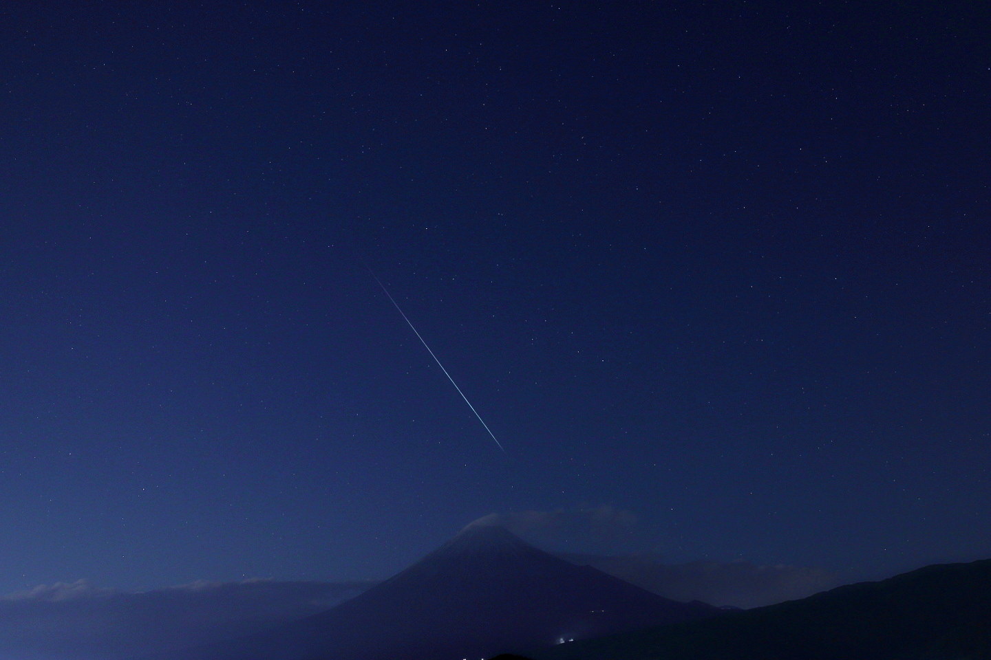ふたご座流星群をインターバル撮影したときの約300枚の写真を、比較明合成ツールでまとめました。
