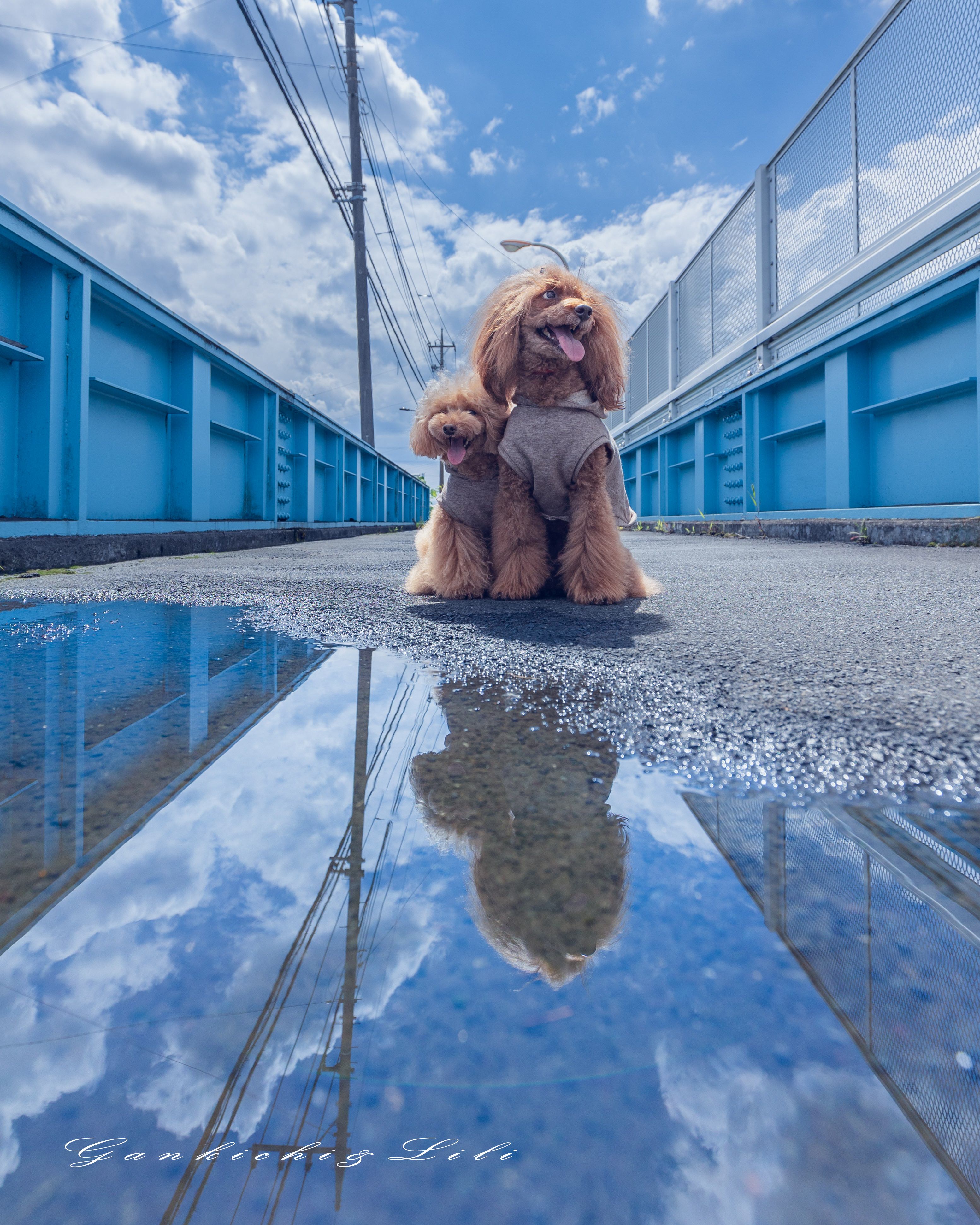 お散歩中に大きな水溜まりを見つけてリフレクションを狙って撮ってみました