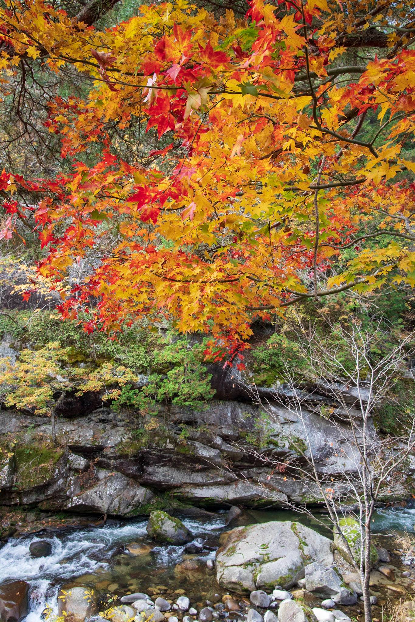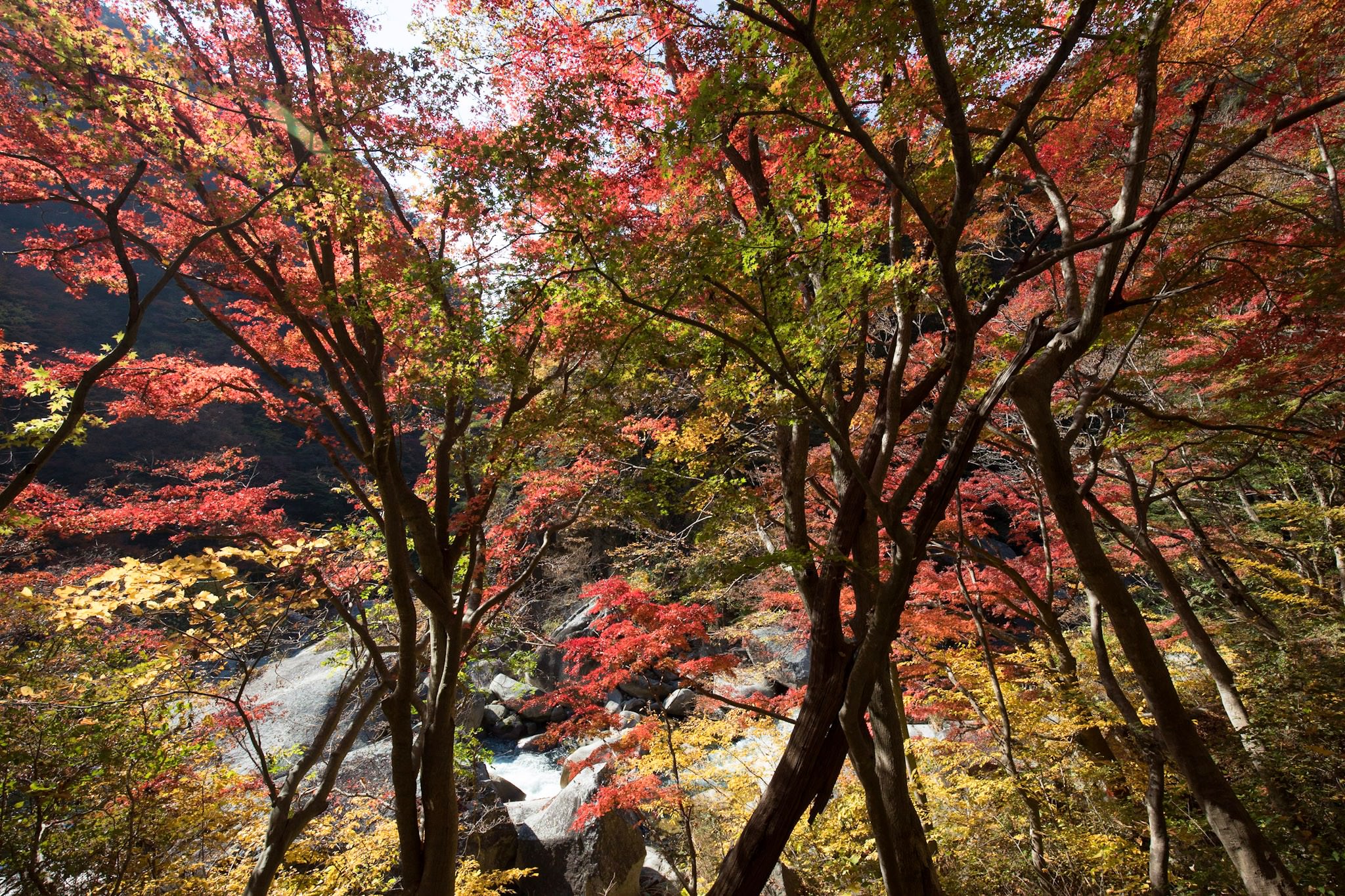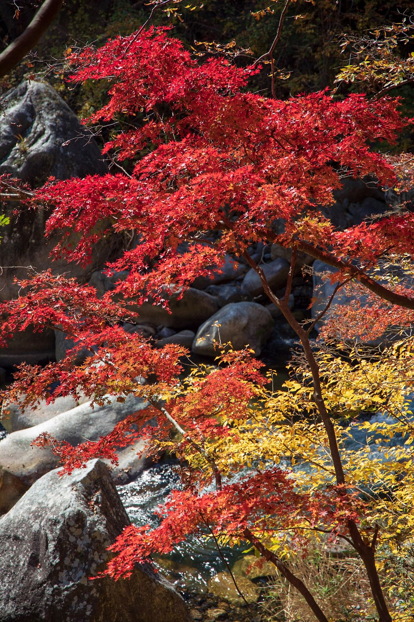 雨上がりの香嵐渓の紅葉ライトアップ