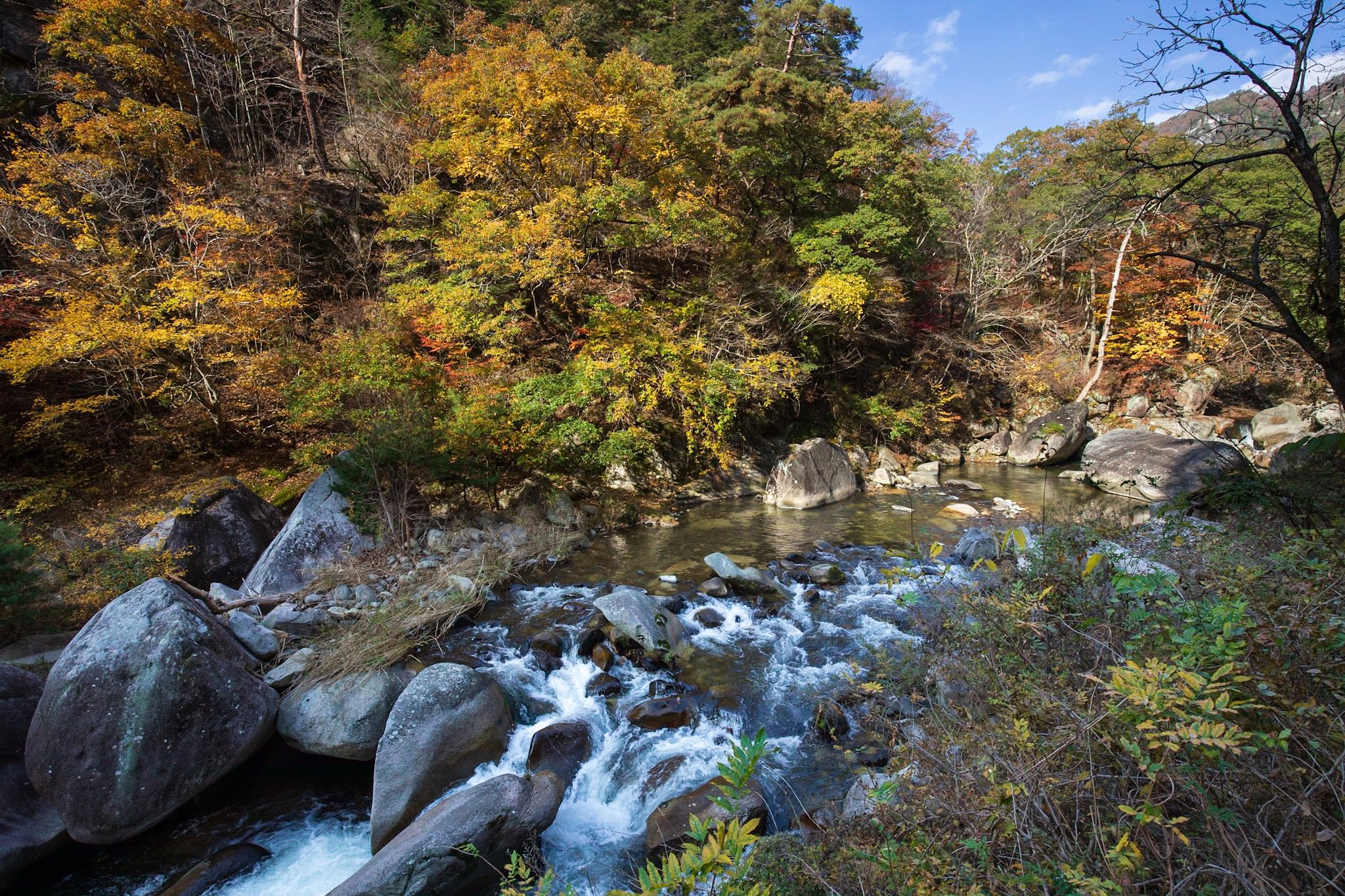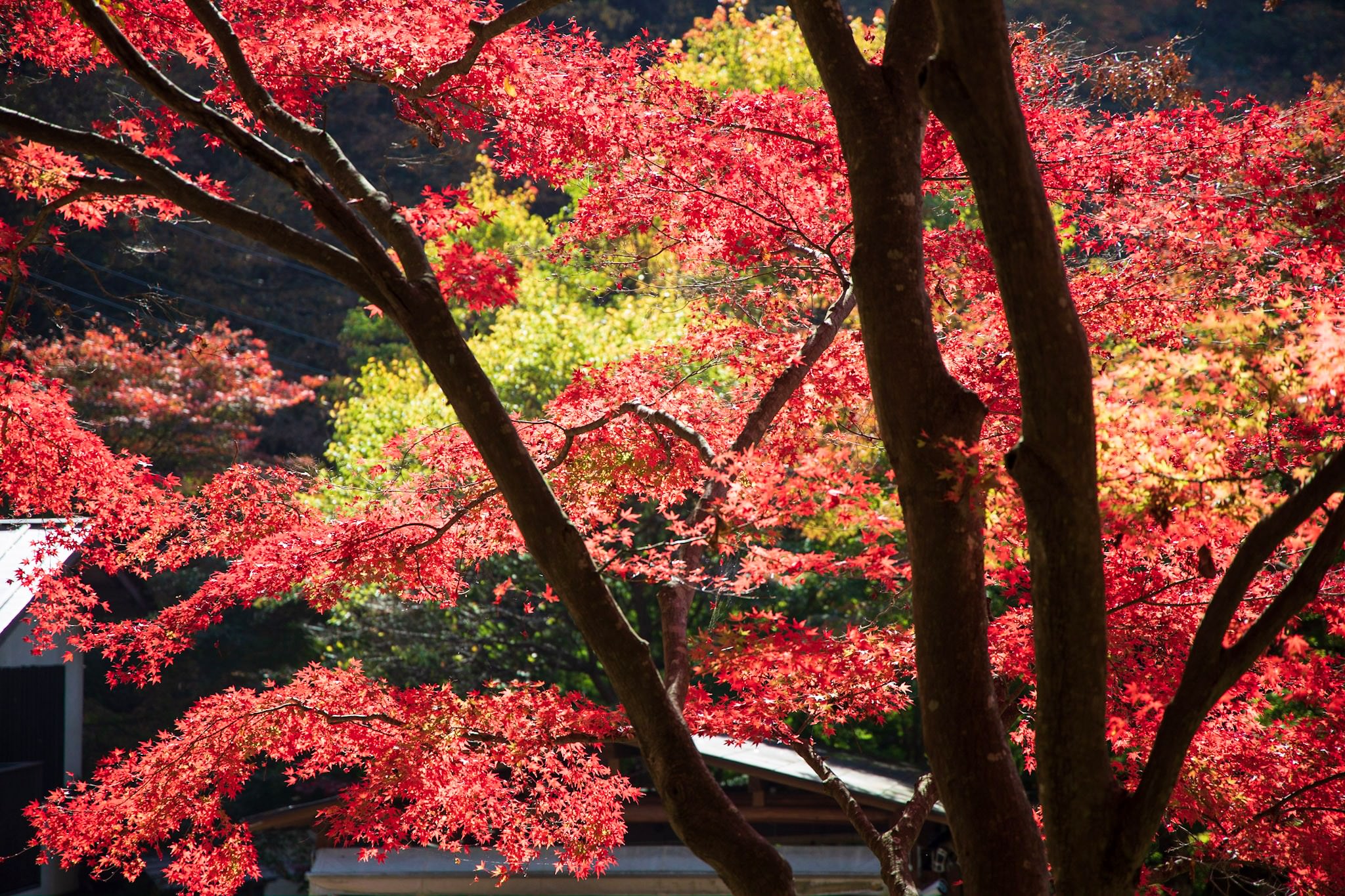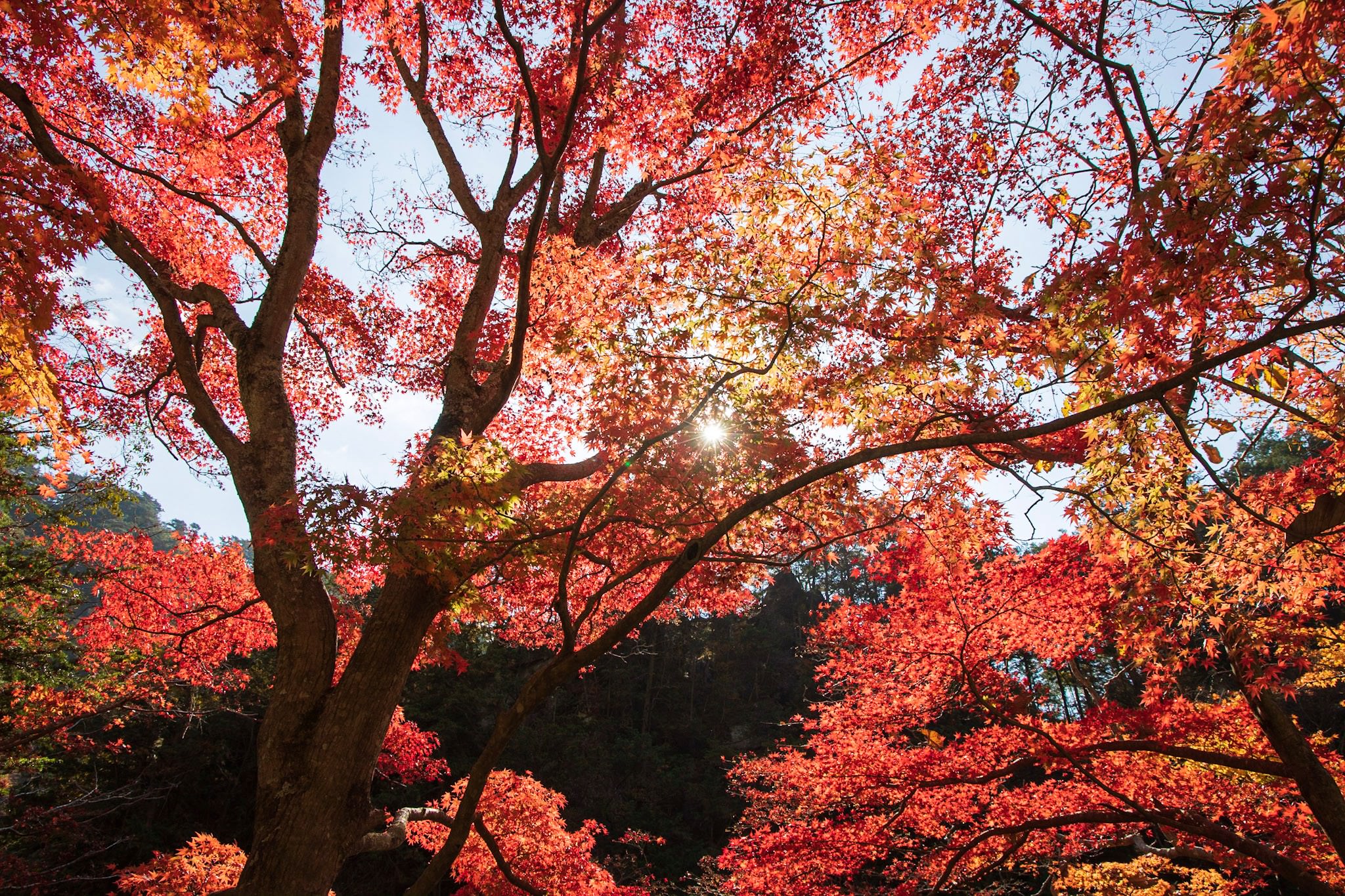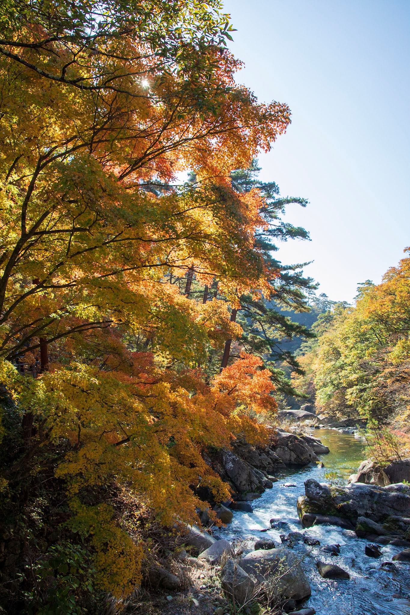 雨上がりの香嵐渓の紅葉ライトアップ