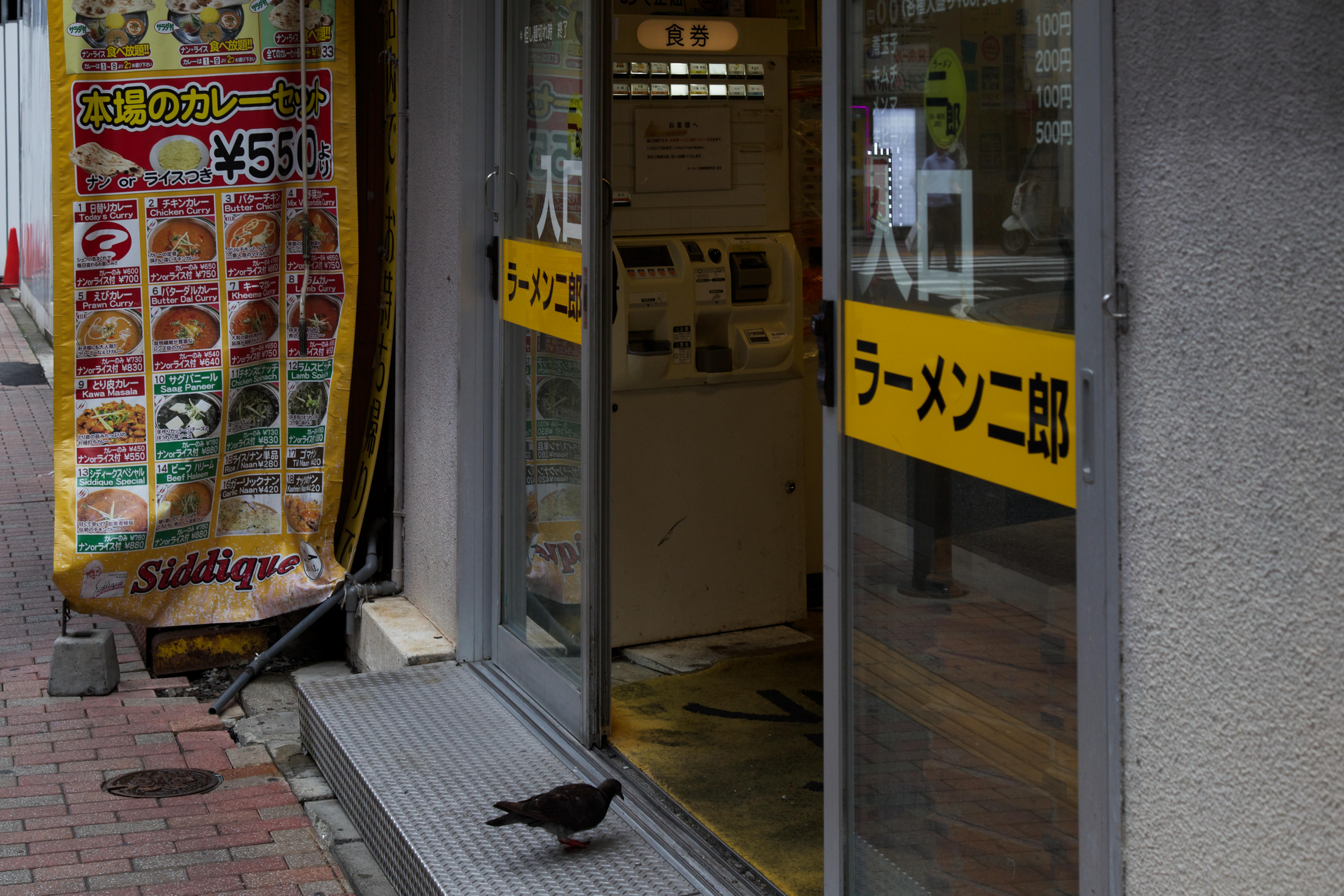 行きつけの二郎に入ろうとした時、先客の鳩胸さんが並んでいました。