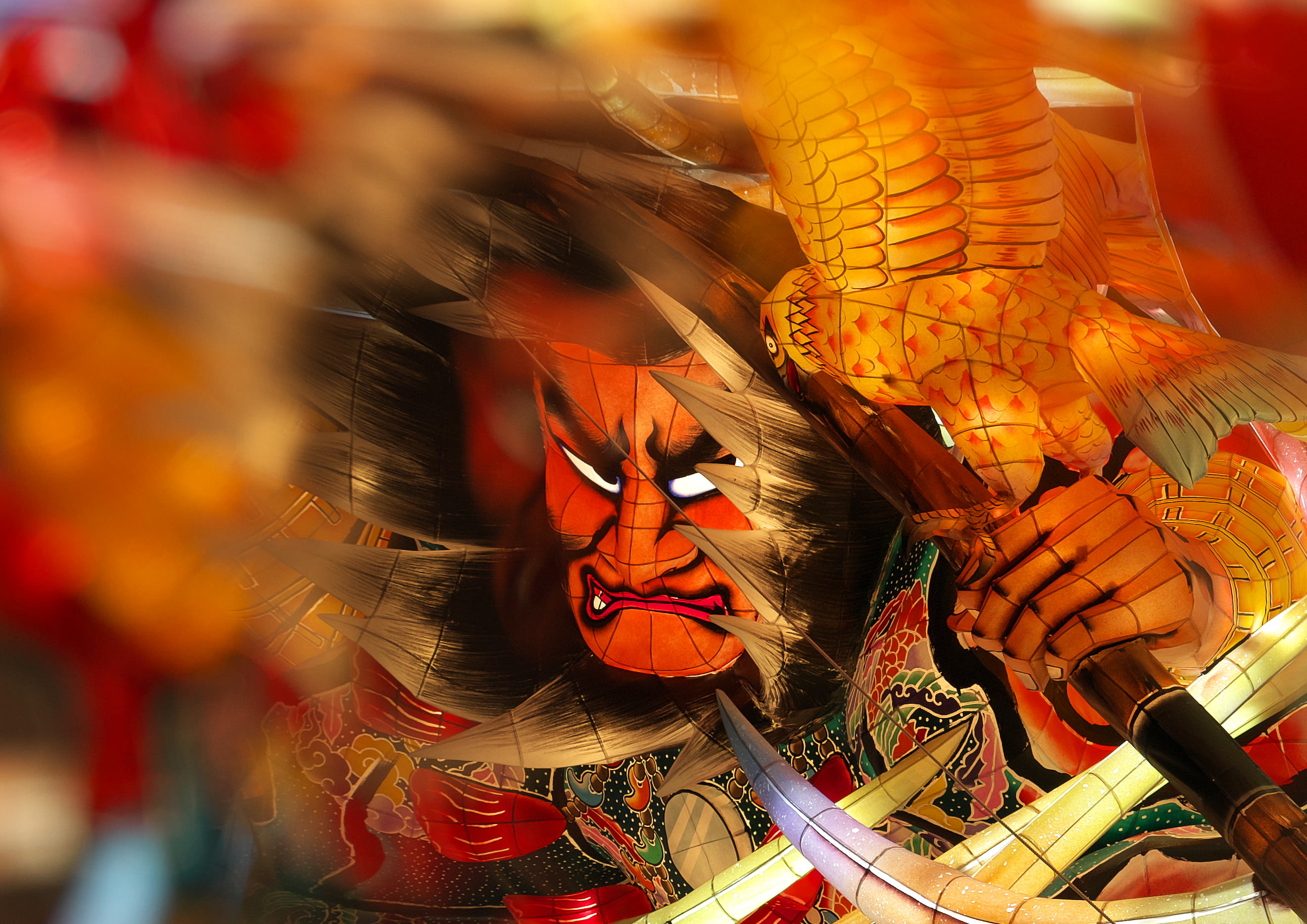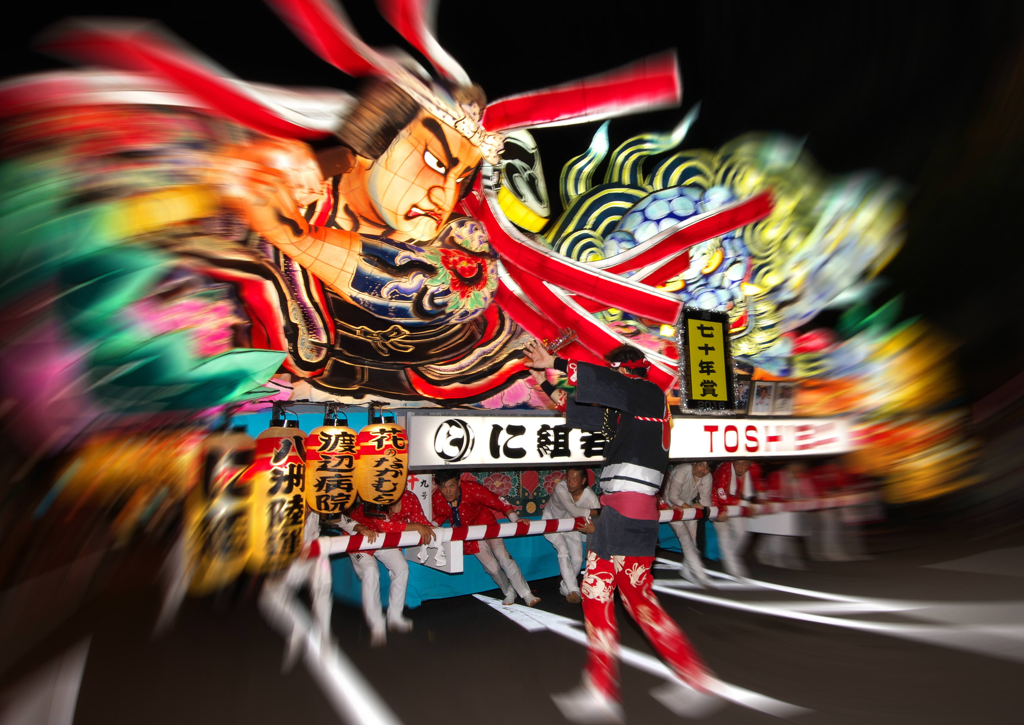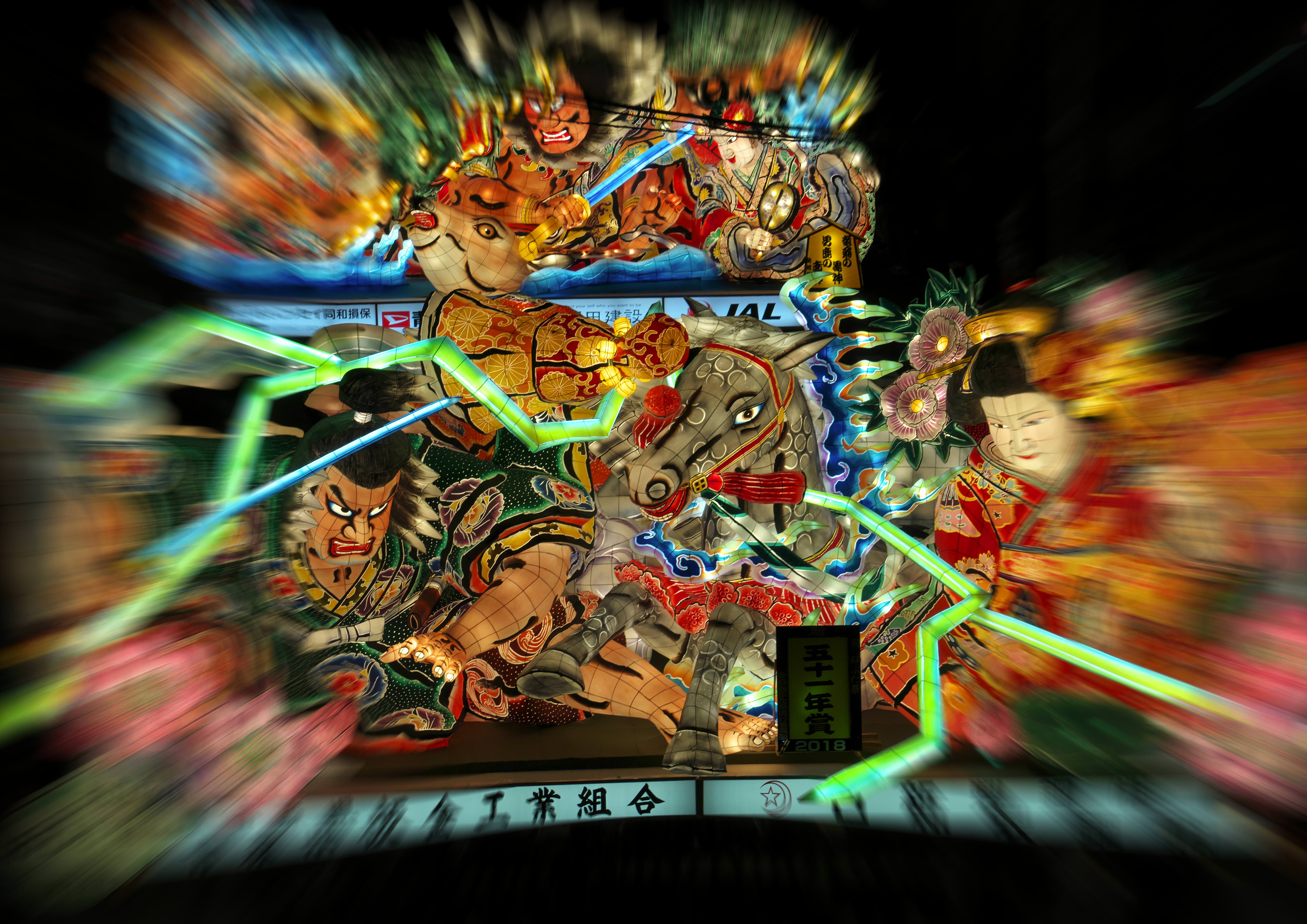 青森ねぶたの山車の進行をコントロールする扇子持ち。