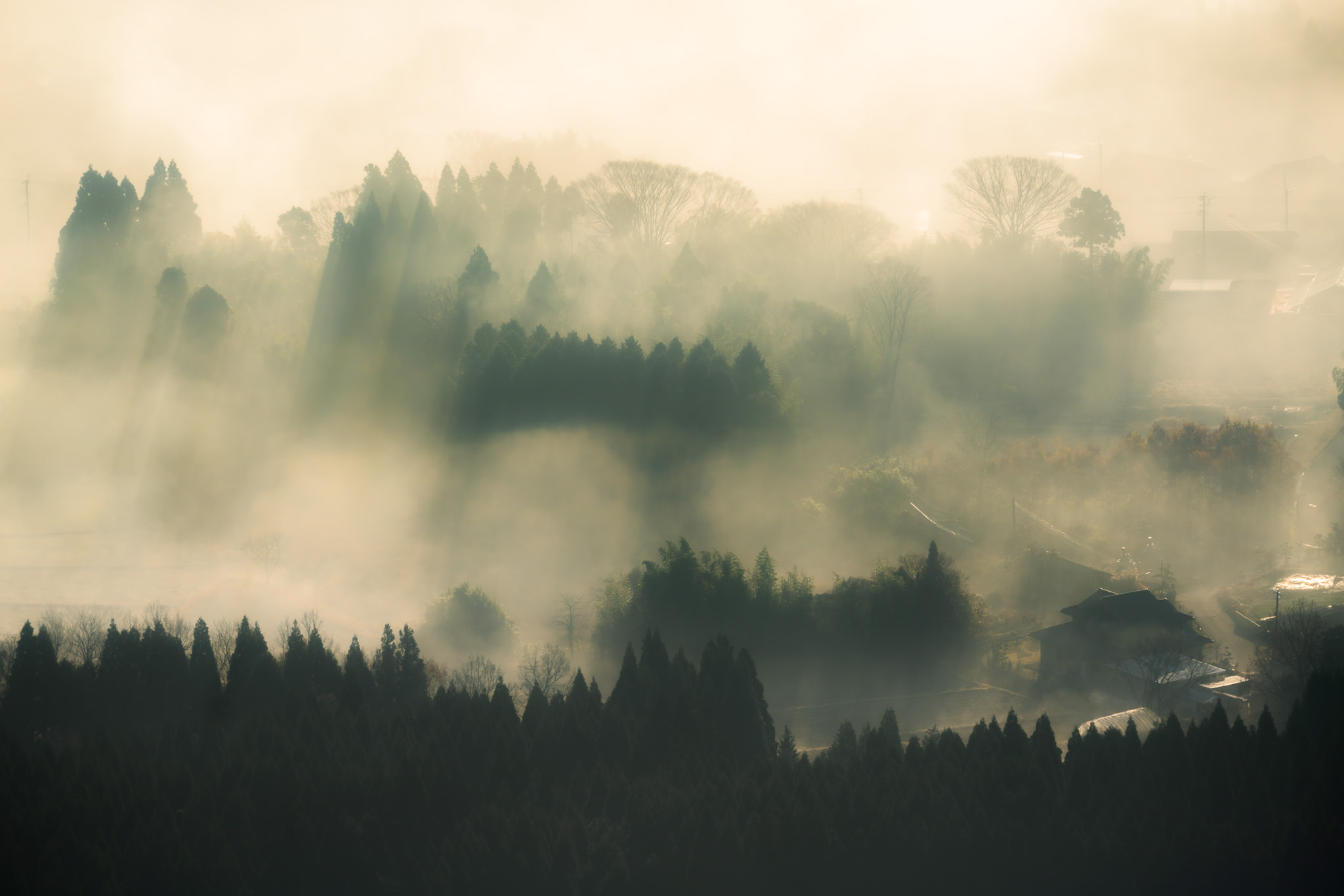 朝の光芒が非日常的な美しさを見せてくれました。