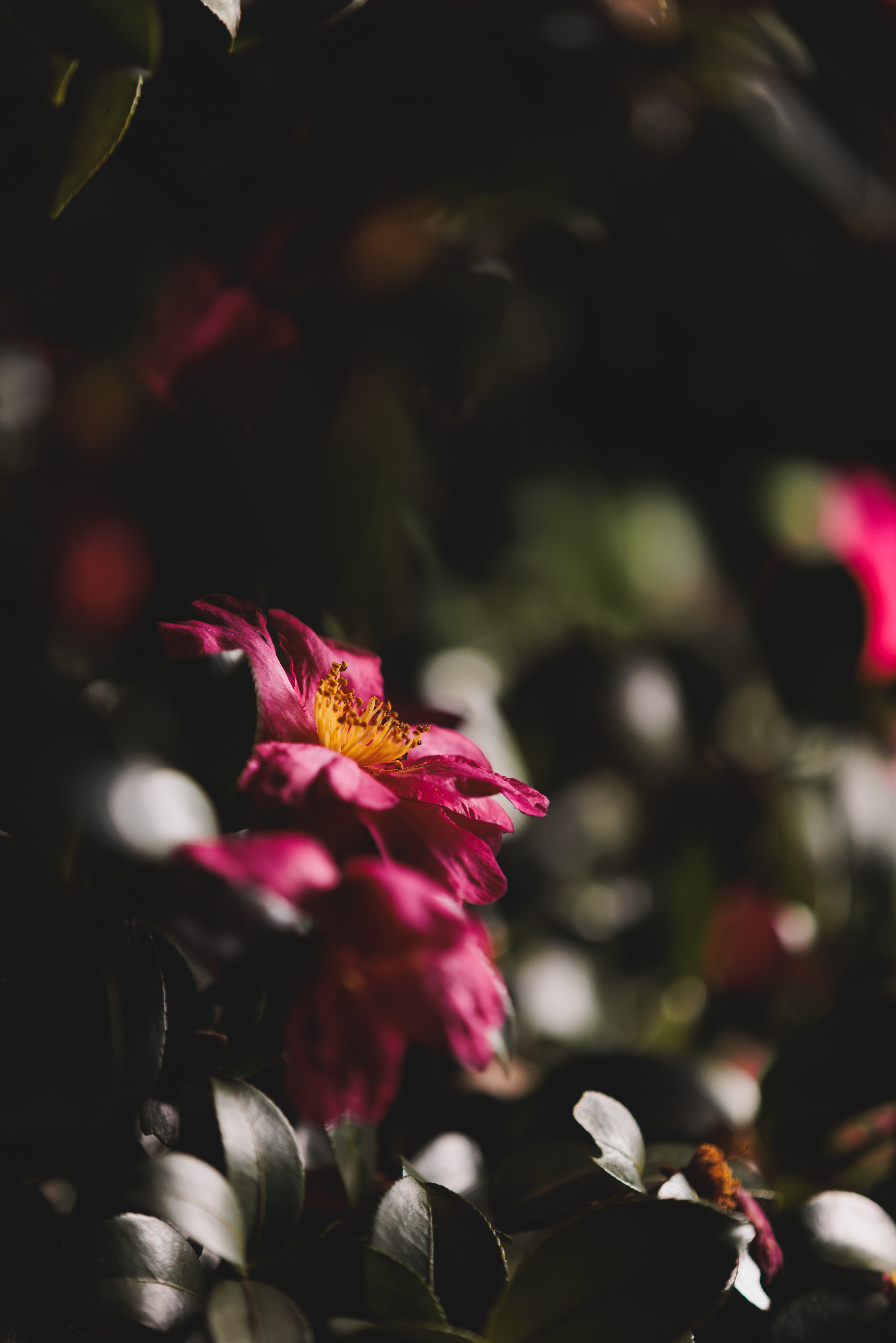 夜にひっそりと咲く山茶花