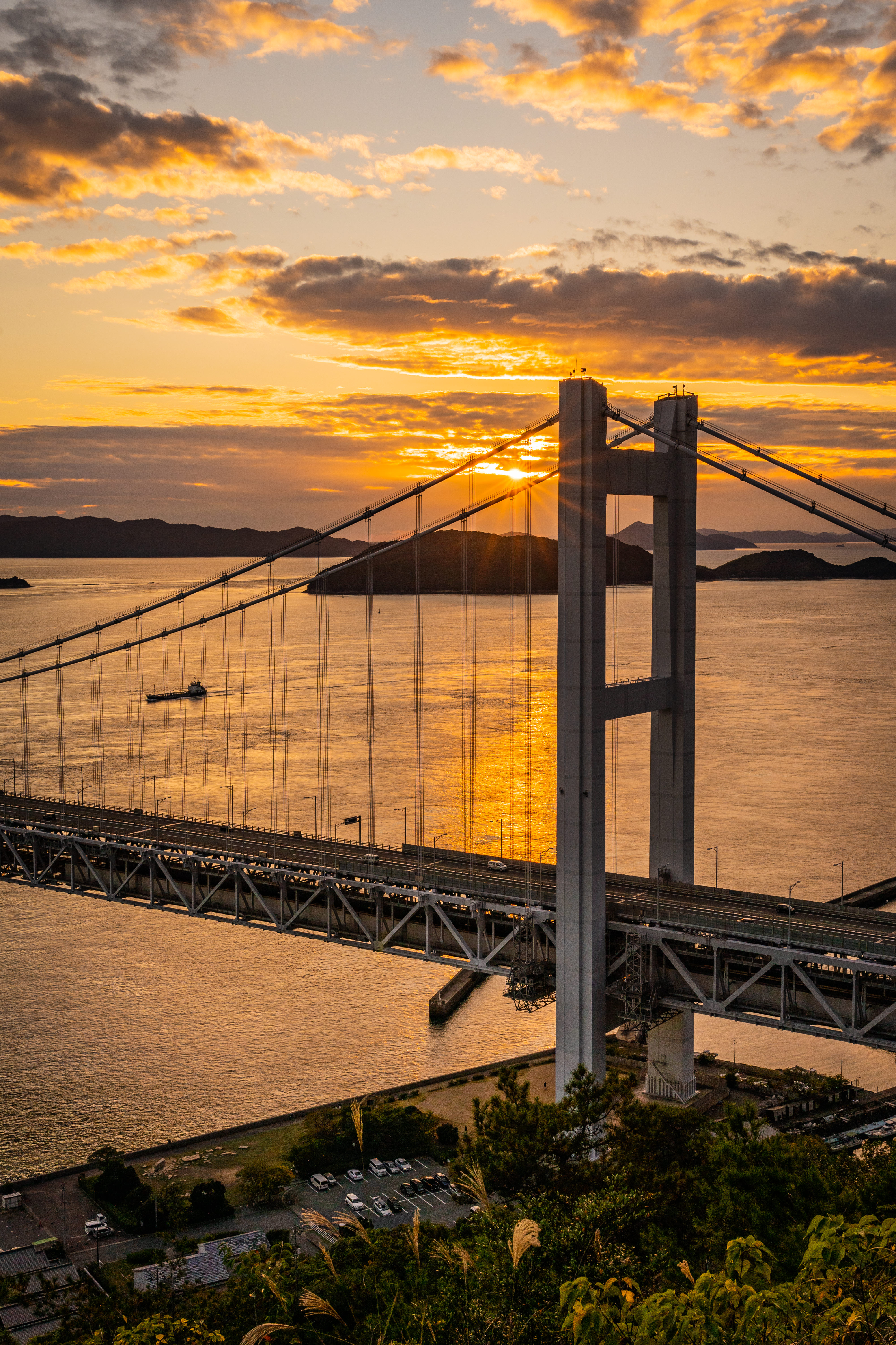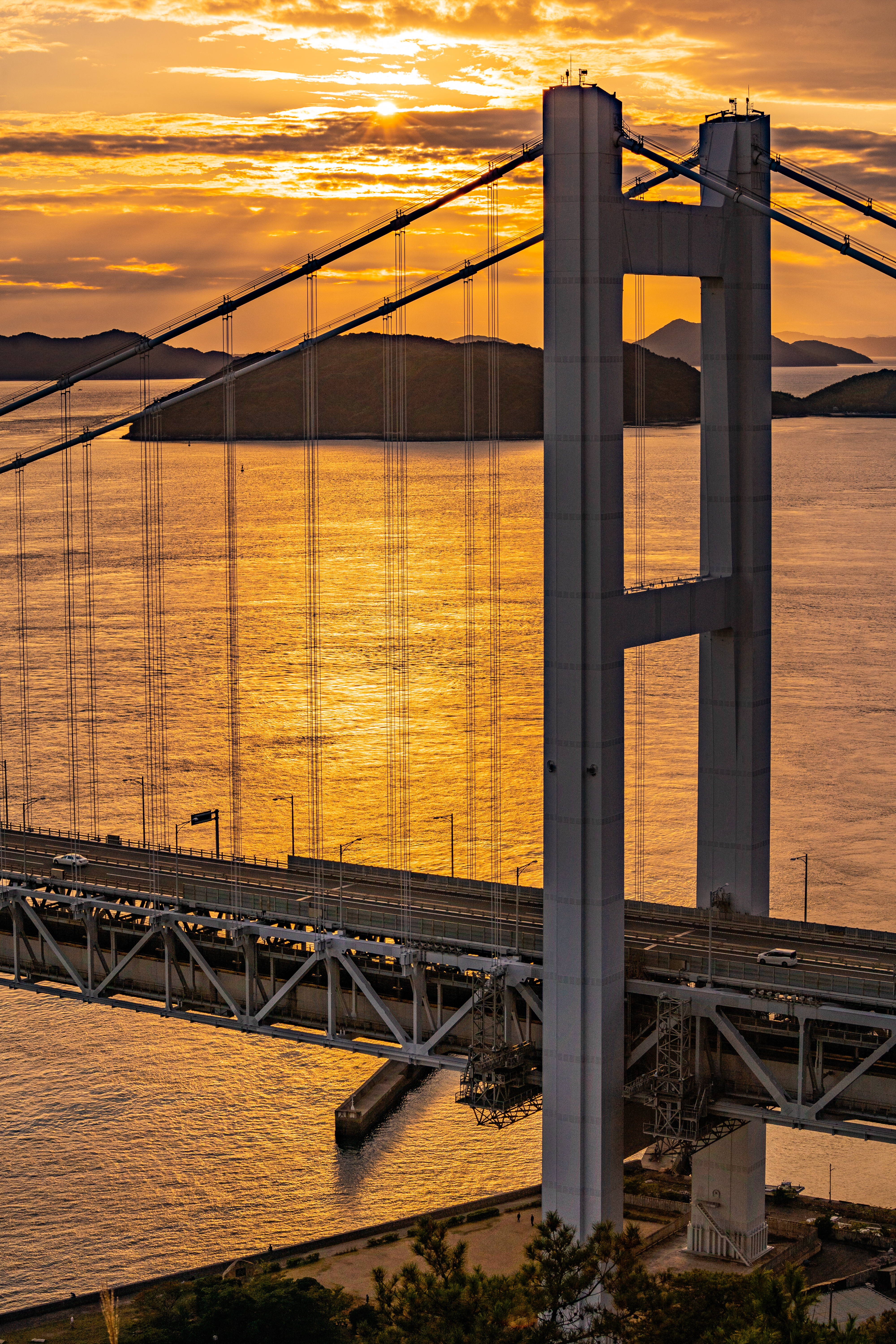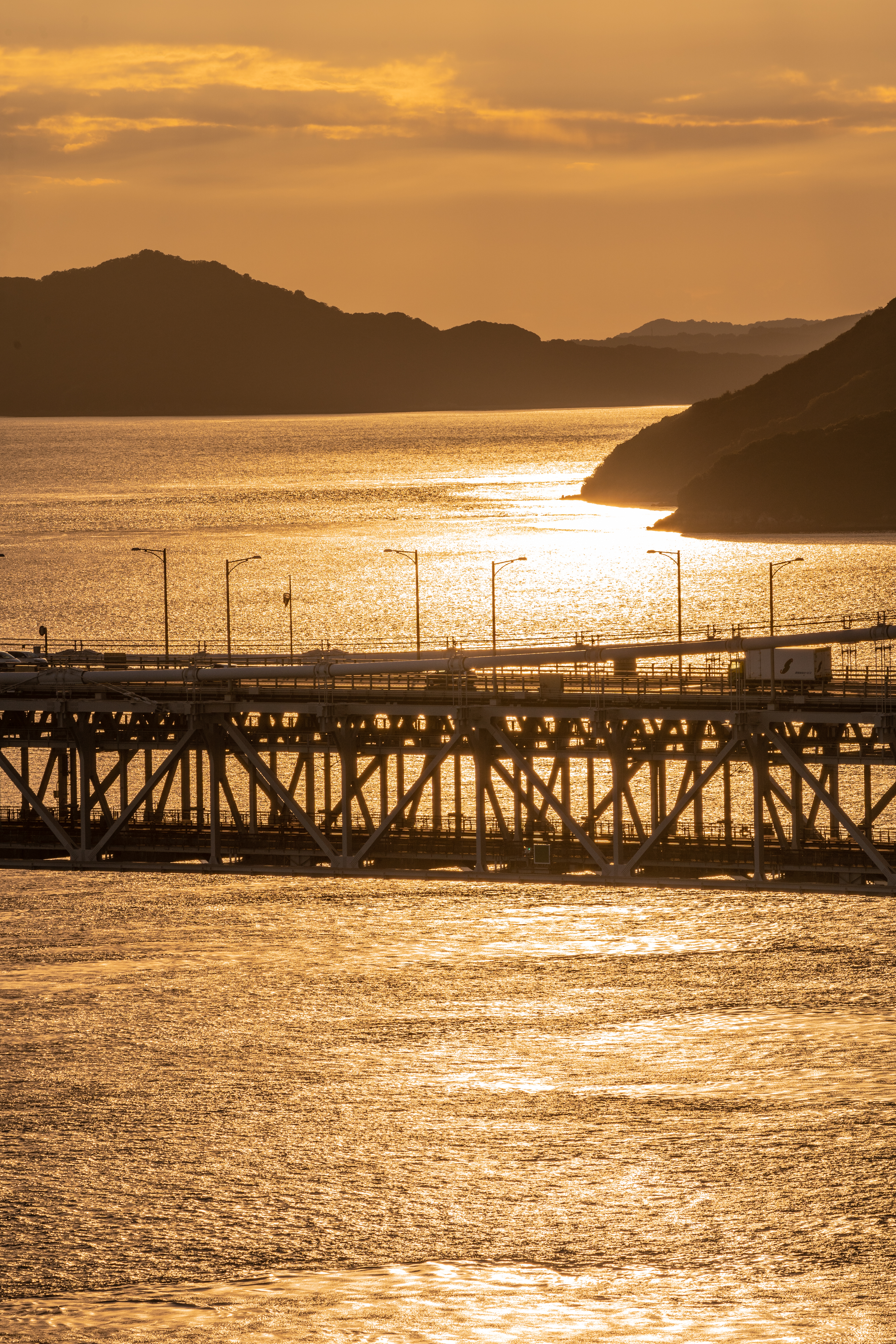 夜明け頃の廿日市大橋の一コマ