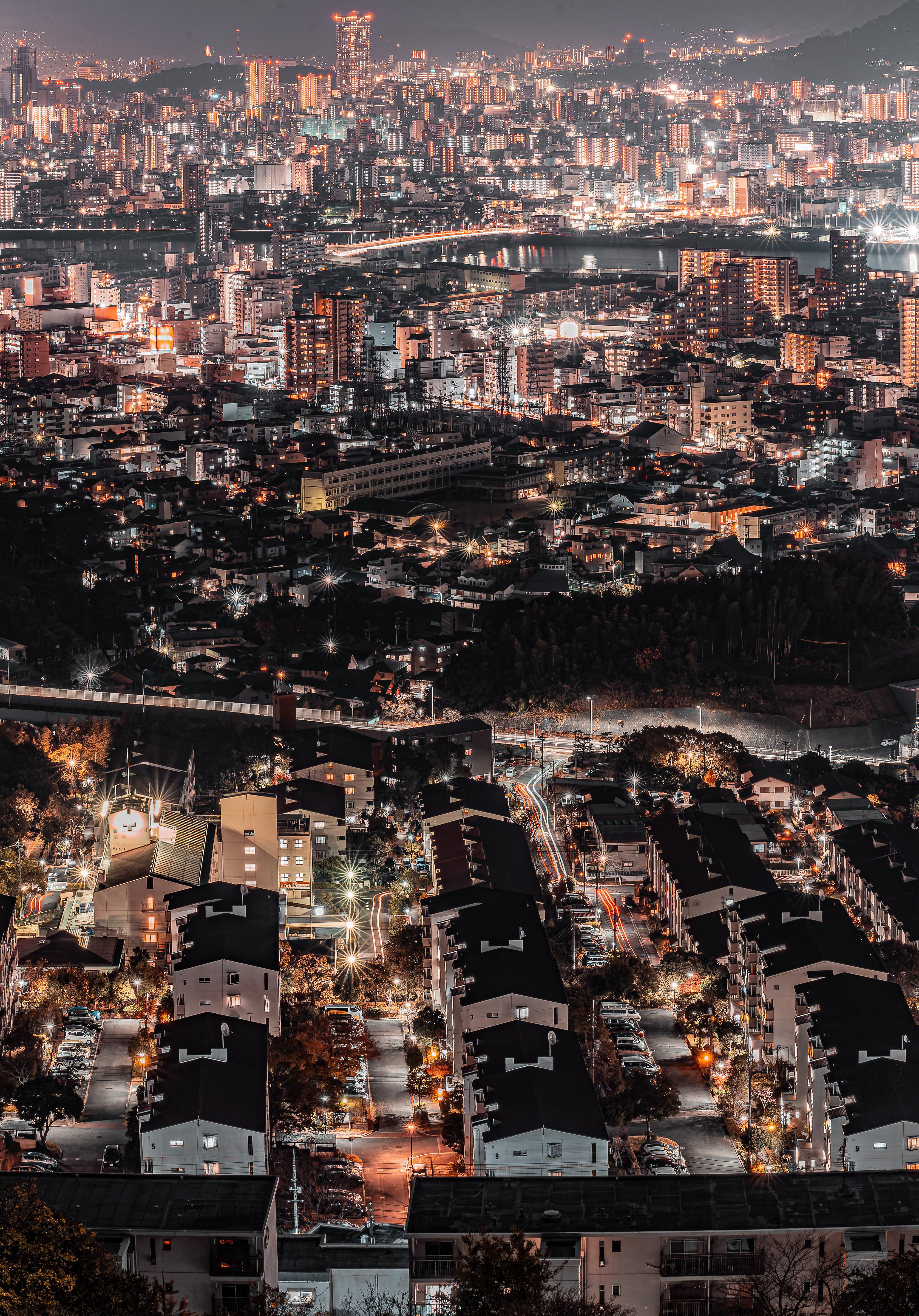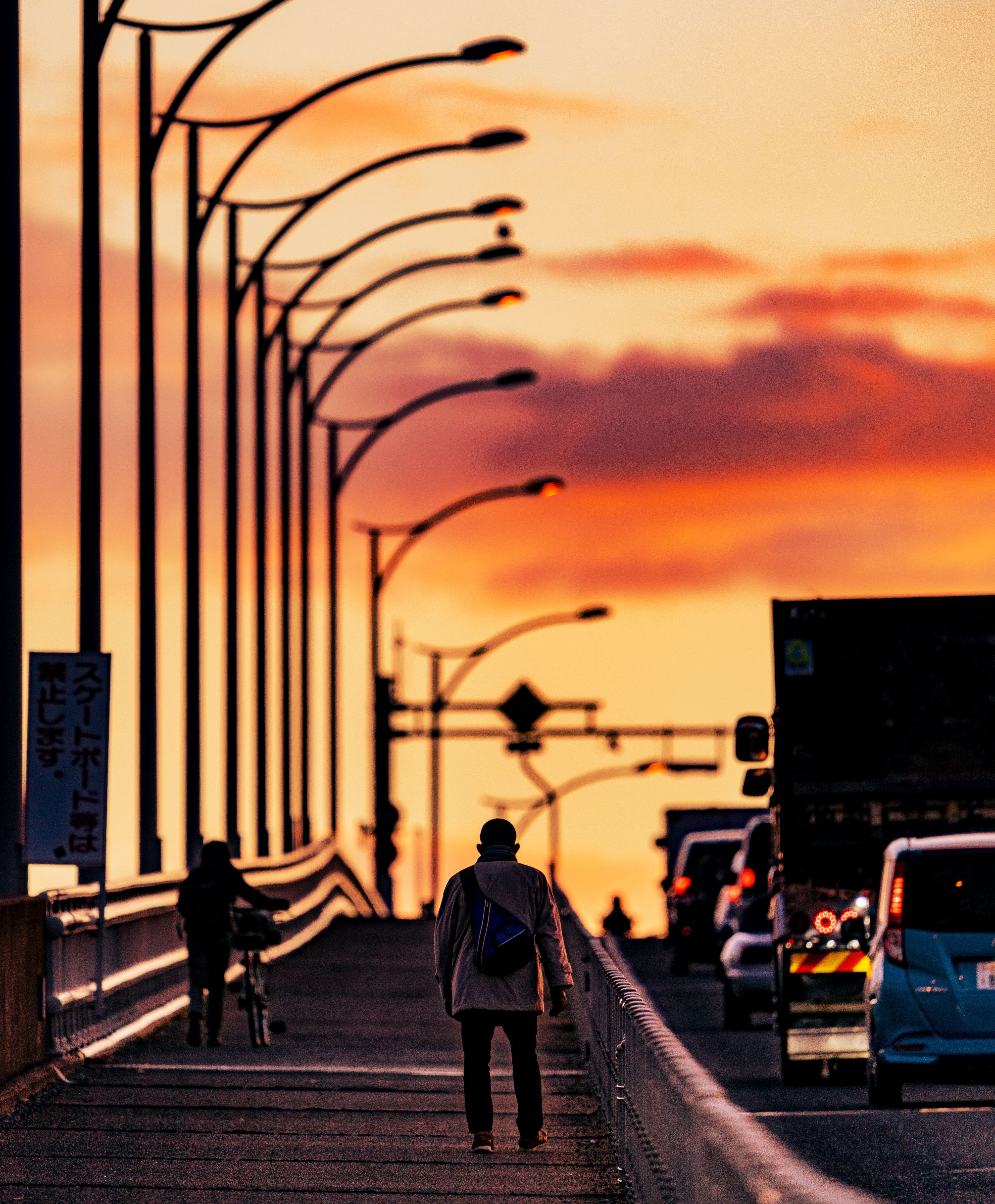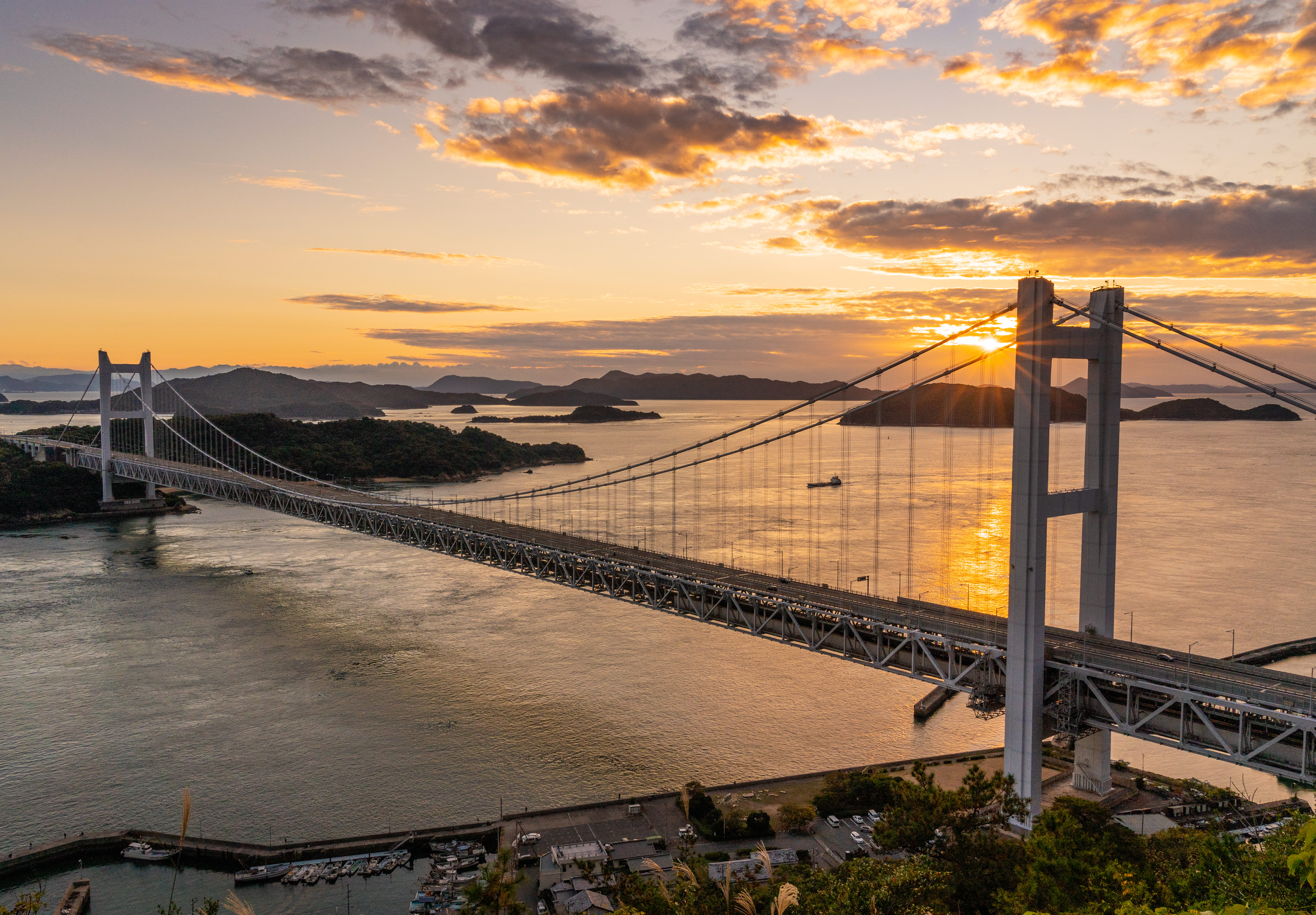 夜明け頃の廿日市大橋の一コマ