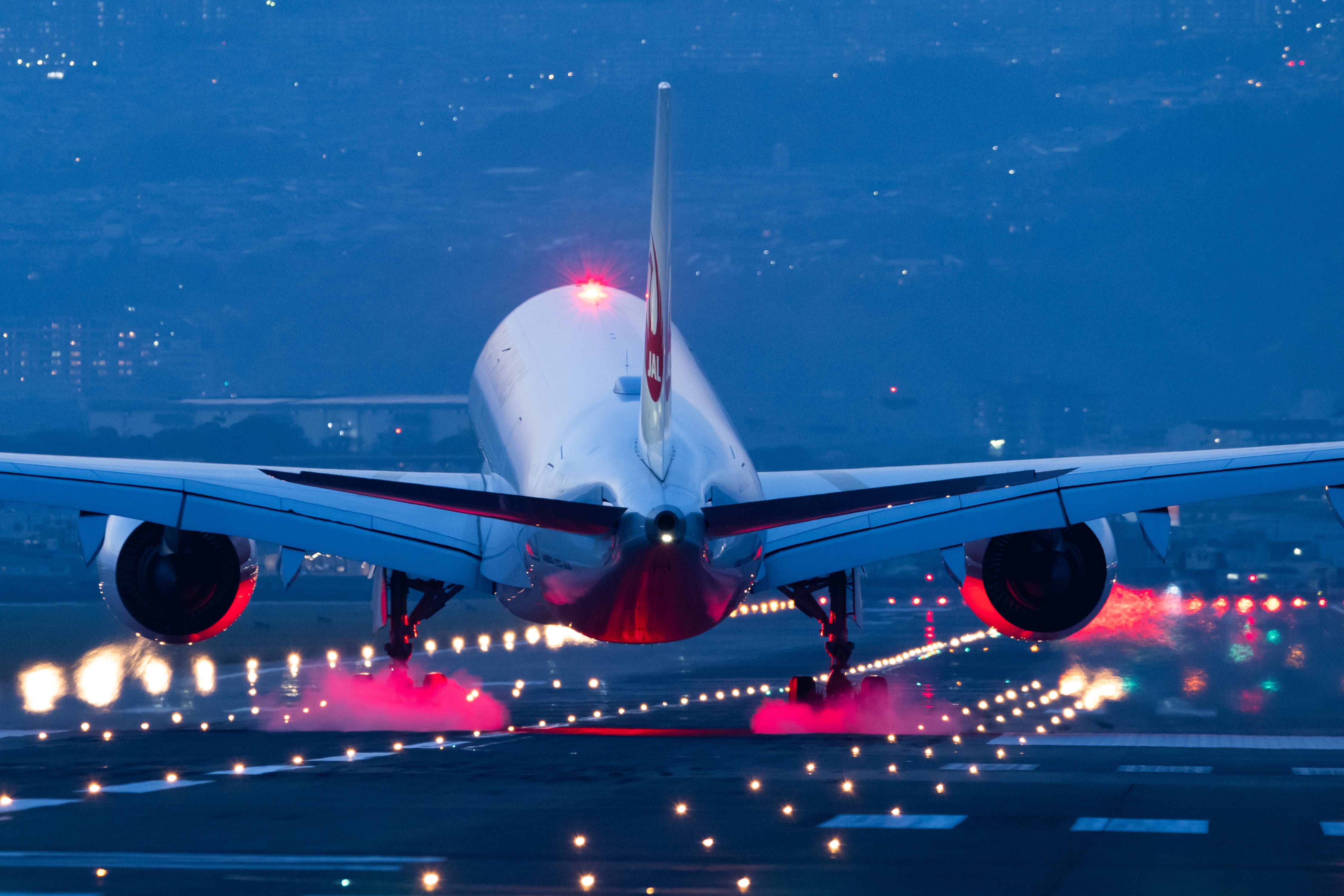 嵐が過ぎ去ろうとする瞬間、光に向かって離陸するB-787