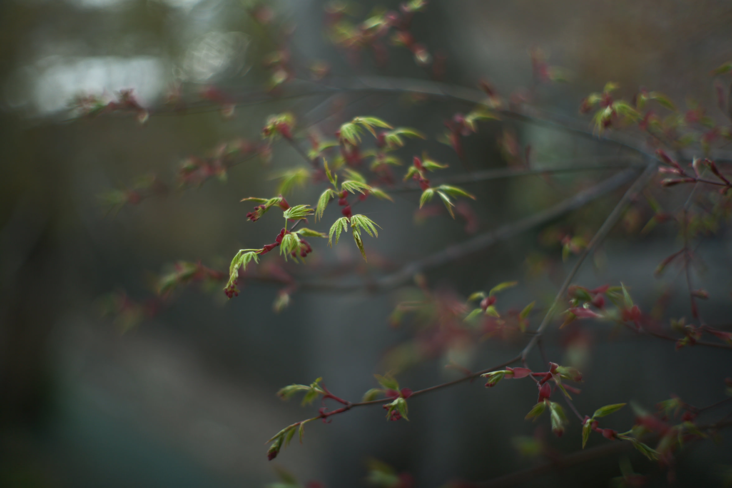艶やかに咲き誇る桜の横で、ひっそりとモミジも目覚めていました。