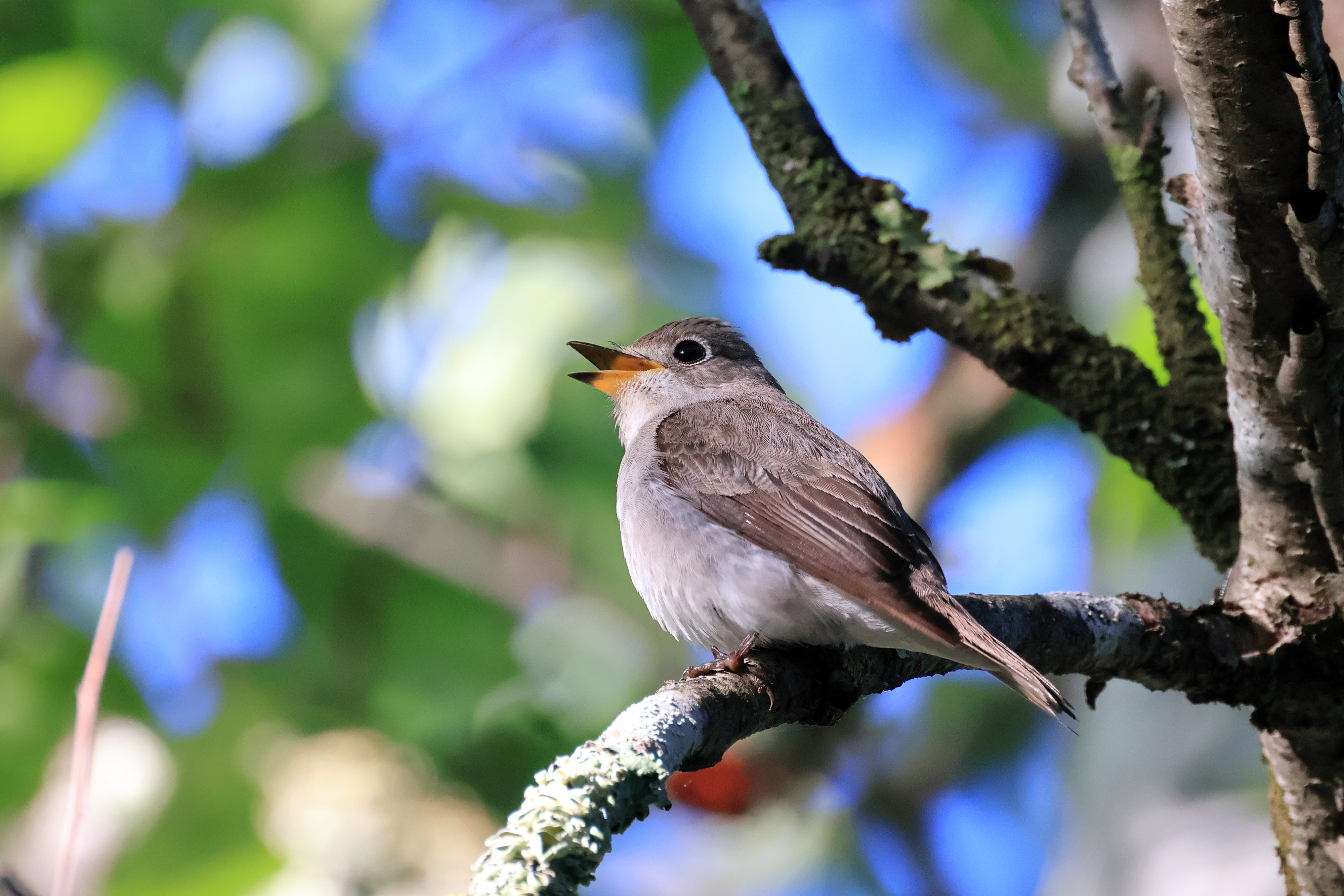 その初夏の戦場ヶ原で美声を響かせているコサメビタキです。