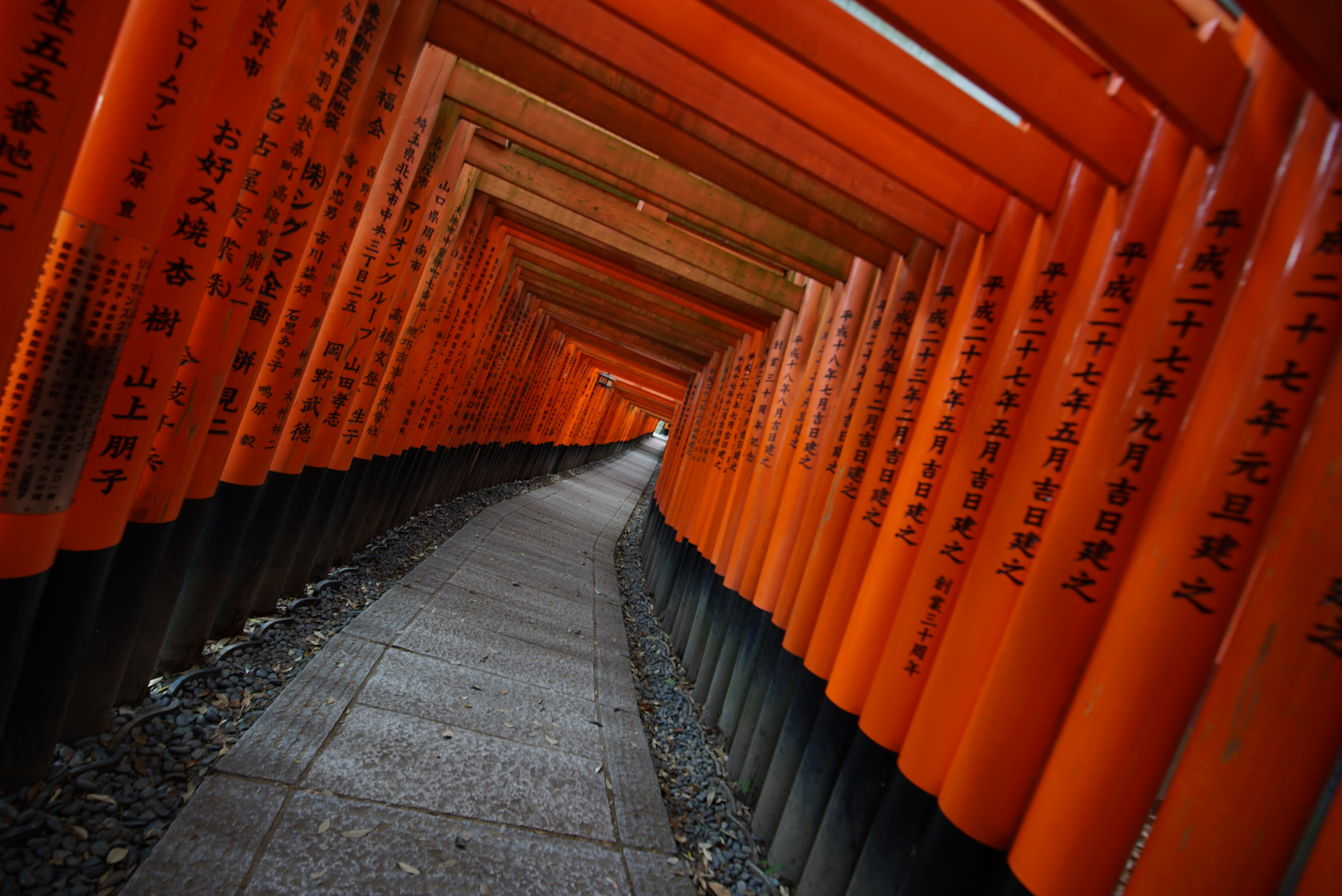 京都の定番中の定番、伏見稲荷大社の千本鳥居です。日中は観光客だらけなので、早朝に来ました。この鳥居の連なる光景を見ていると飲み込まれそうです。