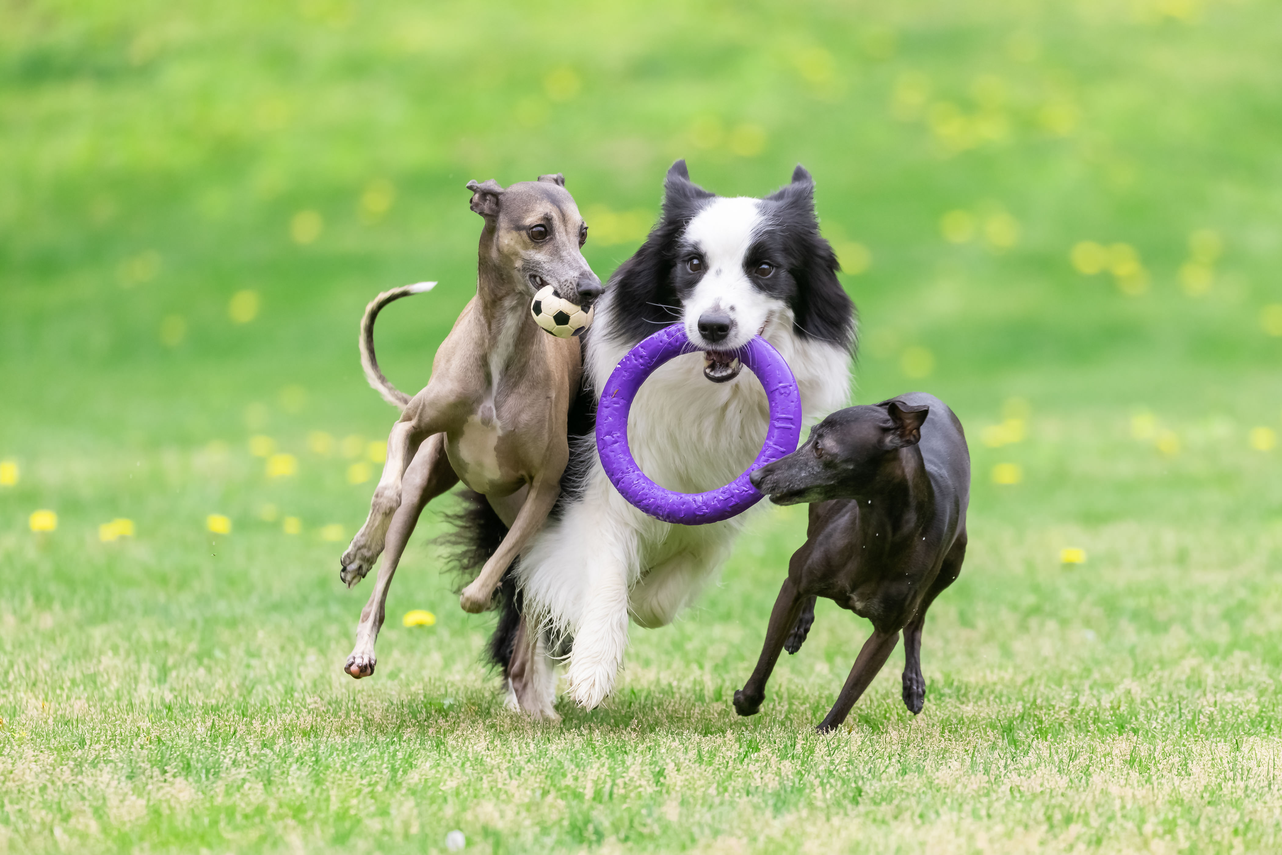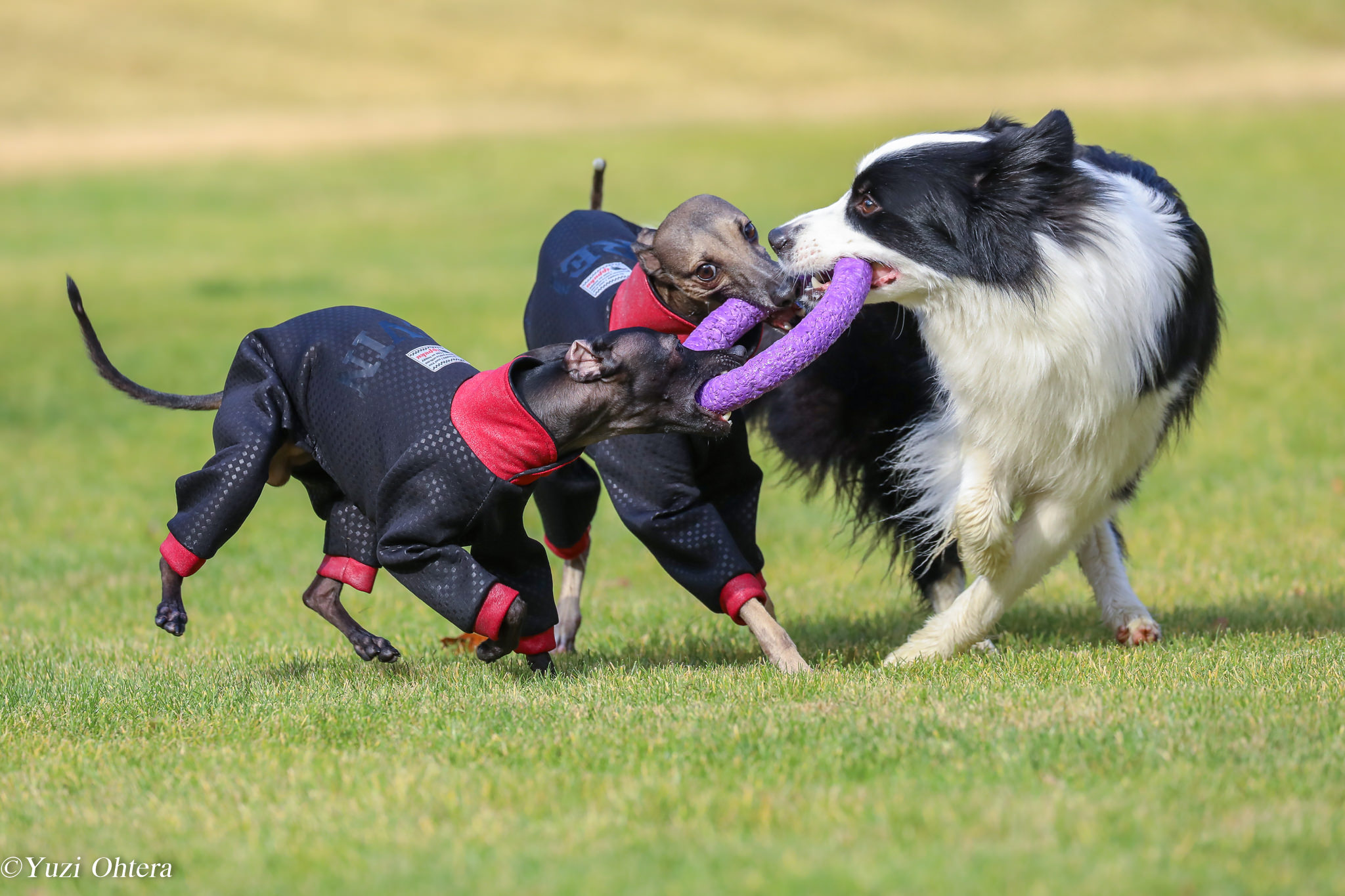 旅行に行った時に宿のドッグランで3匹の愛犬が楽しそうに遊んでいる姿を切り取りました。