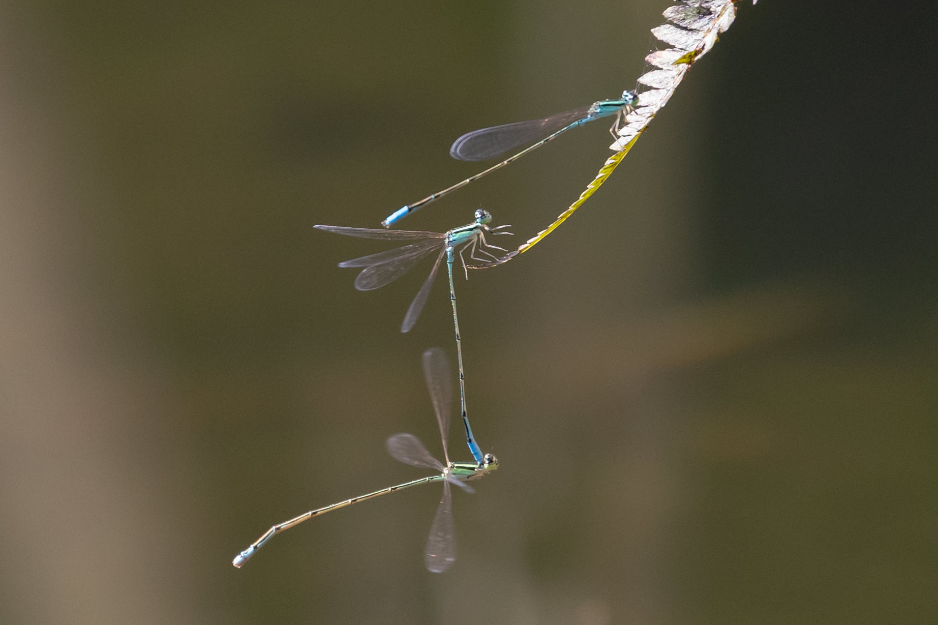 公園で出会いました(交尾中のシオカラトンボ)。
