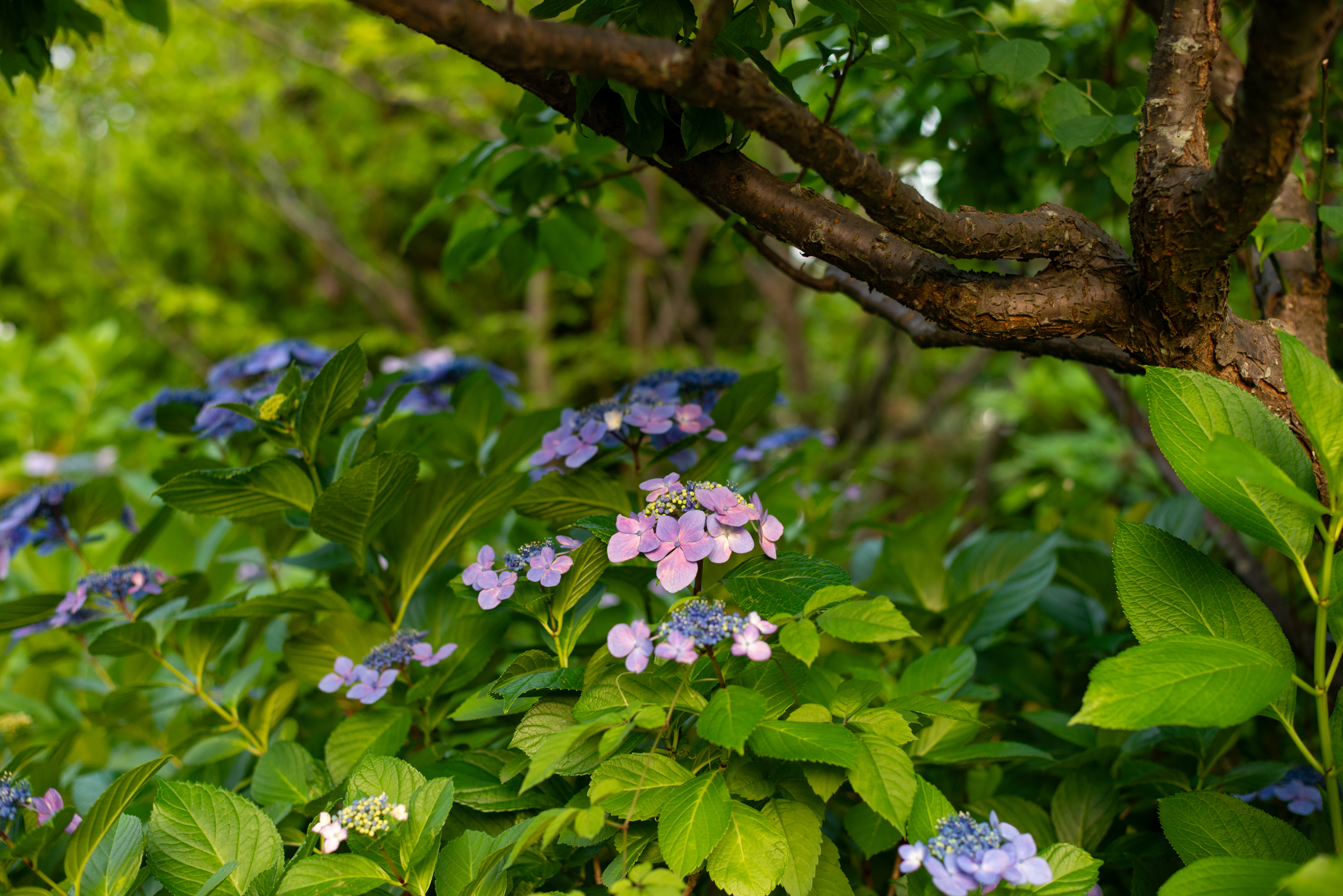 ゴールドの中の逆光アジサイ。