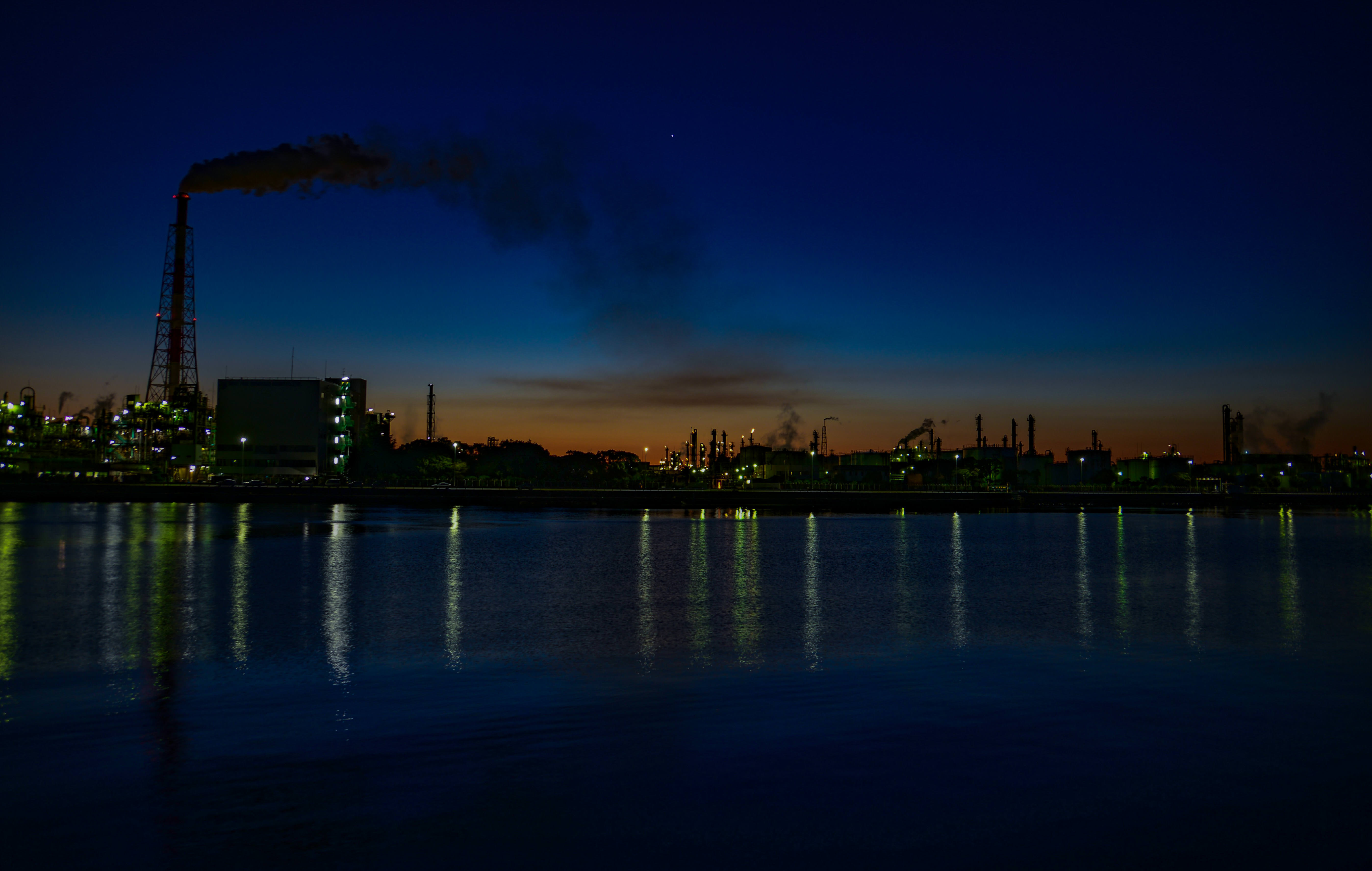 夜明けの明星が照らす工場