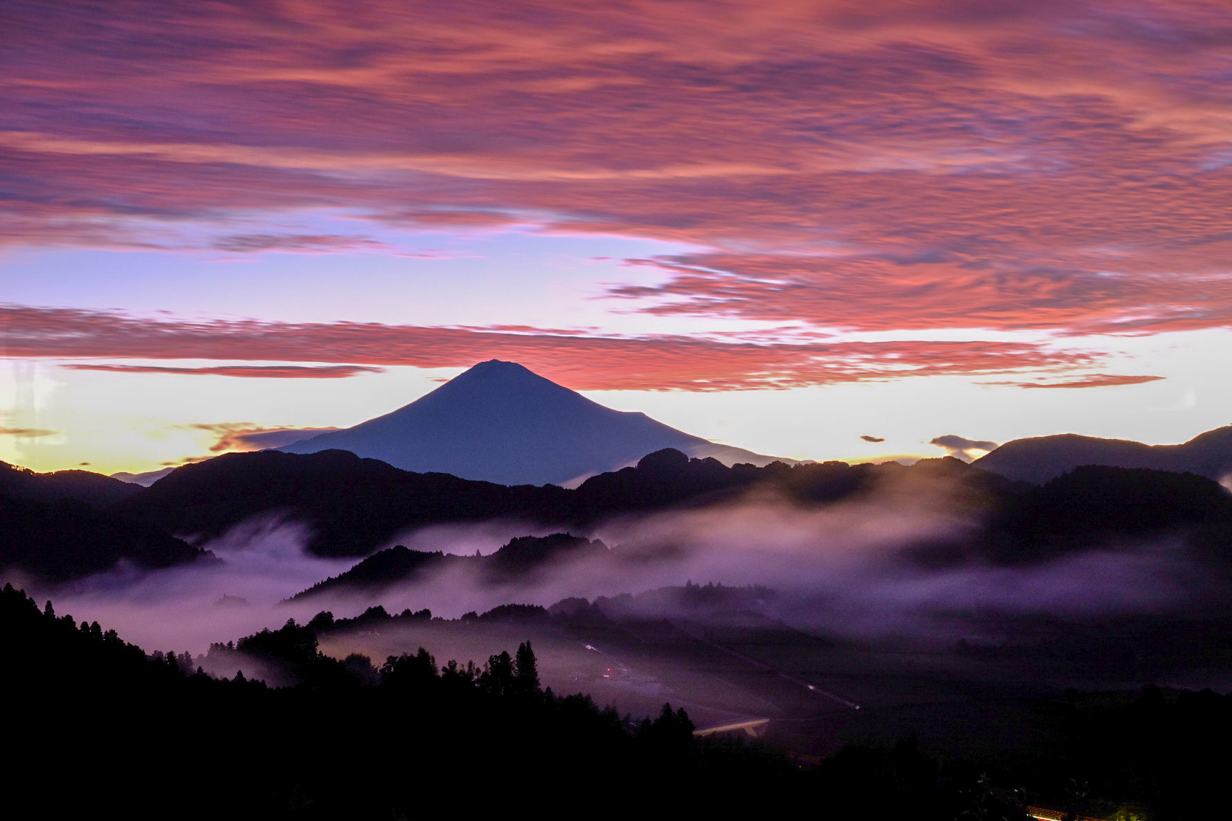 数年に一度のチャンス到来 真夜中から山頂に登り 巨大吊るし雲が焼けるのを待ちました フィルムシュミレーション ベルビア