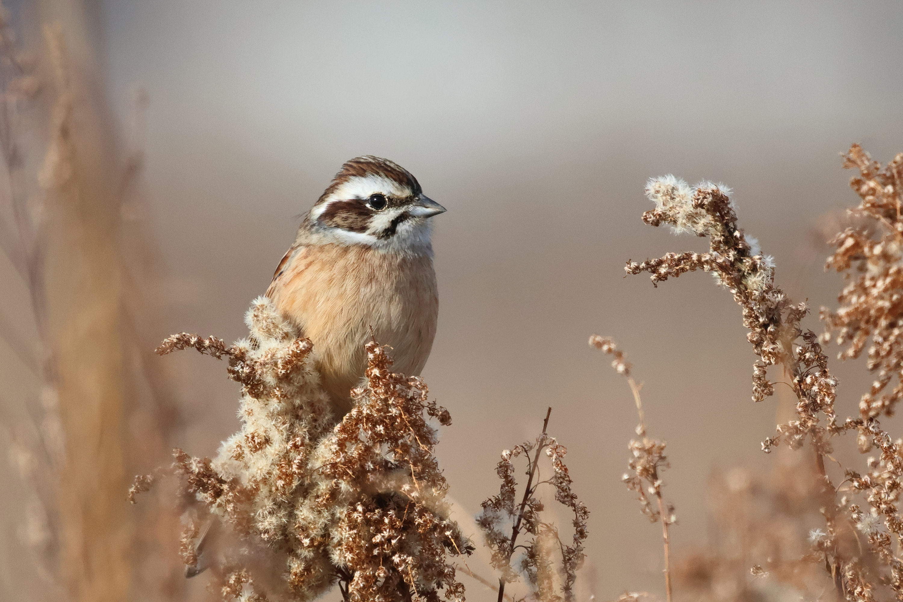 眉毛があまり白くないのでオオジュリンではないかと思ったのですが、胸に斑紋がないことや翼の模様で、ホオジロと判断しました。