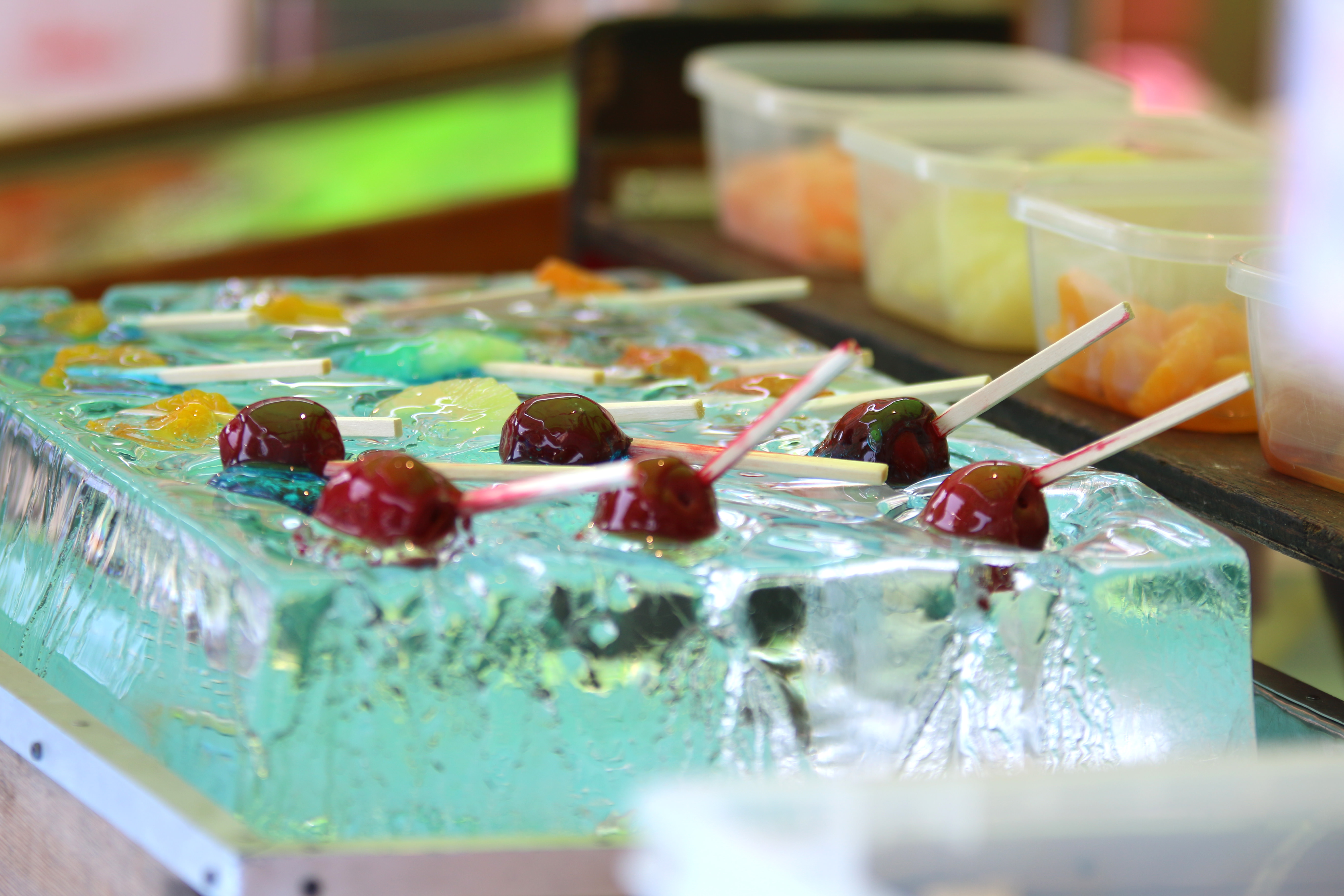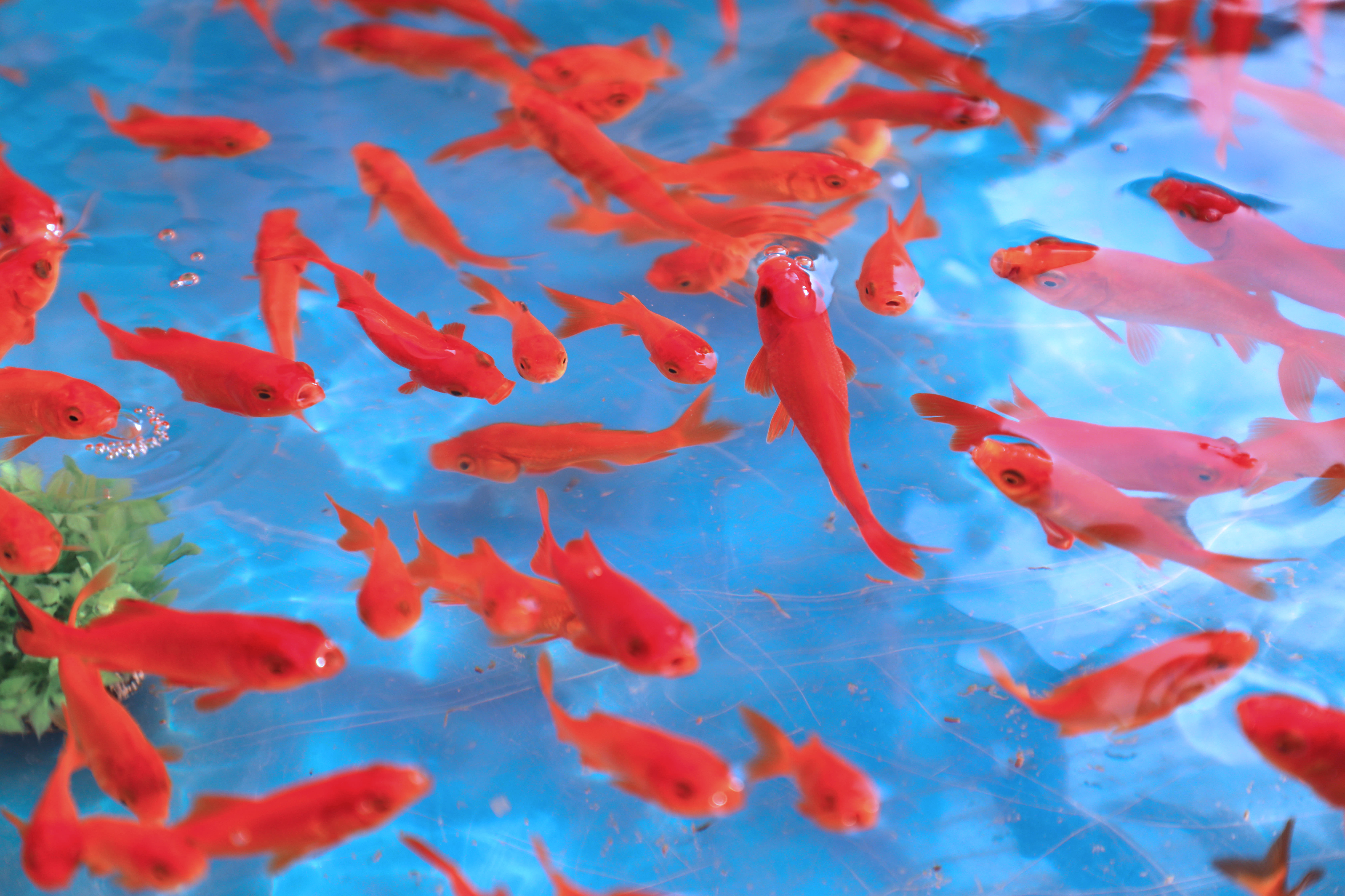 お祭りの屋台で元気に泳ぐ金魚ちゃんたち。