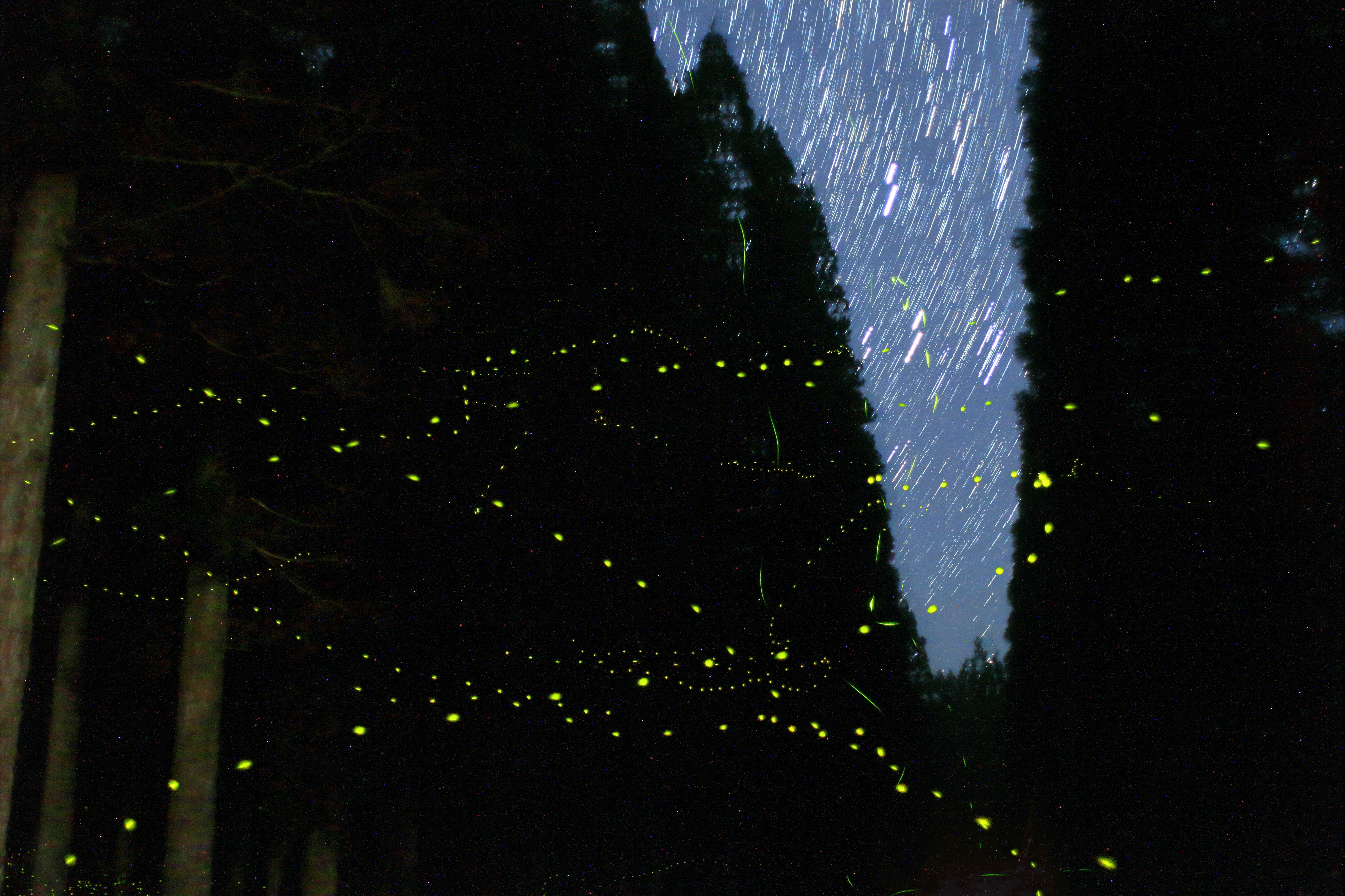 星天とヒメボタルを撮影