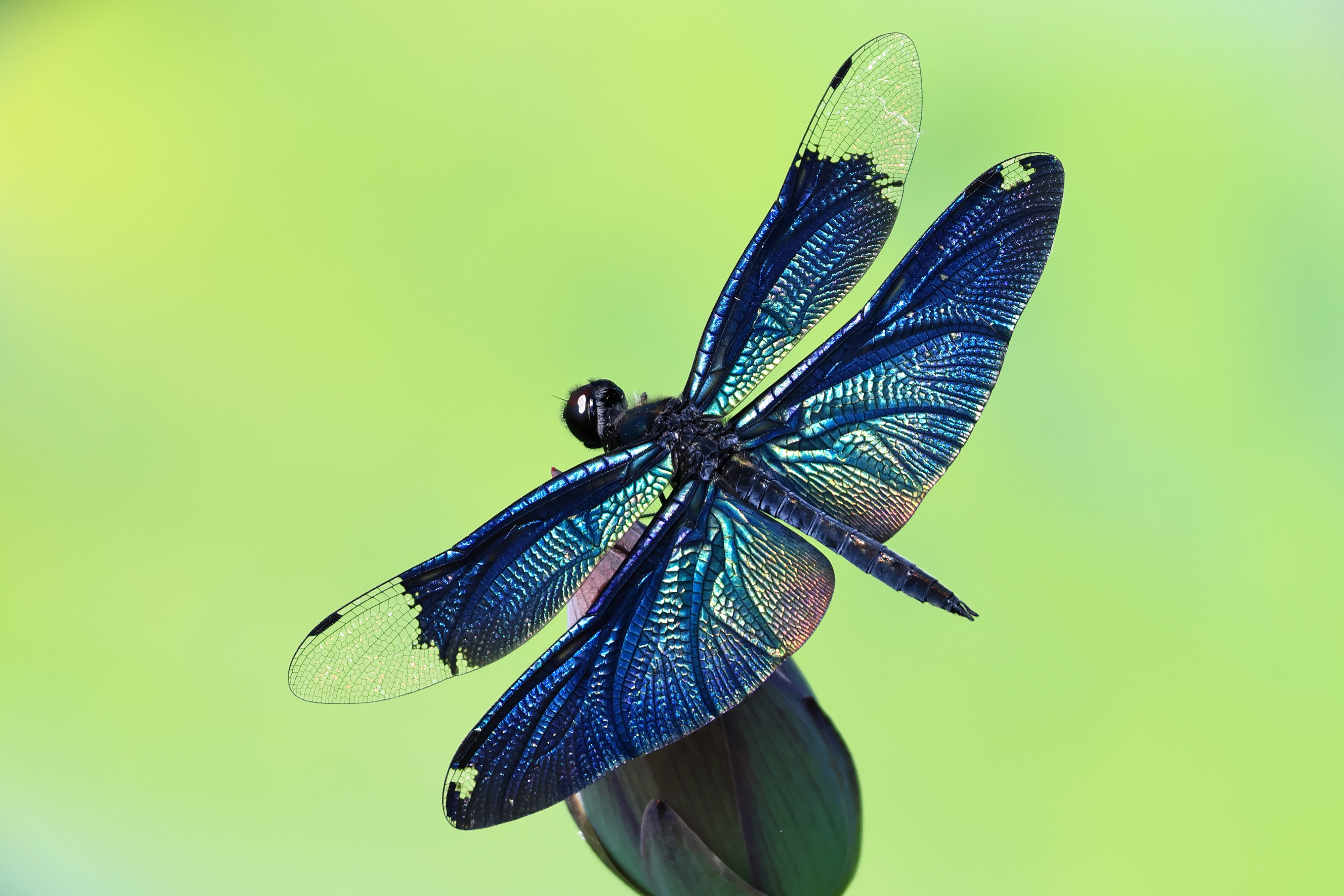 暖かい日が続いたせいか、チョウトンボが4匹以上飛んでいて、時々すぐ近くのハスのつぼみに止まってくれました。