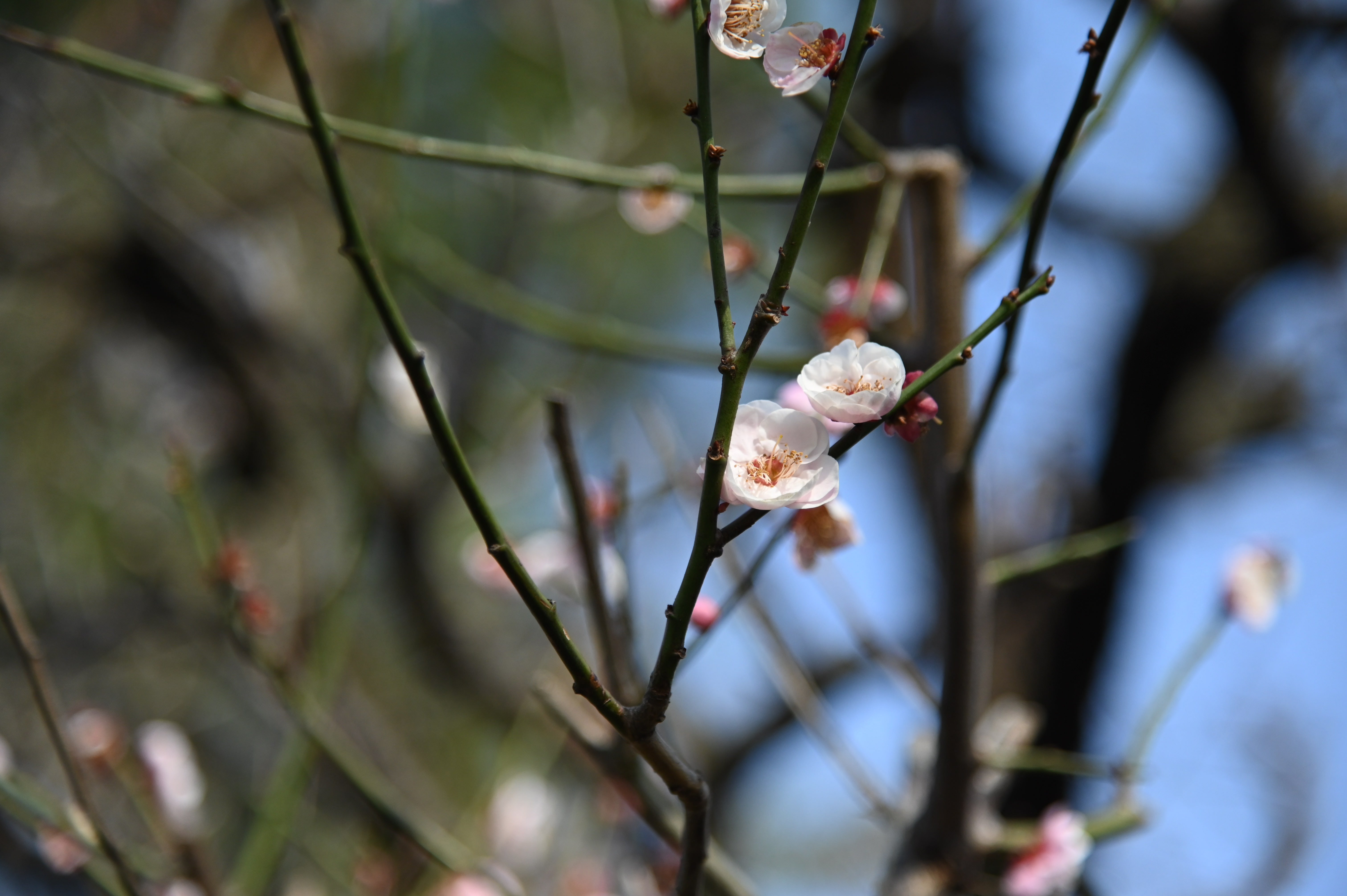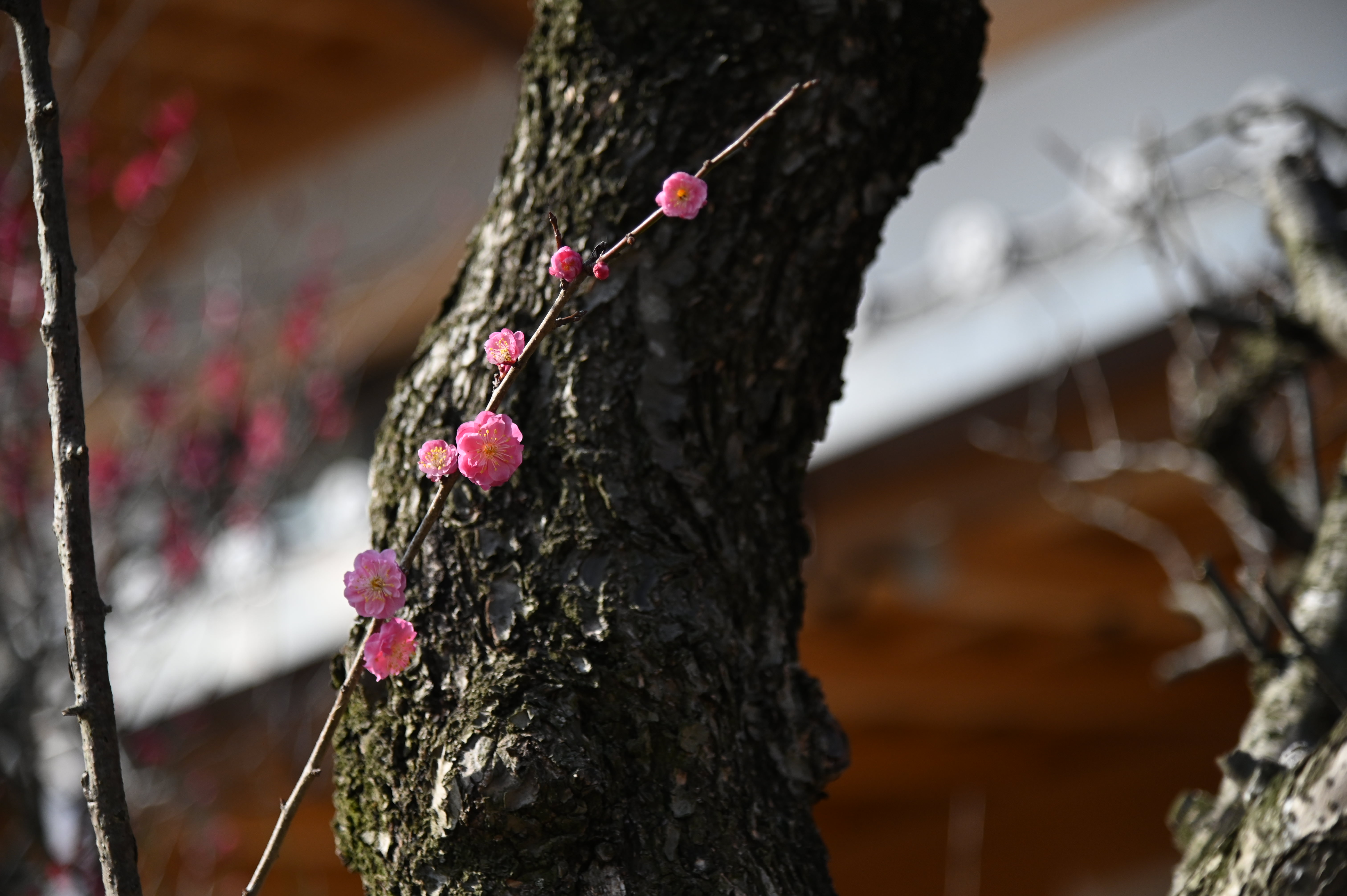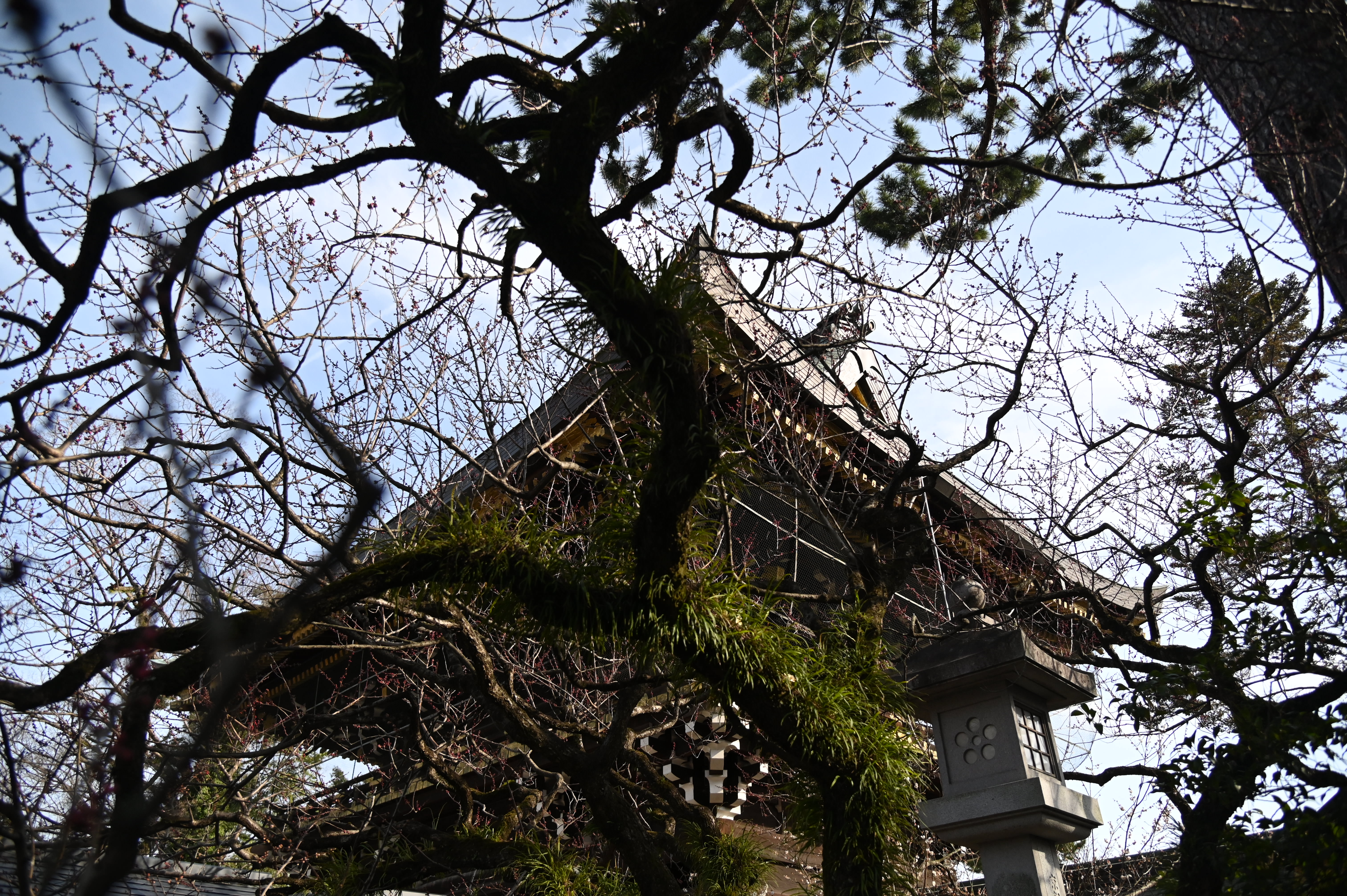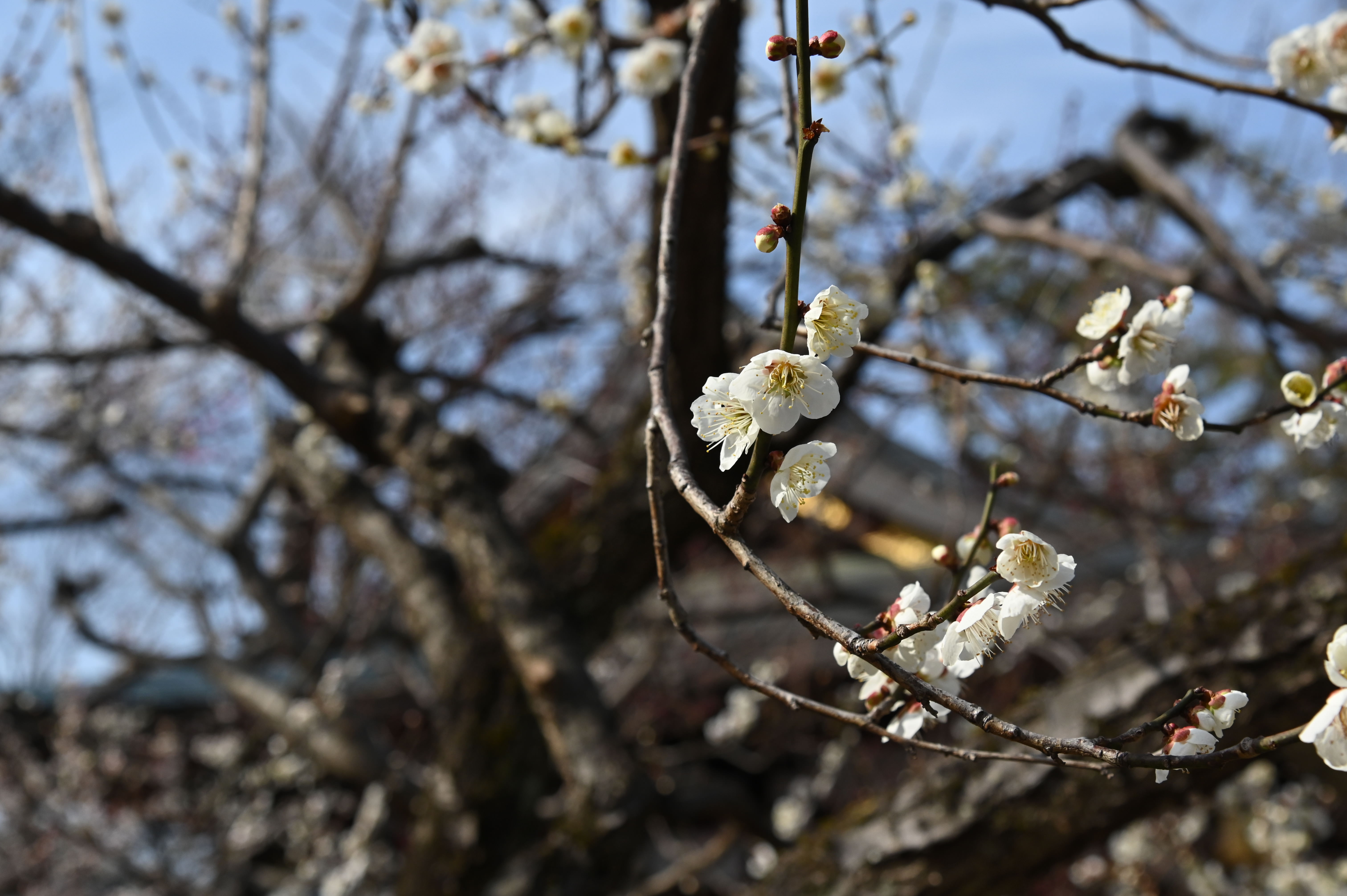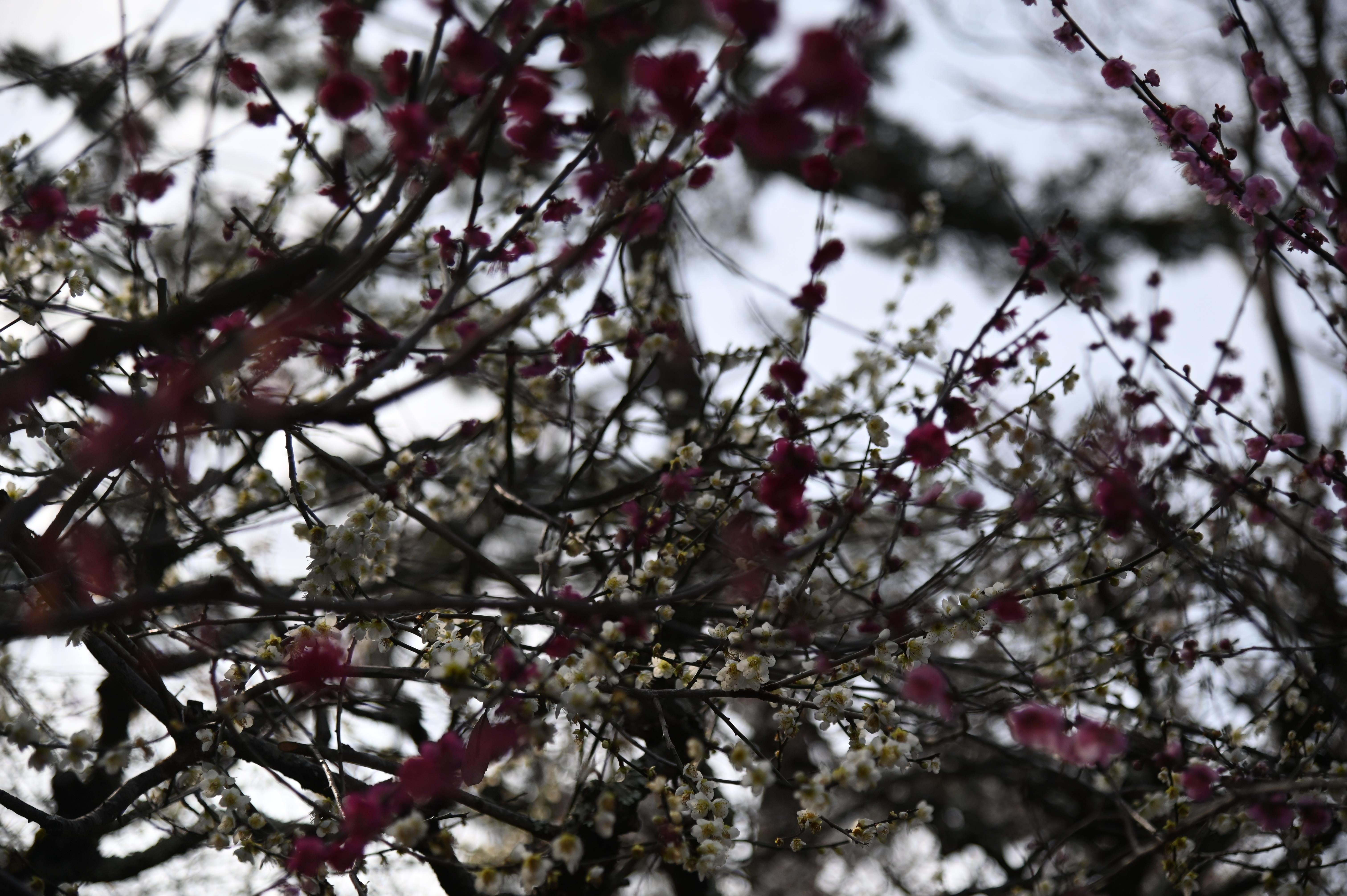 春の訪れを告げる花梅です。赤、白、と咲き誇っていました。菅公という主をうしなってもなを、咲き続け、主を思い起こさせようとしているようでした。