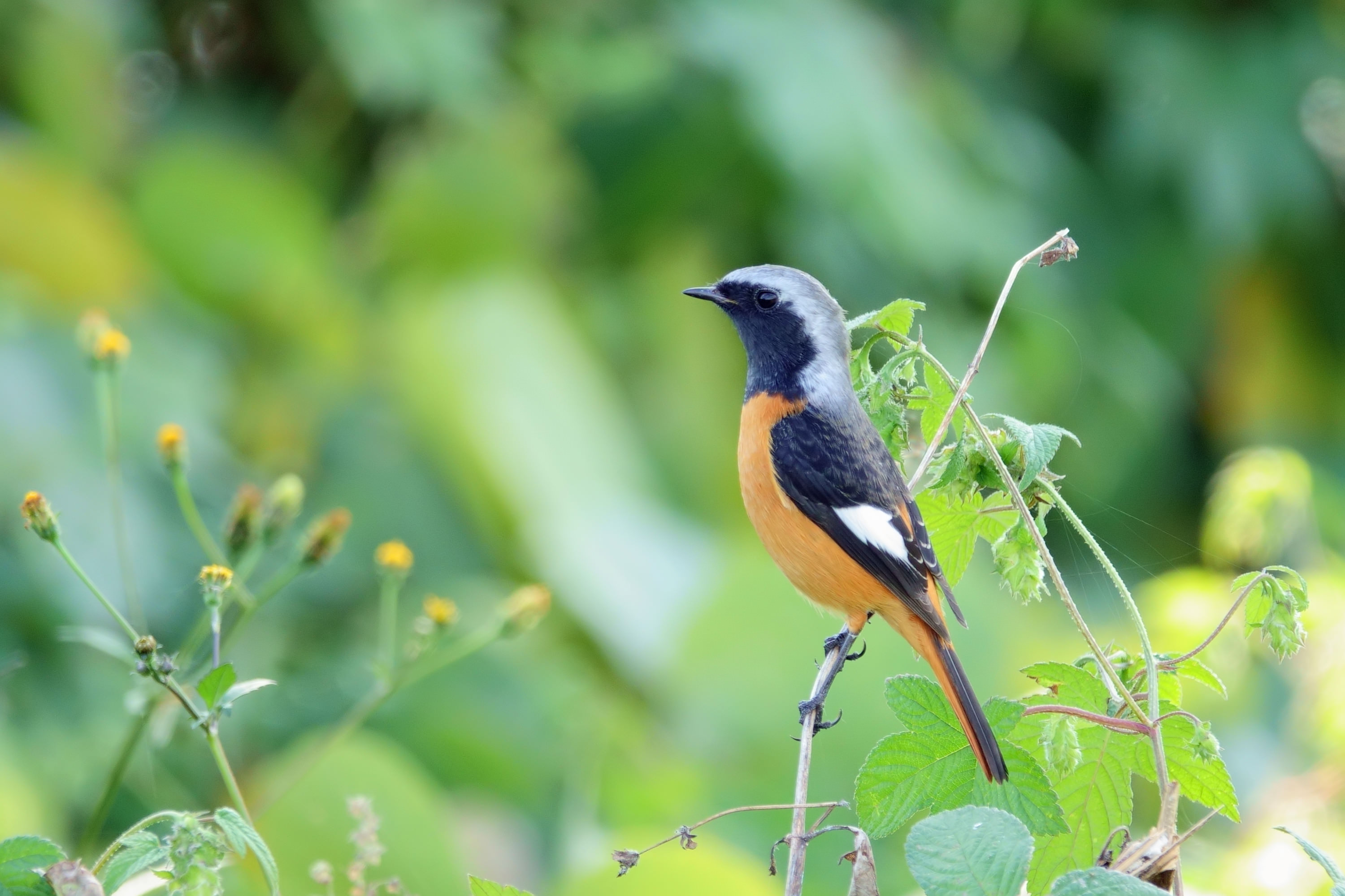 黄葉を映す水面に突き出た小枝にセグロセキレイが乗り、時折水を飲むようなしぐさをしていました。