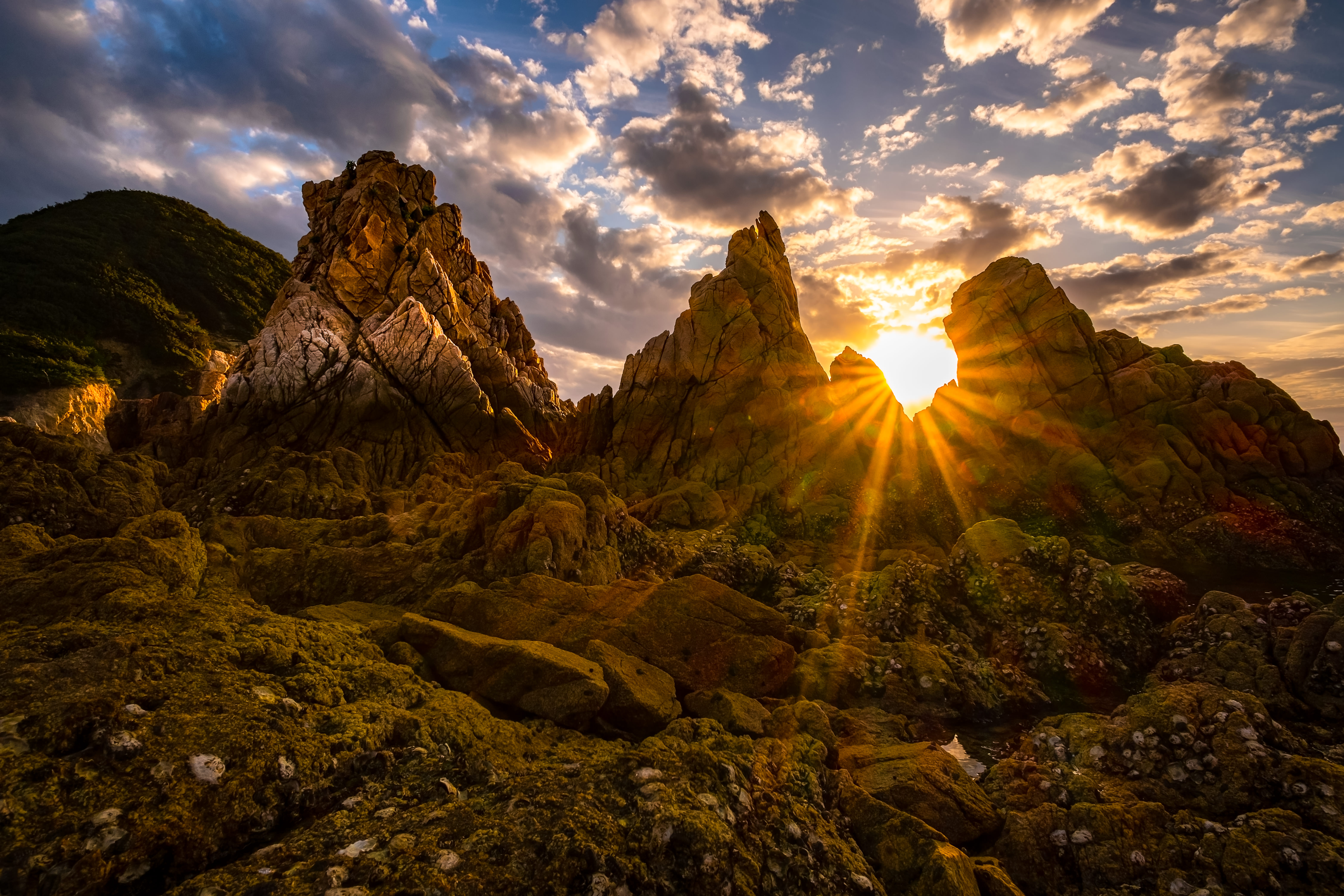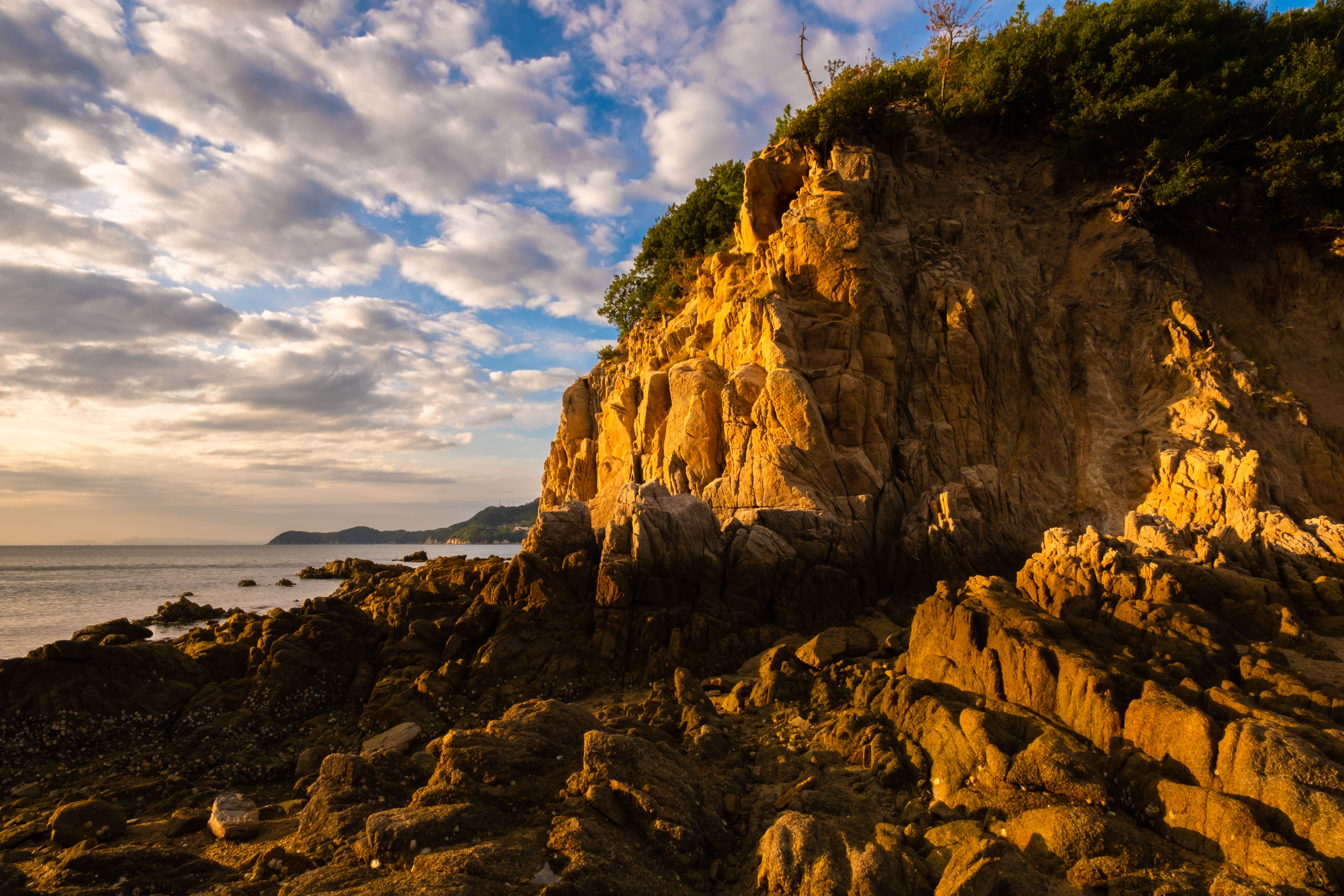 岩石が夕方の太陽の光に染まっていきました。